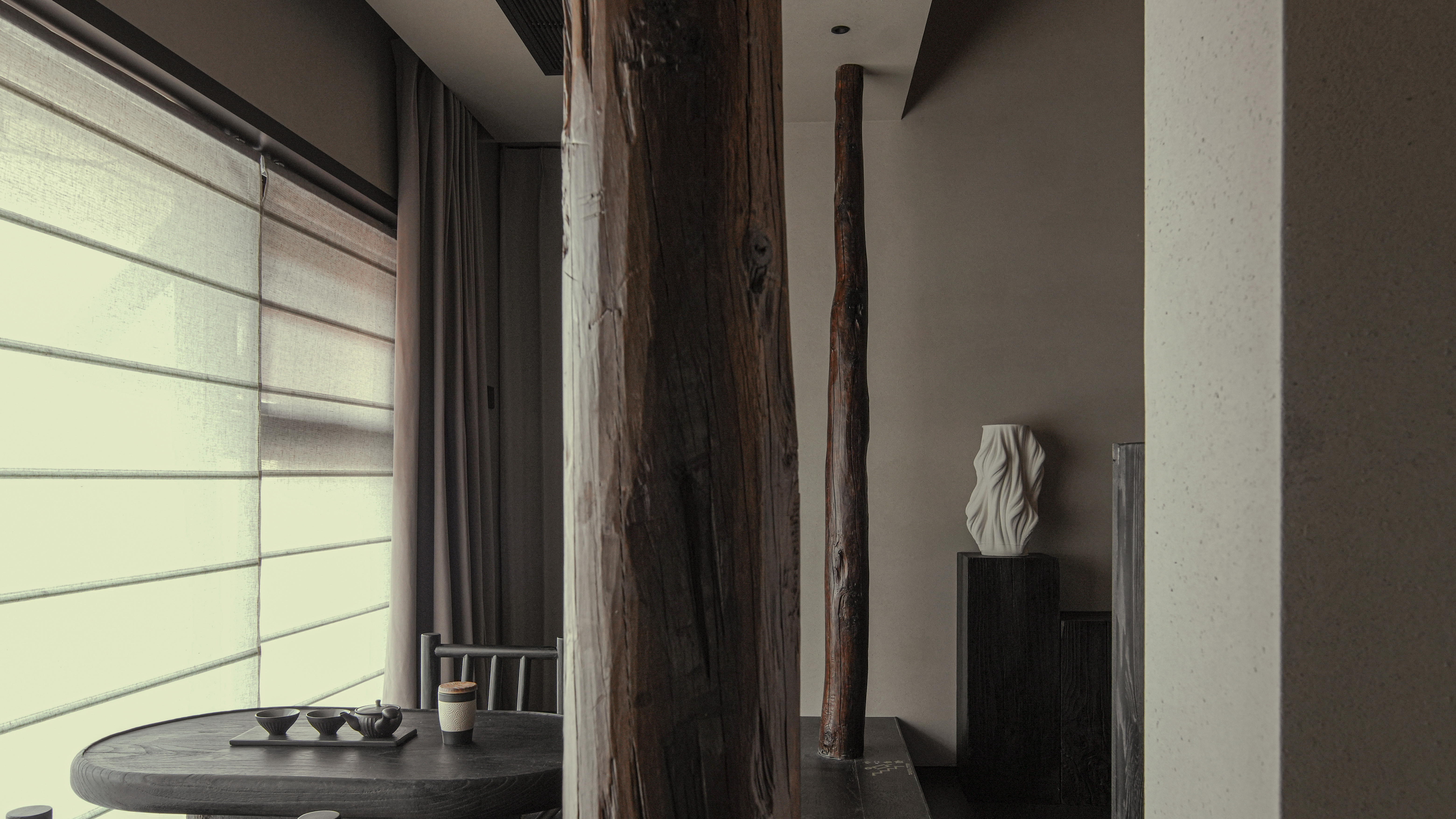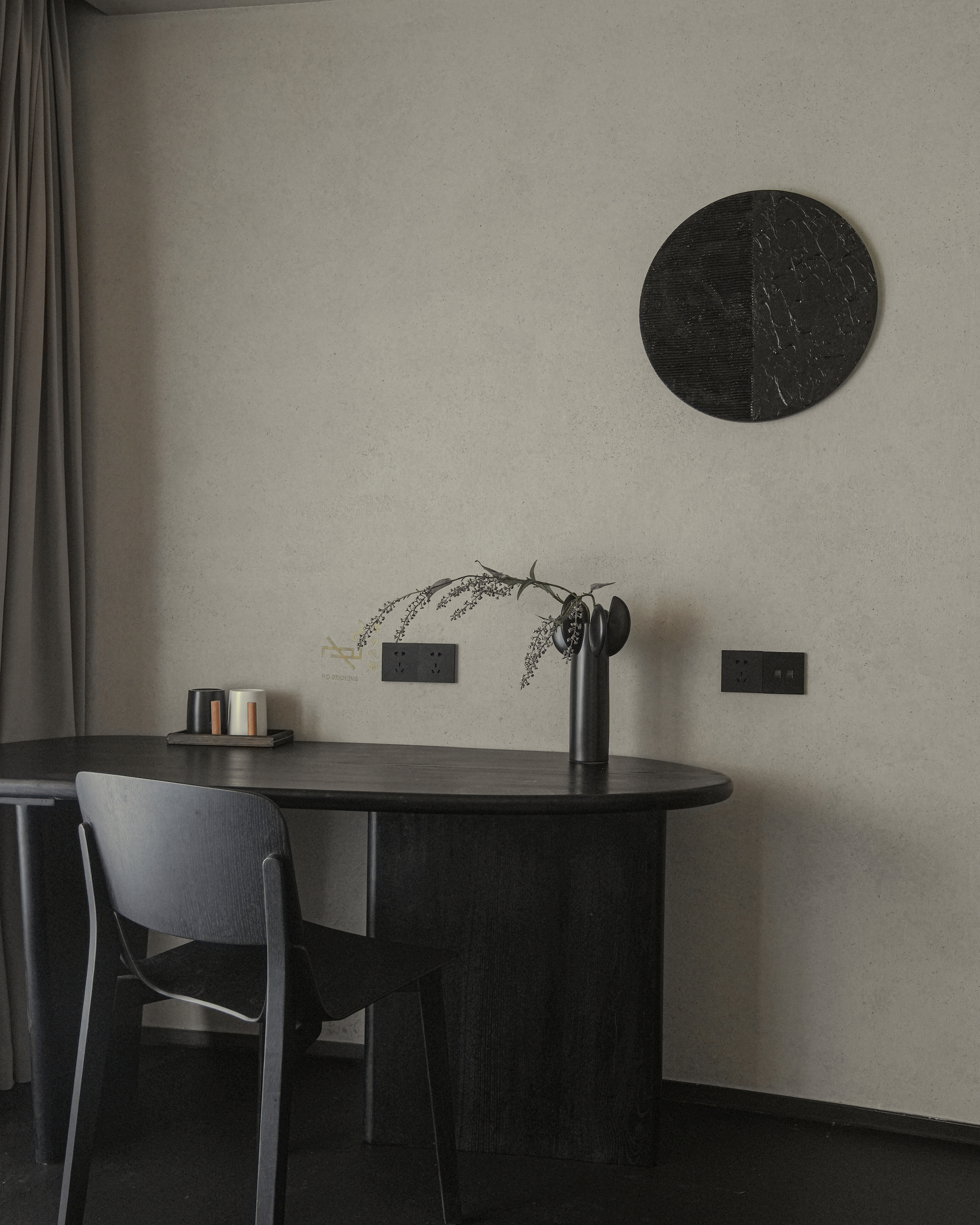 To maintain the integrity of the space's main tone while considering the budget, the use of artistic paint is deliberately restrained, running through all areas to create a base canvas reminiscent of "old rice paper." The addition of aggregates in the paint further enhances this handmade papermaking texture.