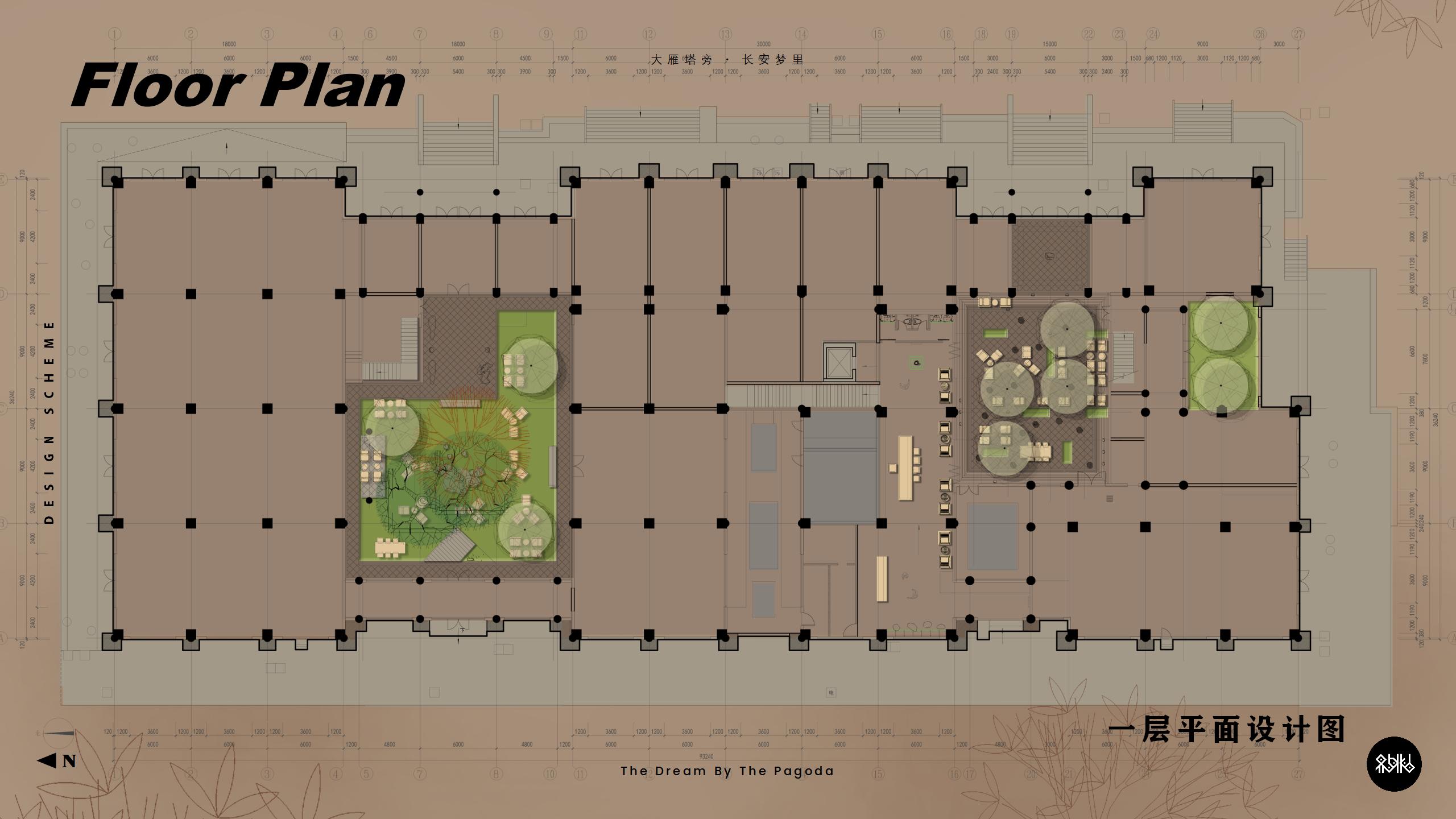 A key focus of this spatial design is how to pay homage to the Big Wild Goose Pagoda, a world-renowned stupa. By integrating natural elements throughout all spaces, the design aims to reflect the essence of the original Tang-style architecture. The existing tall spaces and double-sloped roof provide the perfect canvas for establishing a new spatial order, where the dialogue and interplay between the old and the new evoke a tension and an undefined style. This approach invites visitors and guests to embrace this sense of uncertainty, to experience the textures and compositions in each area, and to reinterpret the weighty cultural heritage of this ancient capital with a lighter, more vibrant aesthetic. The goal is to create a sense of freedom that fosters genuine, unfiltered interaction.