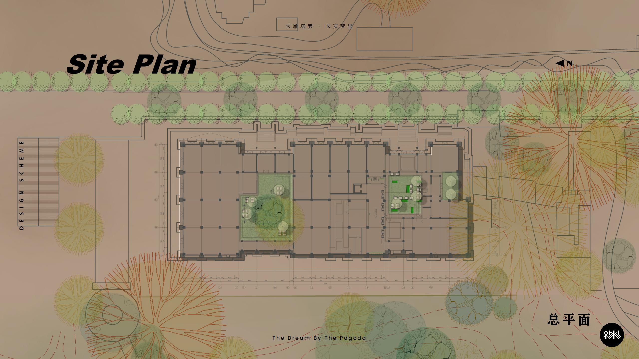 The building is located in the heart of the Big Wild Goose Pagoda Scenic Area, just 200 meters away from the pagoda itself. A single, double "回" structure is positioned directly to the east of the Big Wild Goose Pagoda, featuring an antique style created with cast-in-place concrete and covering an area of 3,000 square meters. Surrounded by the historical and cultural atmosphere of the Big Wild Goose Pagoda and Dacien Temple, both National 5A Scenic Spots, the owner envisions this homestay to seamlessly integrate the scenic surroundings with its accommodation function. The aim is to create a tranquil retreat within the bustling tourist area, connecting the Zen-like serenity with the vibrant charm of local life. The unique double "Hui" layout, with its dual inner courtyards, offers diverse possibilities for the homestay design.