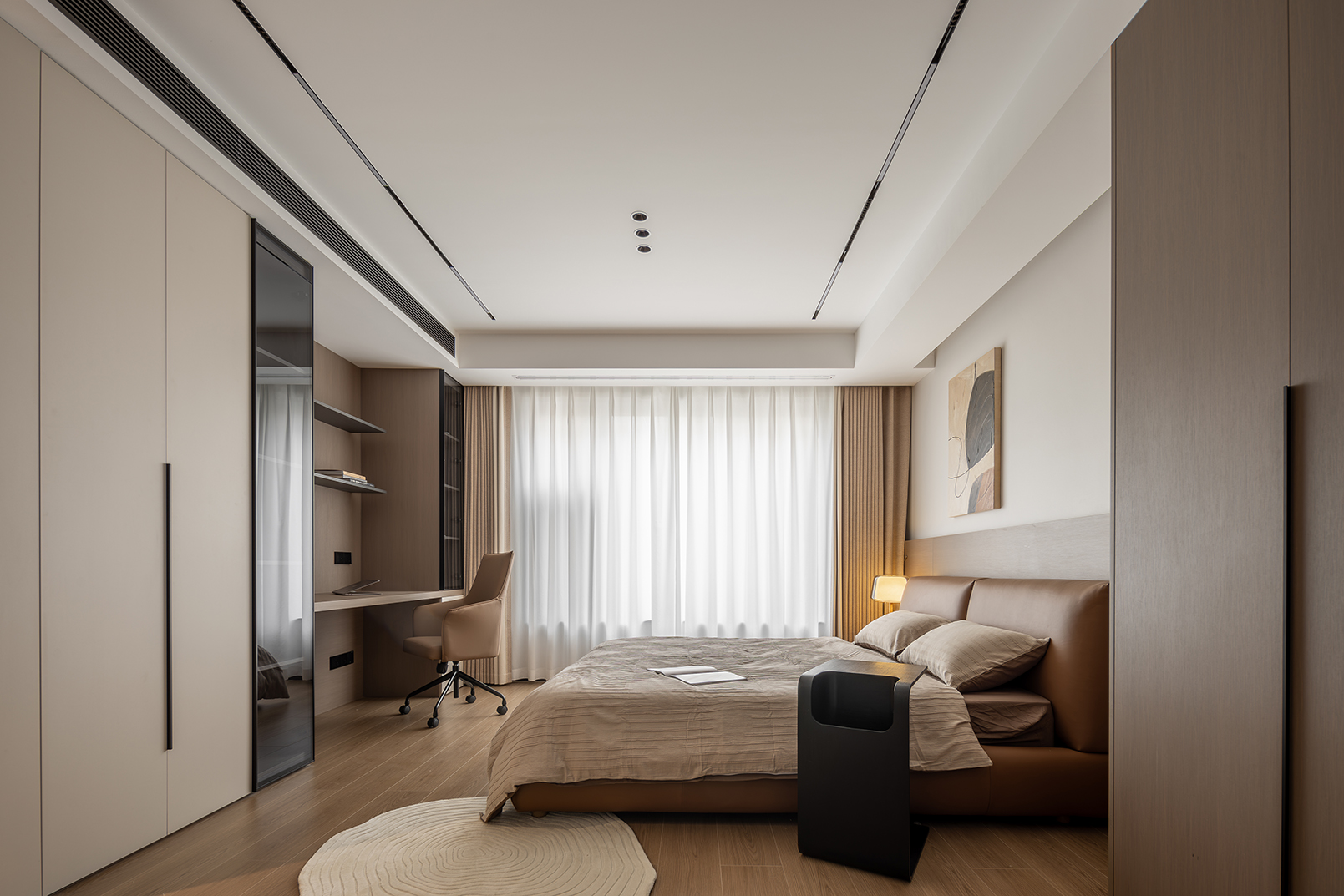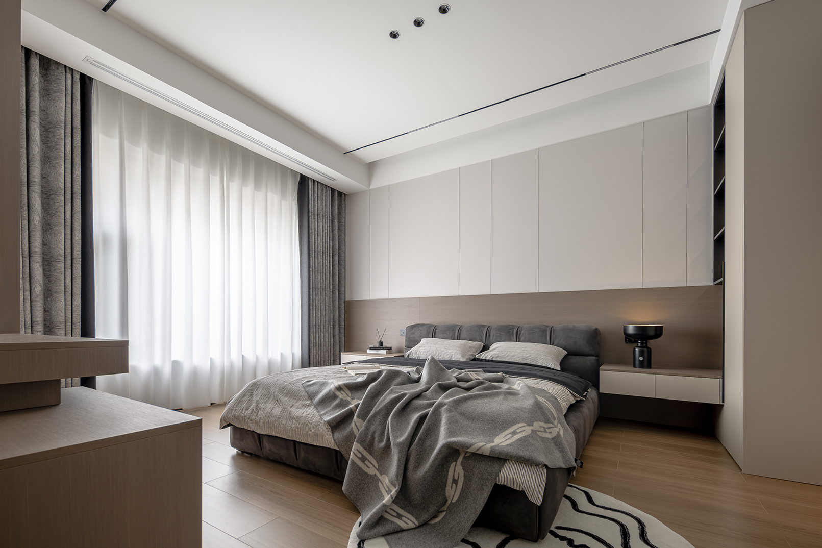 项目定位:本案业主是一对年轻的90后,要求足够的储物空间,营造简约,舒适,干净,生活氛围。本设计注重功能性与美学的结合,通过合理的色彩搭配、空间布局和材质选择,创造出一个既适合休息又充满生活气息的空间。