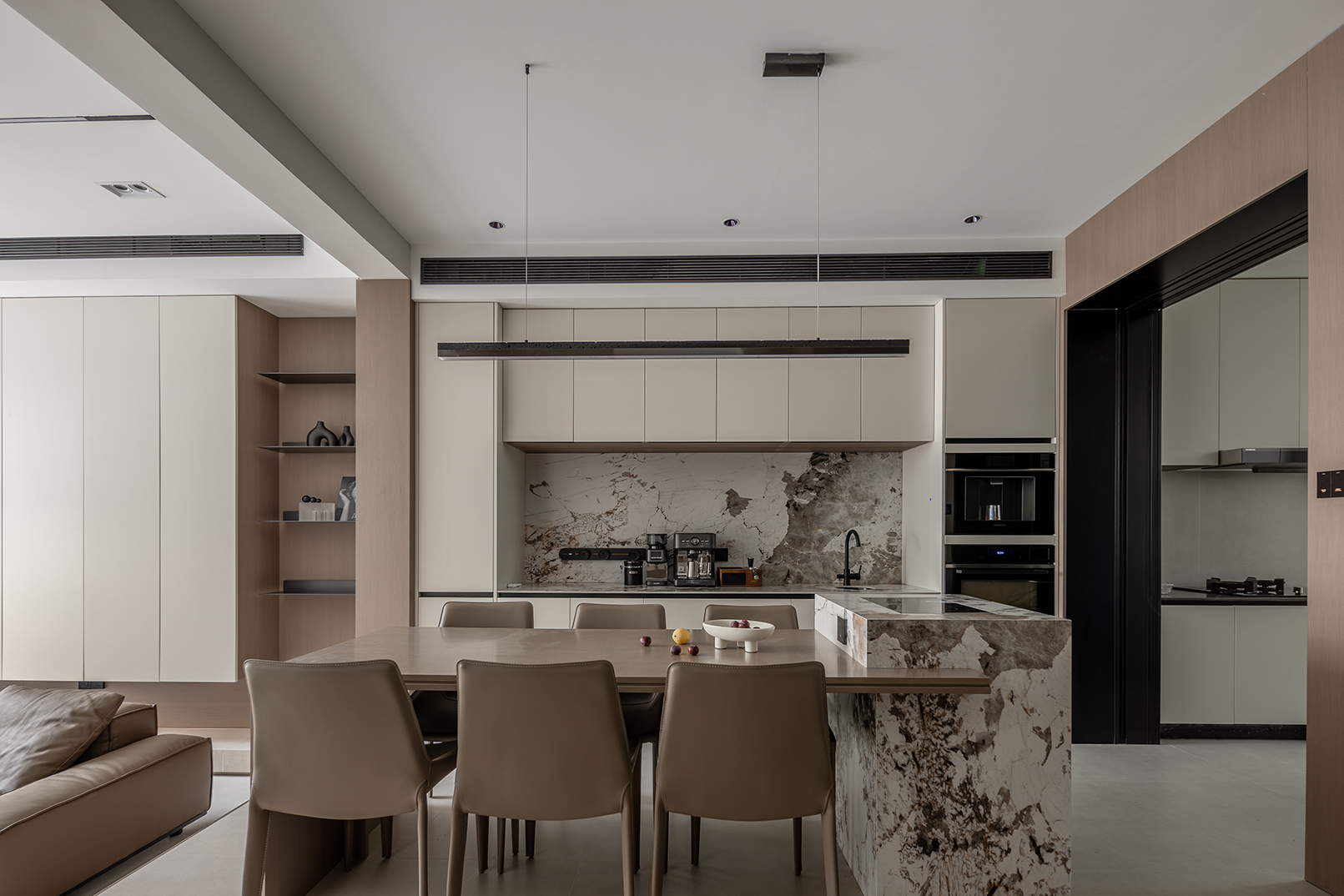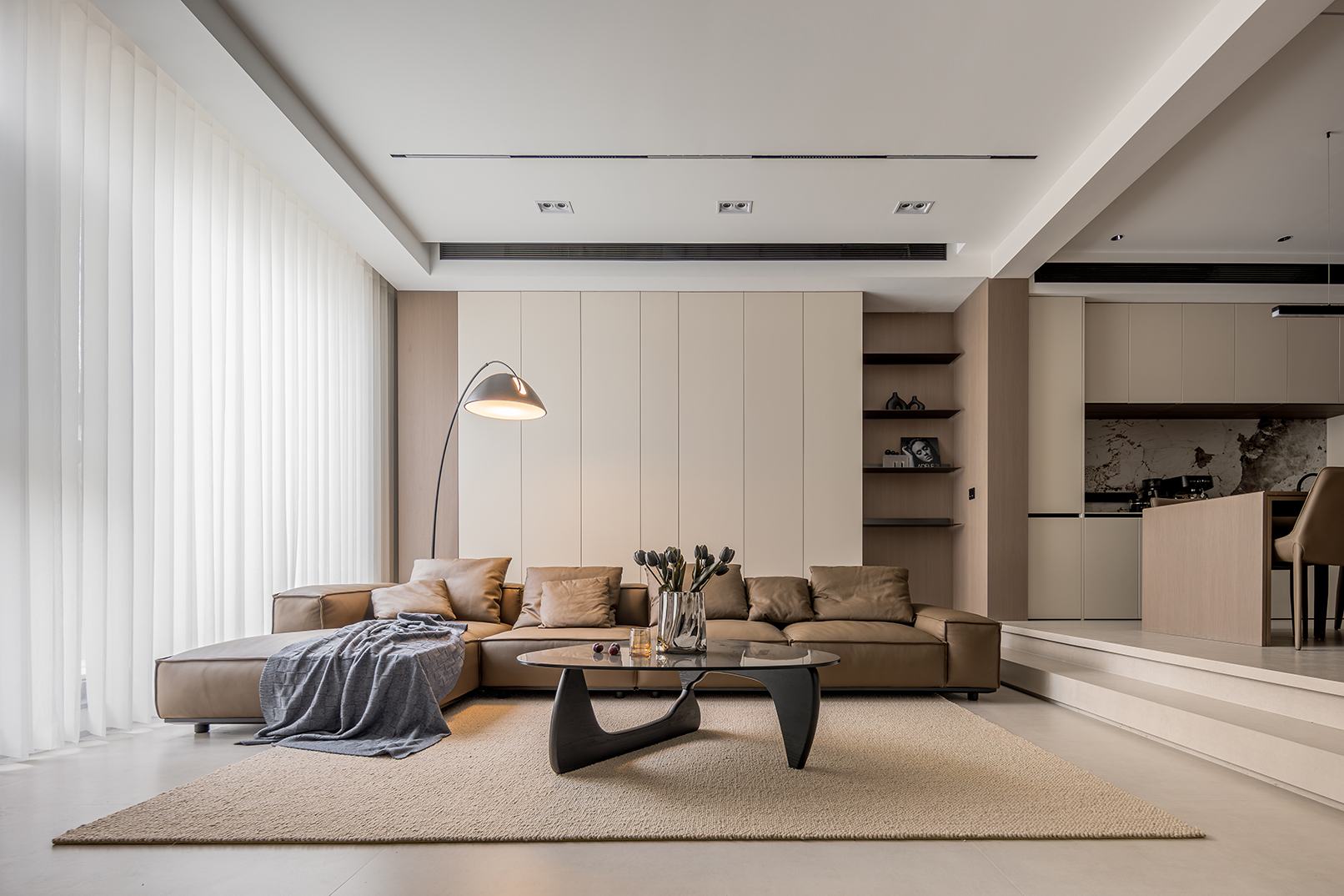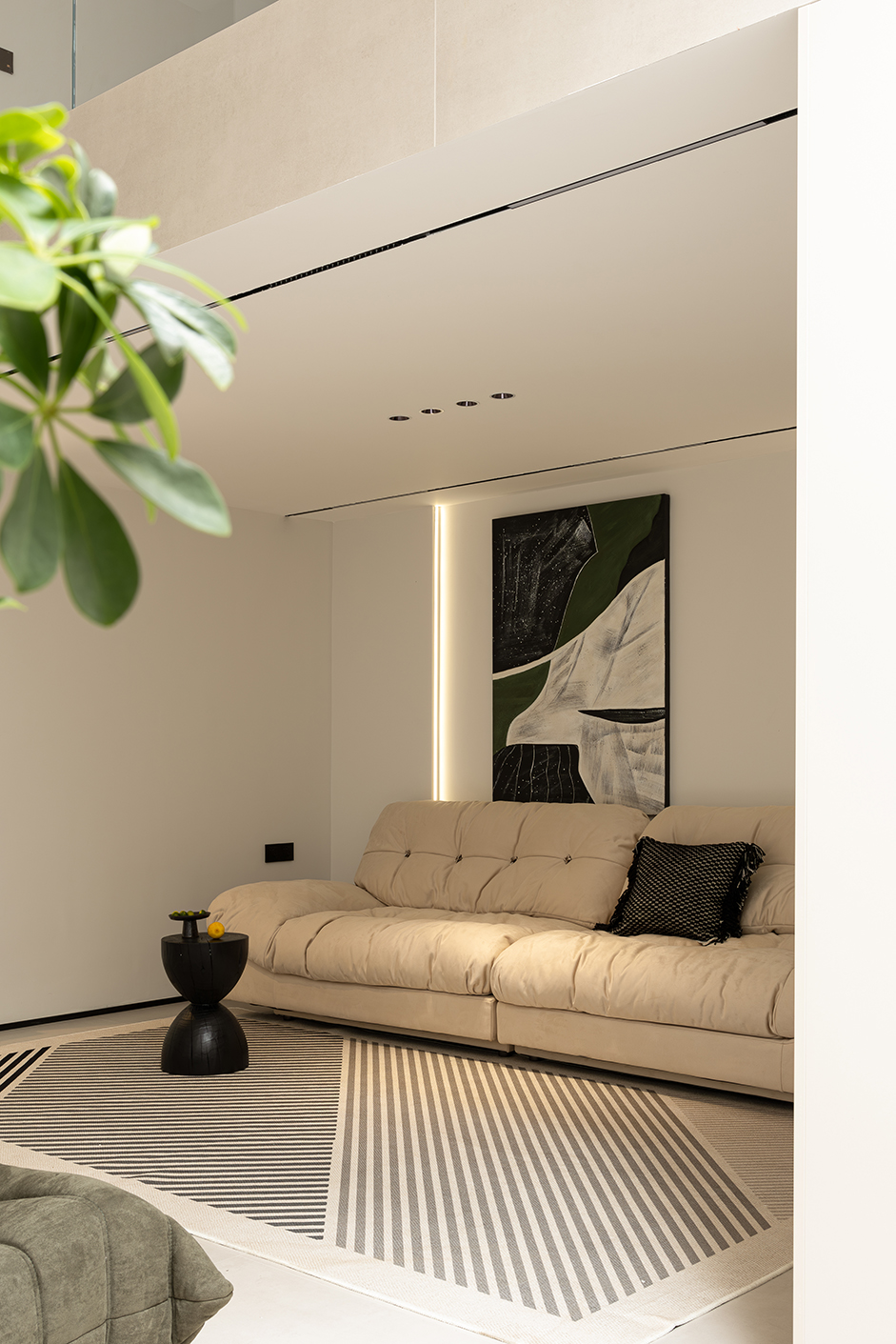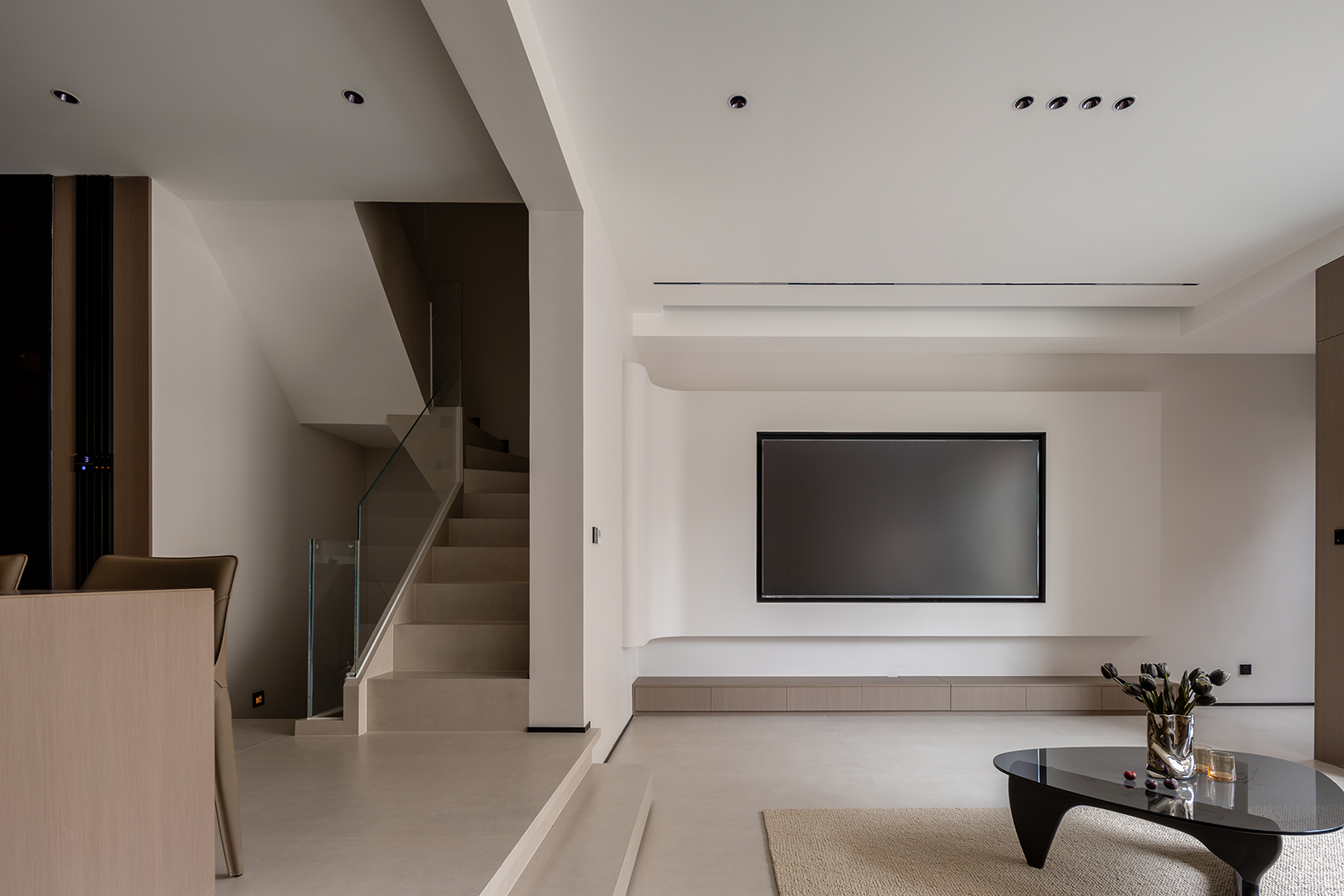空间意境:本案主要以简约风格为主,虽为连排小别墅,但每一层的面积并不富裕,故设计理念以“极简主义”为核心,以“以人为本”的理念,通过简洁的线条、纯净的颜色和开放的空间布局,营造出一种宁静而舒适的居住环境。
