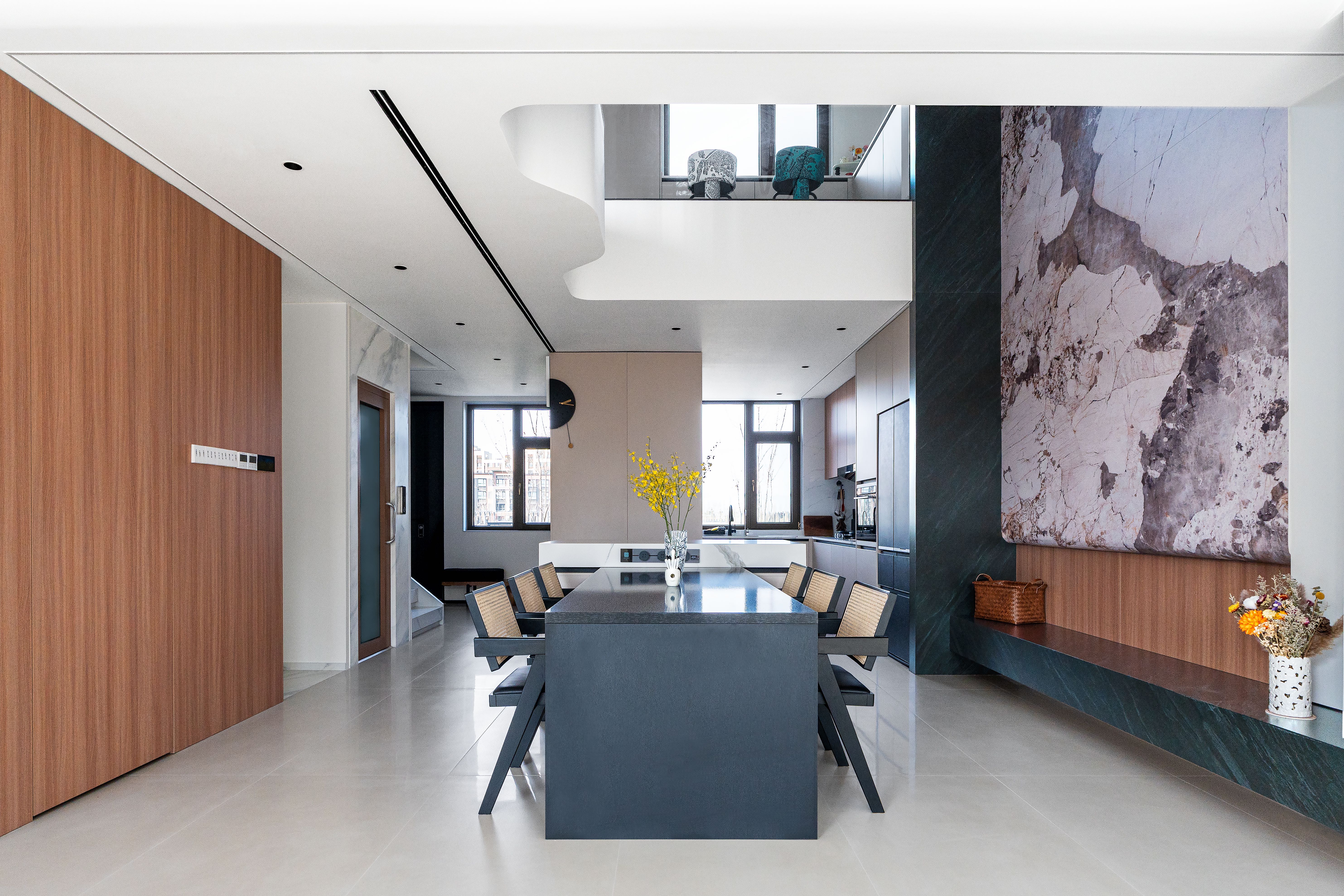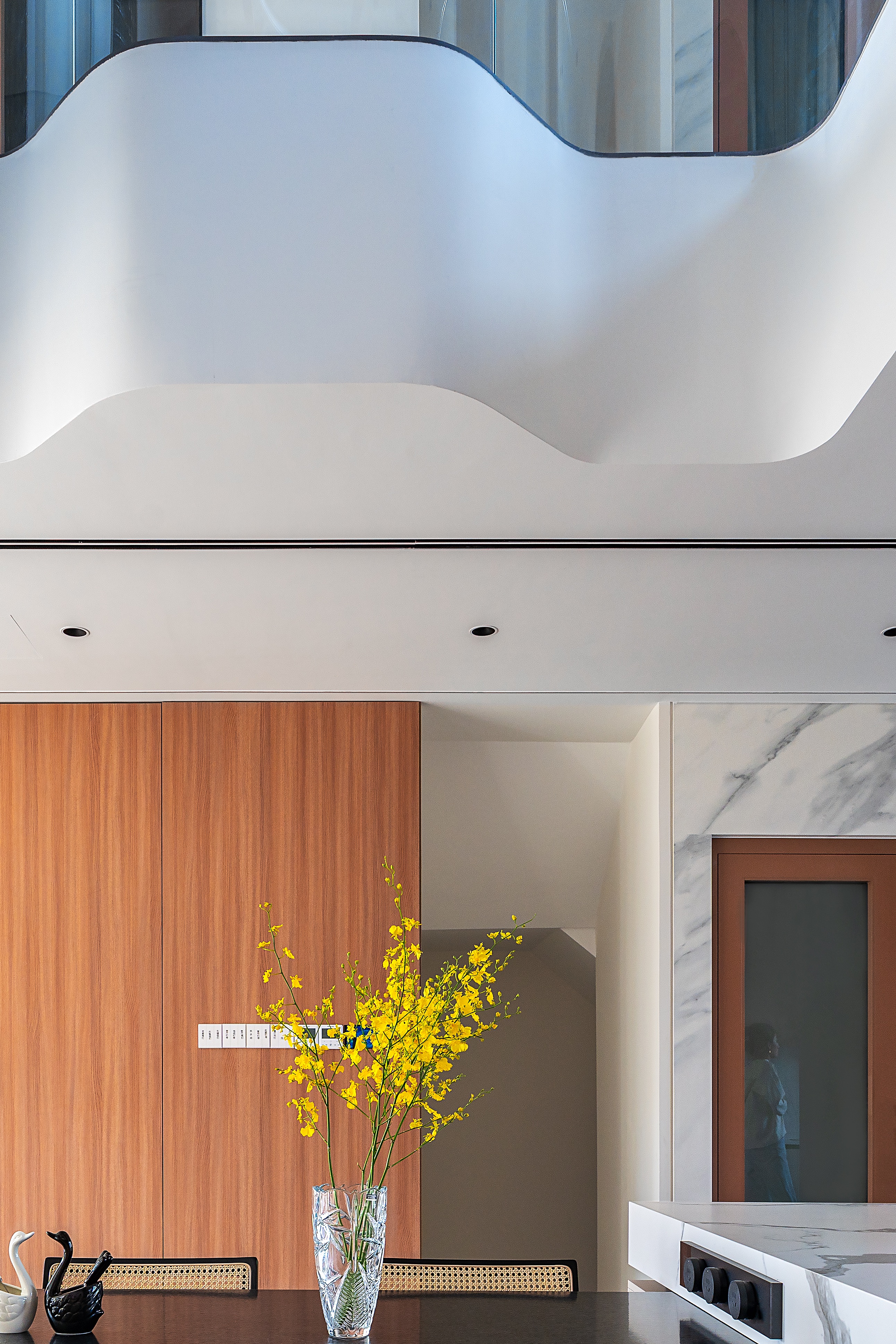 空间意境:力旺林溪湖在环境风格的创新上独具特色。弧形的设计元素为空间增添了灵动与柔和之美,使其视觉效果更为独特且富有变化。现代原木风格的运用,带来自然、质朴的气息,营造出温馨舒适的居住氛围。而挑空的设计,则在垂直空间上形成开阔的视觉感受,增强了空间的层次感与立体感,让整个环境显得大气而敞亮。这些创新点的融合,不仅展现了独特的美学价值,更提升了居住者的空间体验,打造出一个兼具现代感与自然韵味的高品质居住环境。