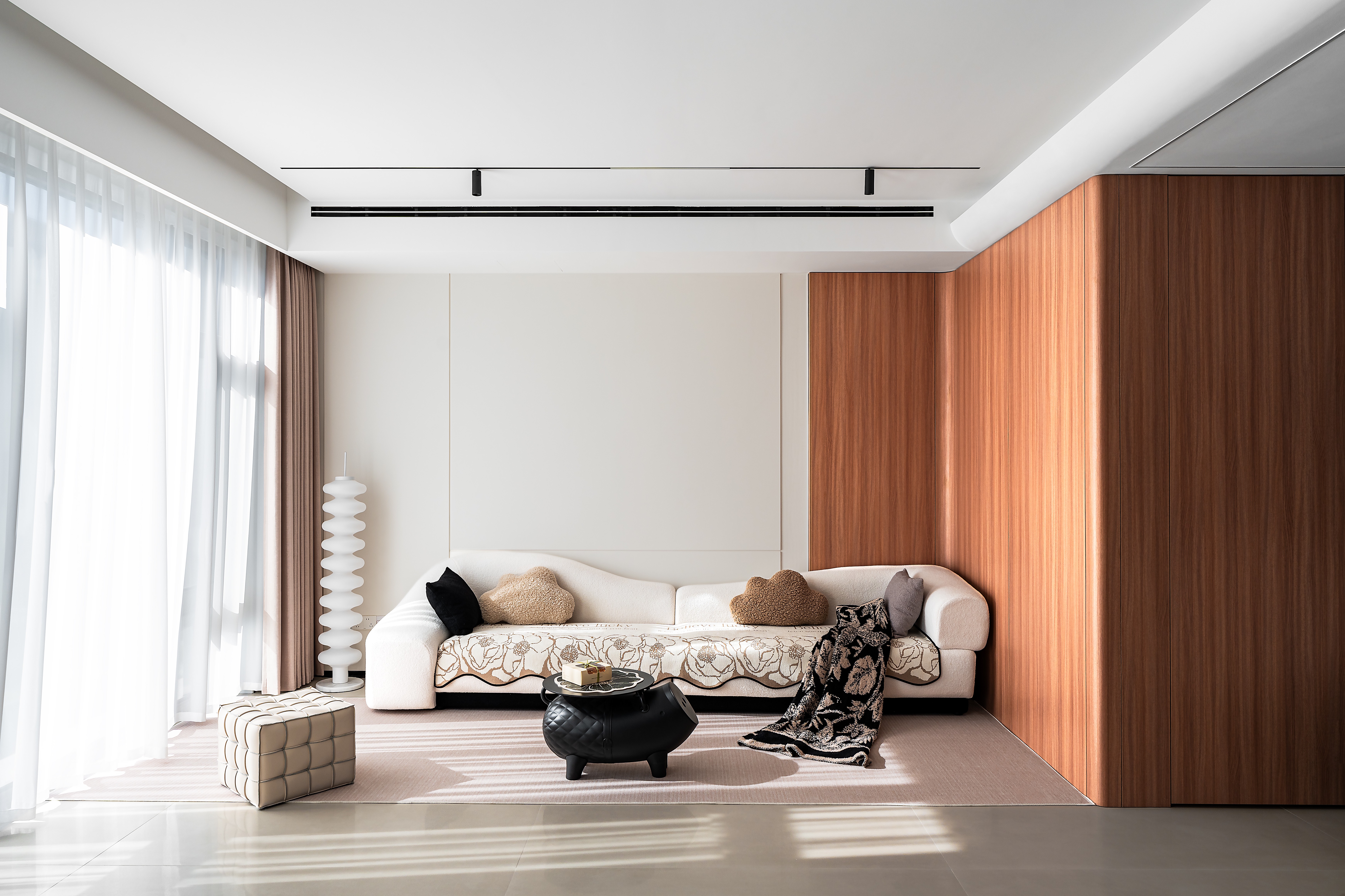 项目定位:力旺林溪湖采用现代原木白风格。白色为主色调,简洁高雅,原木色增添温暖自然气息,二者搭配和谐,避免冷峻。挑空设计是亮点,打破平面布局,客厅挑空使空间大气,视觉豁然开朗,增强层次感与立体感,采光通风更好。弧形元素的运用也很巧妙,无论是墙面、楼梯扶手还是天花板等,这些弧形元素为空间注入柔美与灵动,让整个建筑不再生硬刻板,处处彰显独特的设计魅力。