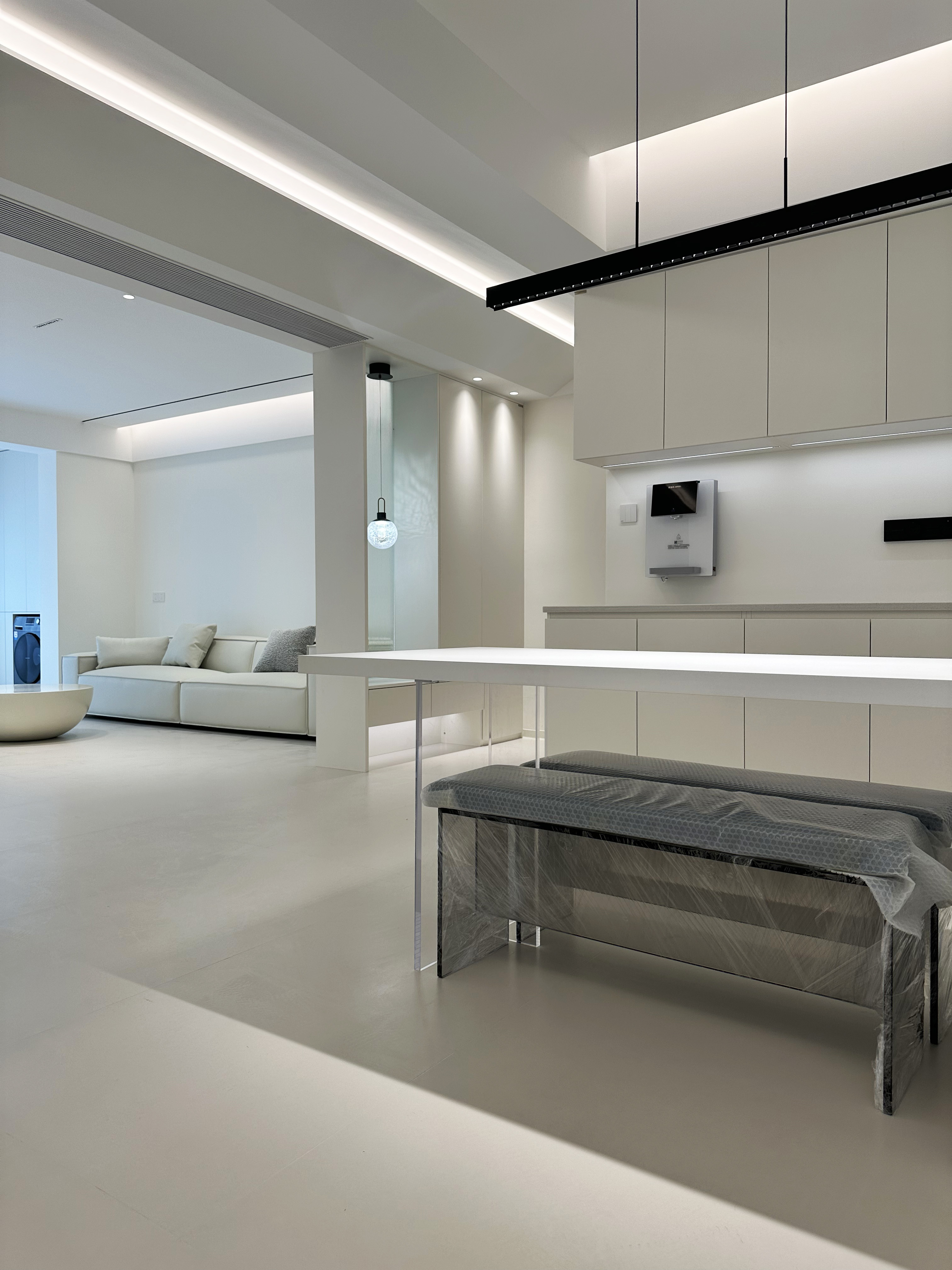 空间意境:整体色系统一,干净利落,奶白色系为主,局部点缀黑色