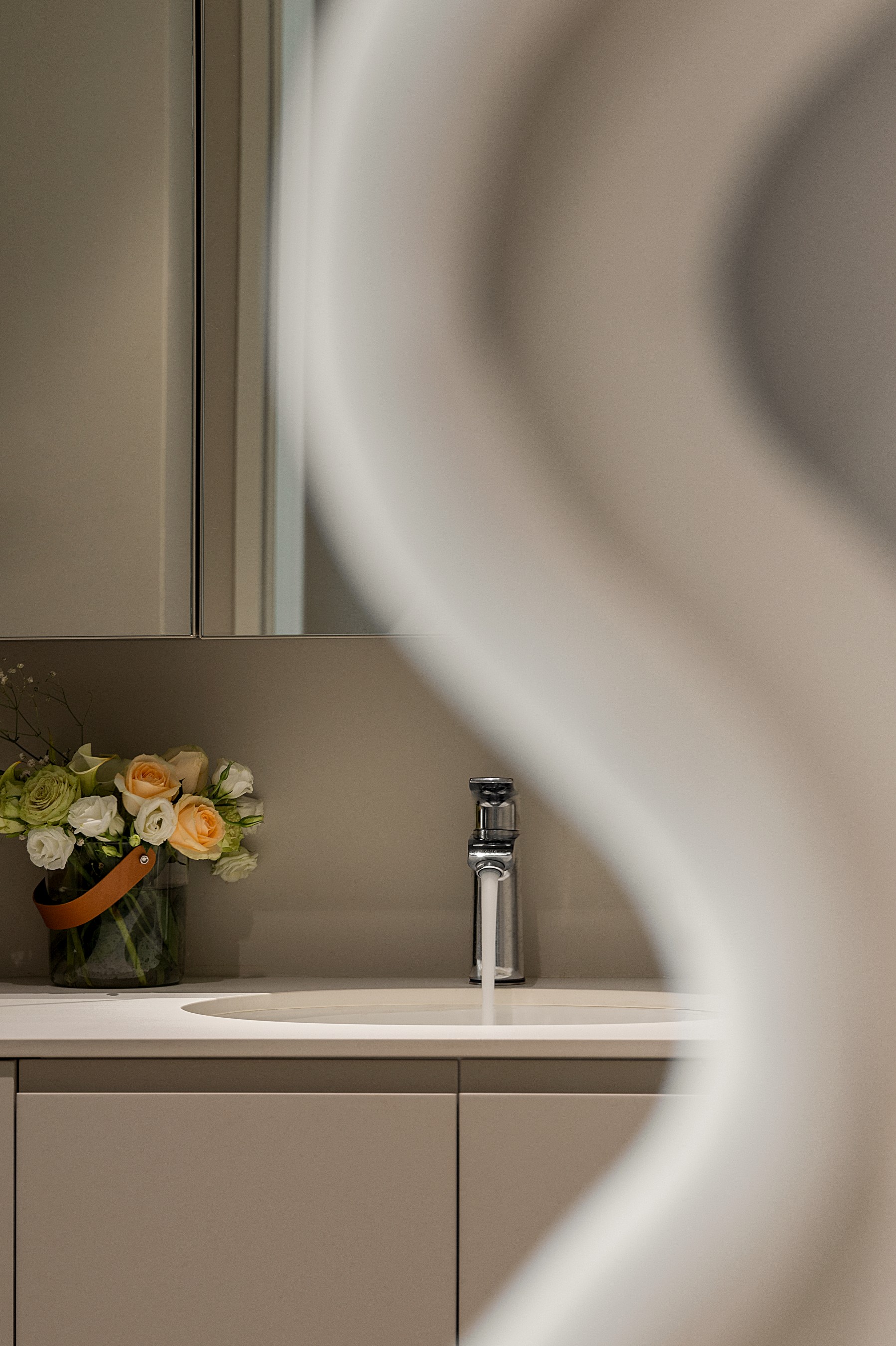 用户体验:每间卧室都有属于自己主人的颜色,很多智能化的设计对长辈更加的友好,实用性非常的高。学习,茶歇,聚餐,绿植,泡澡,每一个普通的生活场景,都被合理的规划到了这次的私宅设计中,设计师本人,在自己的空间美学中,成为了主角。