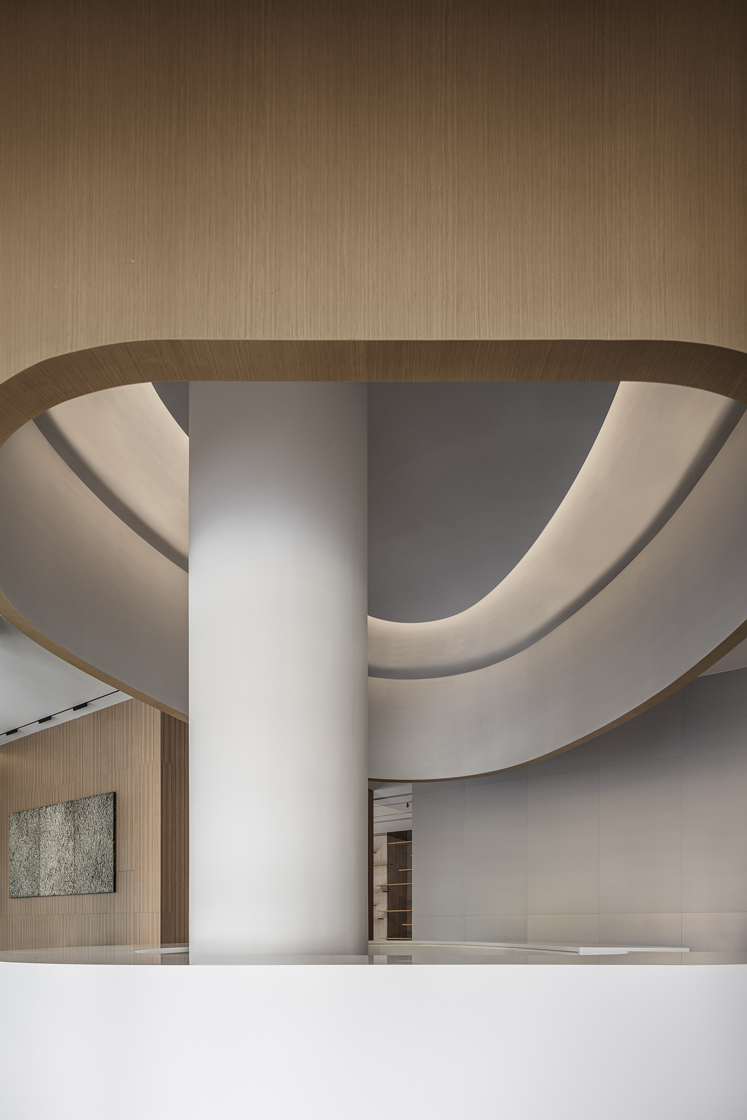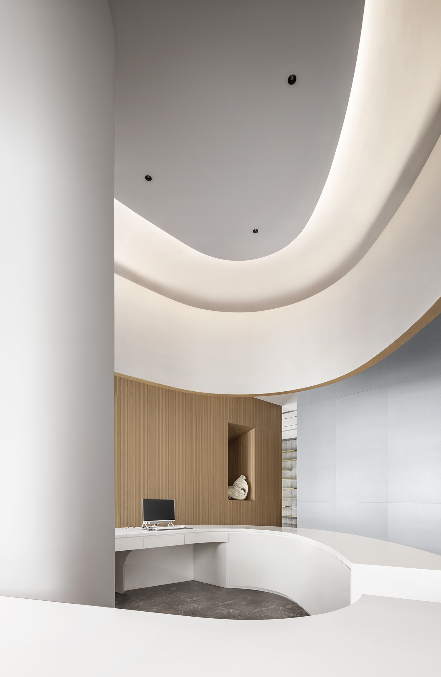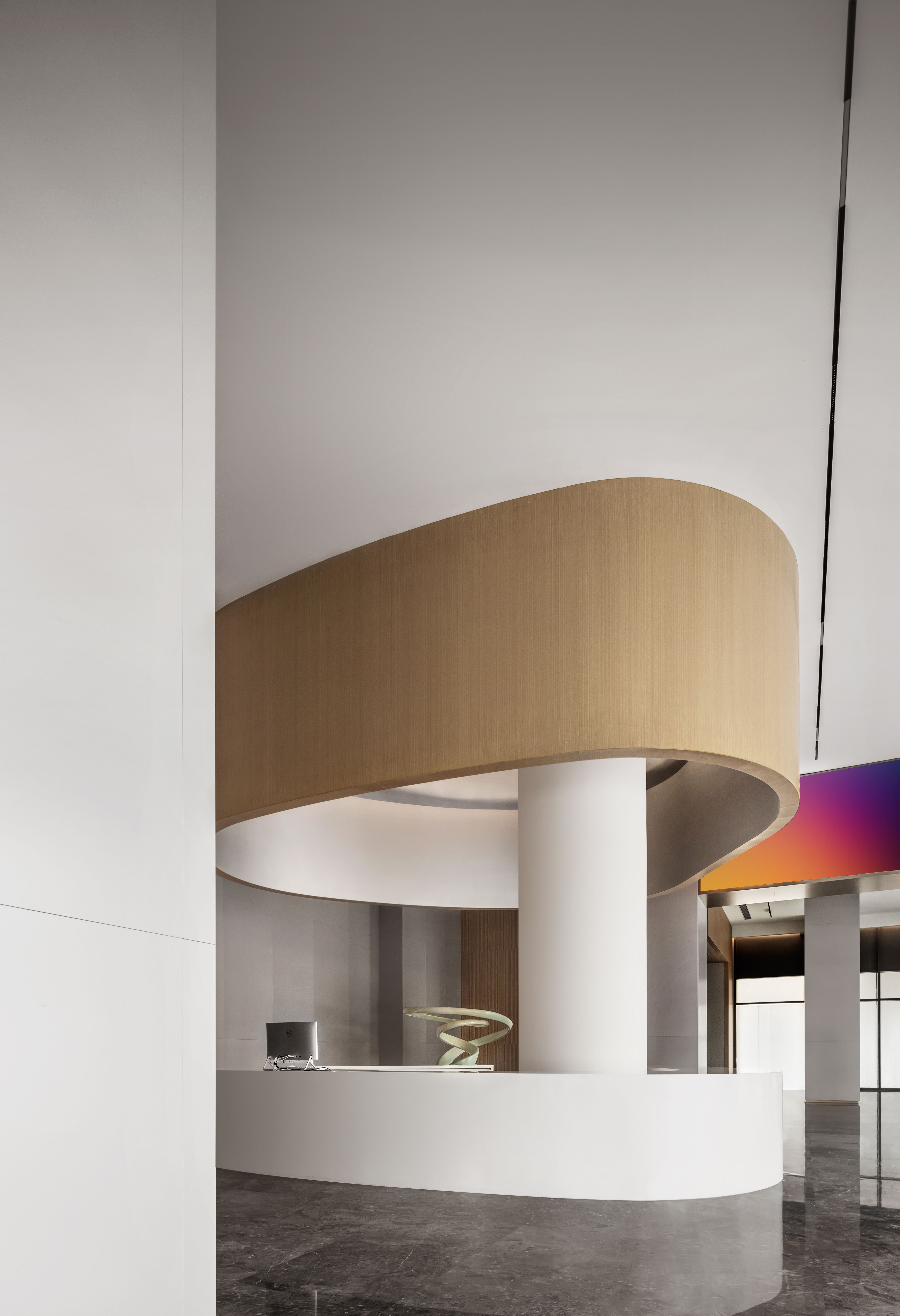 由前台的帆船意向构建为代表,整体空间强调艺术展陈,当代且富有艺术性;