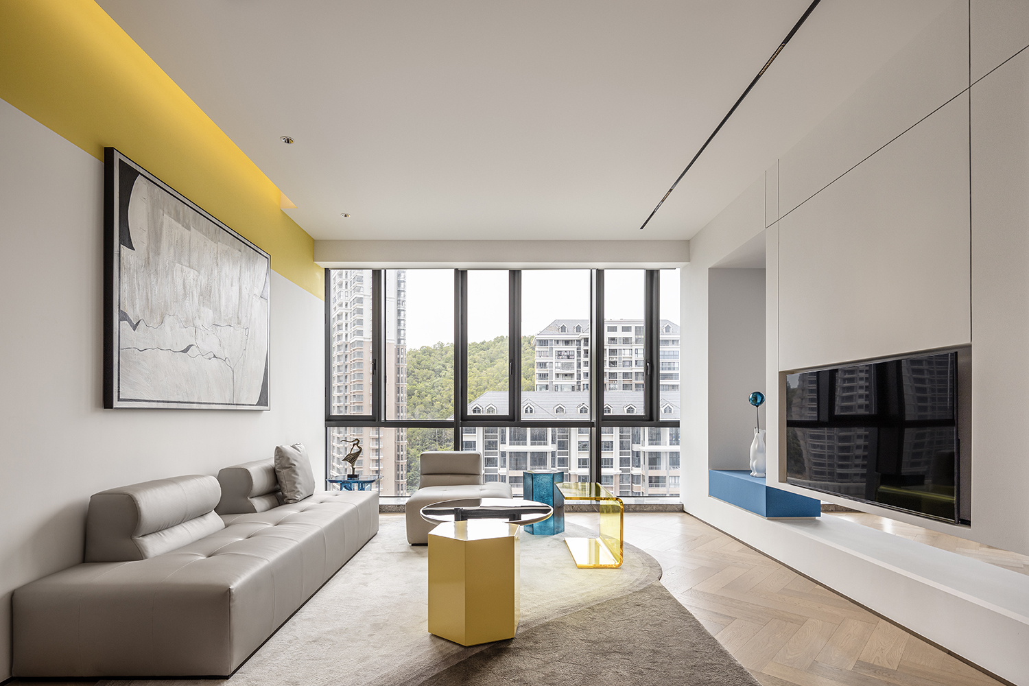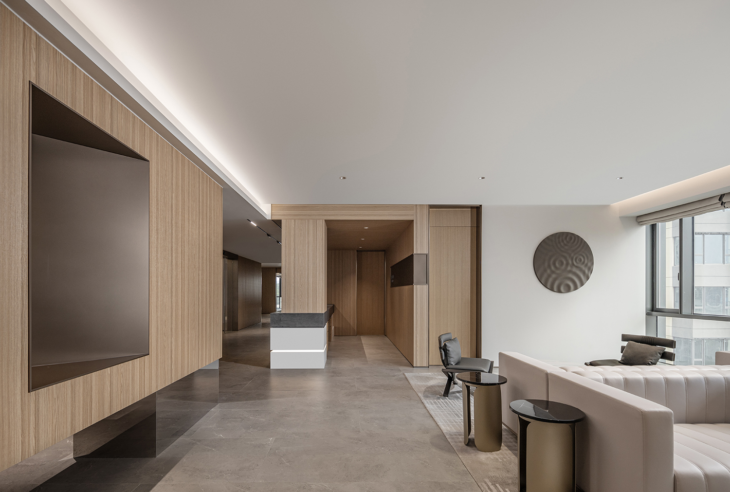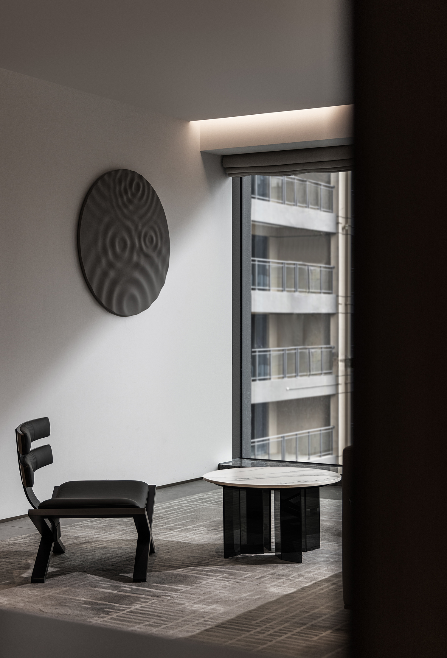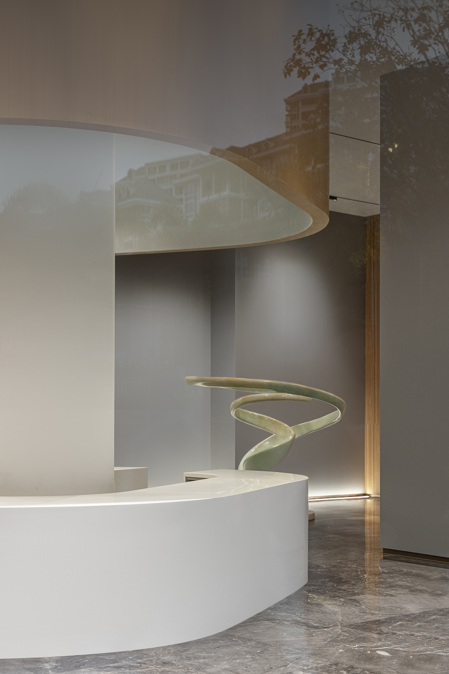 由前台的帆船意向构建为代表,整体空间强调艺术展陈,当代且富有艺术性;