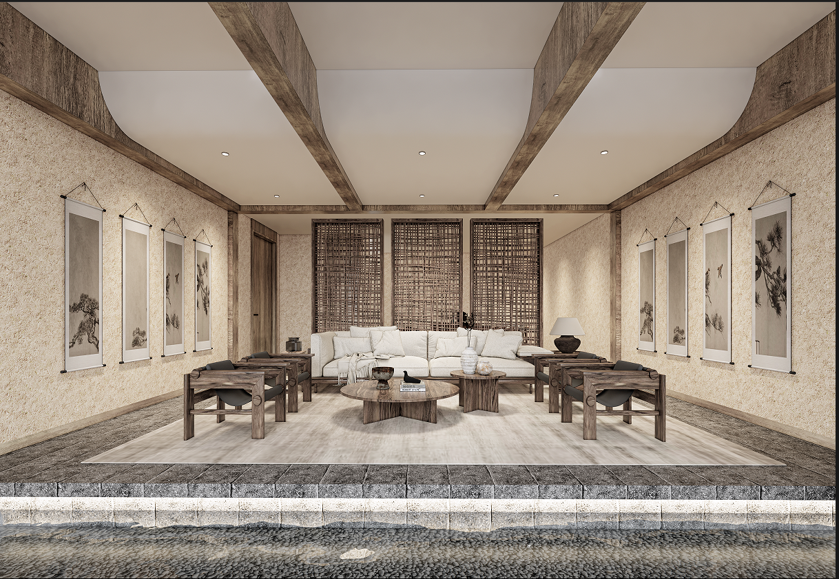 项目定位:为宜宾三江明珠企业之家设计休闲空间,融入当地水、竹、酒文化,打造具有地域特色的休闲环境。