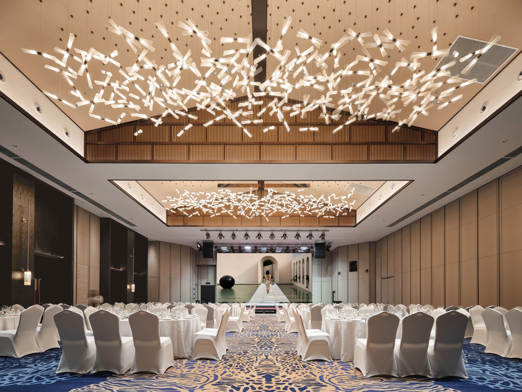【大堂吧】入眼是波光璀璨的水晶装饰造型,通过光影、材质的虚实搭配,穿插空间,给与感官的空灵享受。