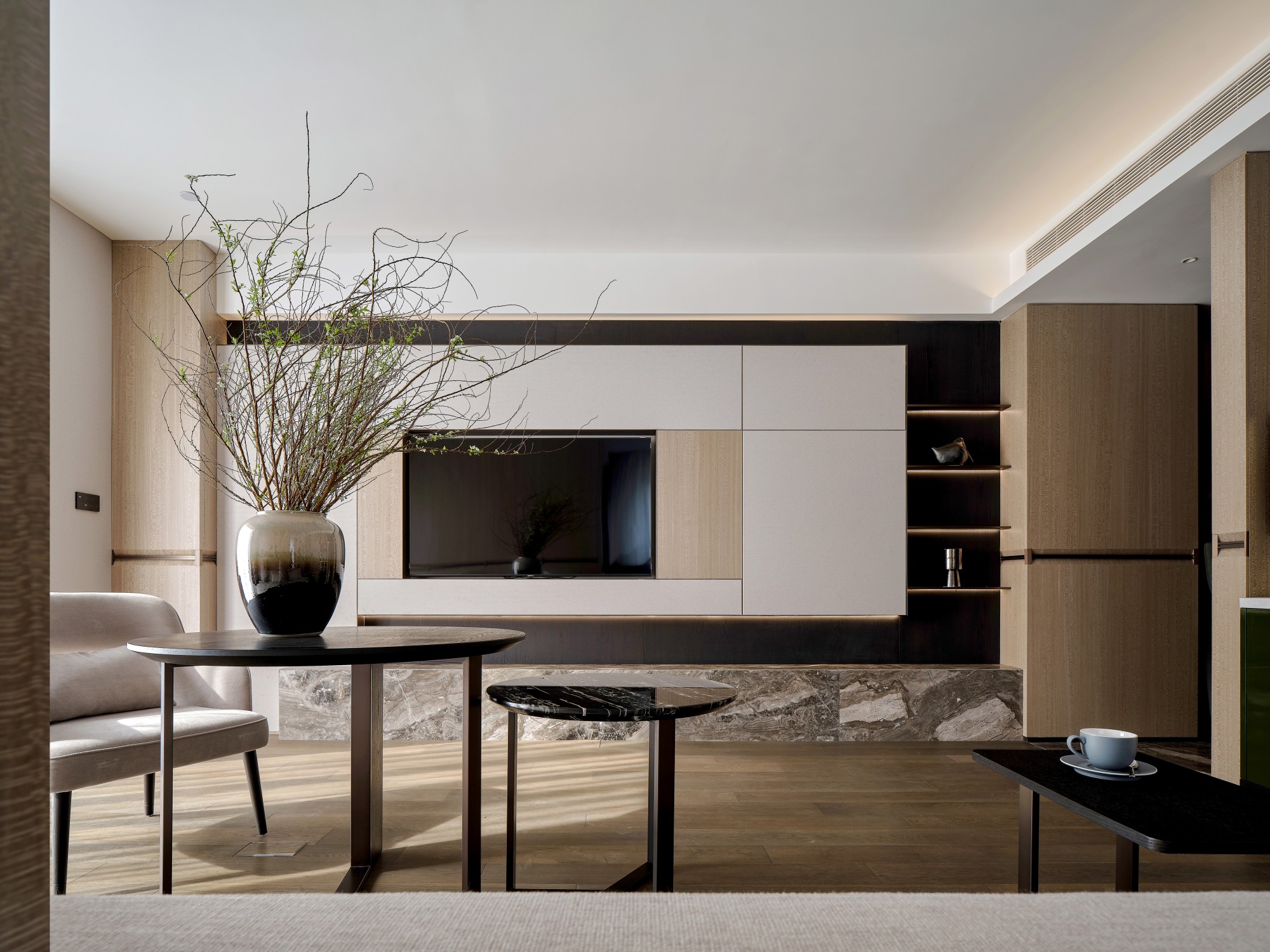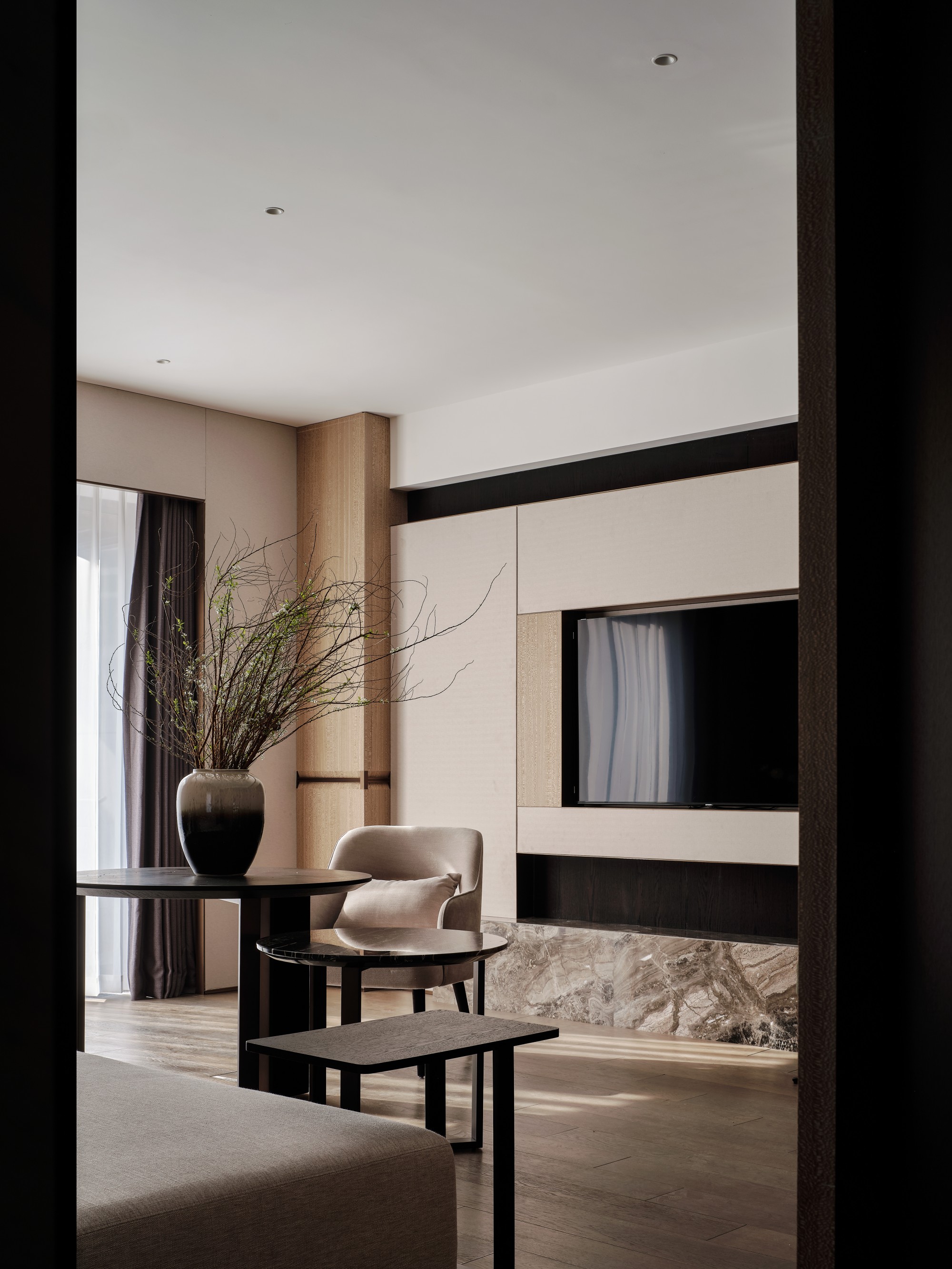 空间融合现代与自然的元素结合,以品牌色彩点缀空间,放大空间的舒适体验。