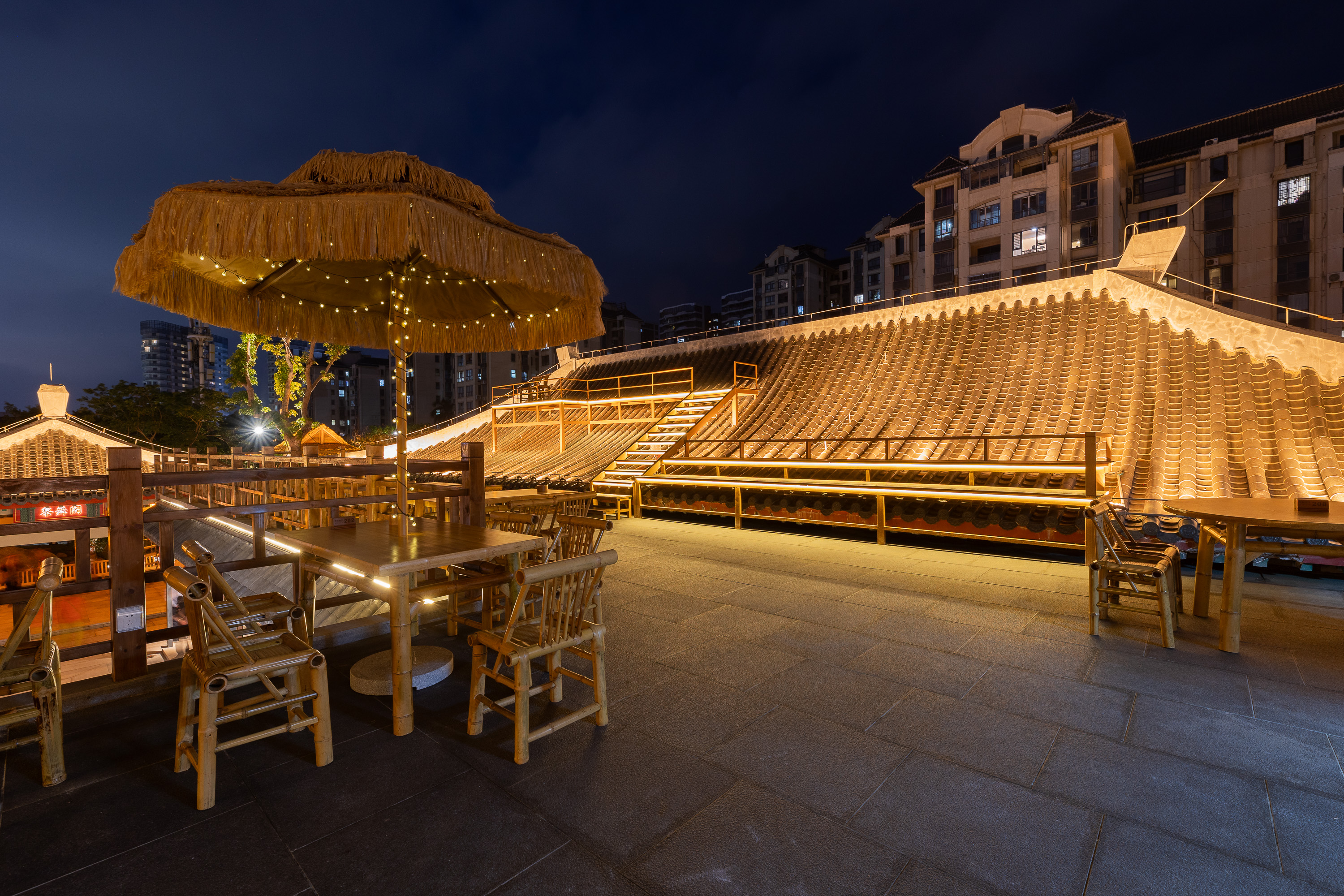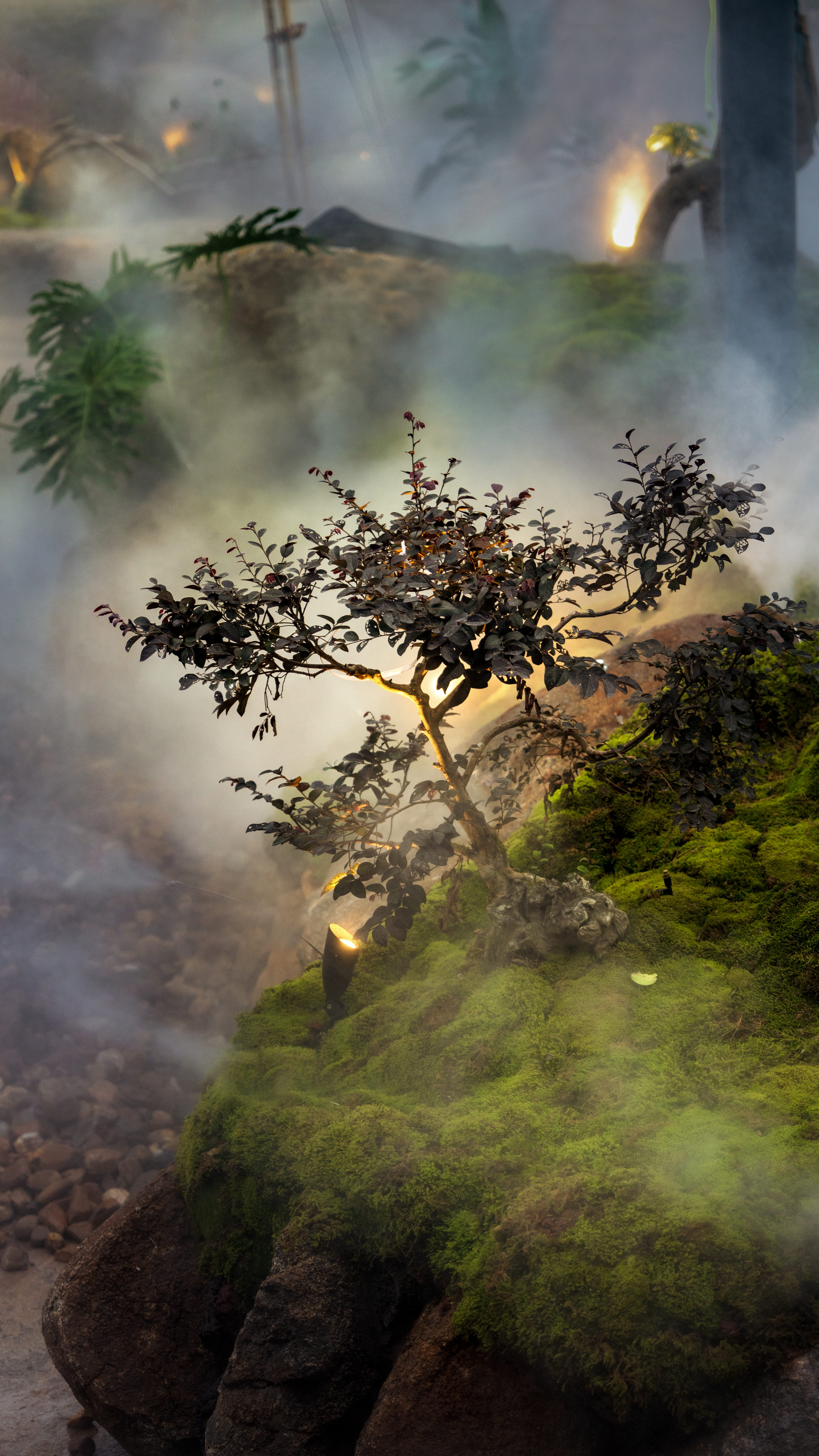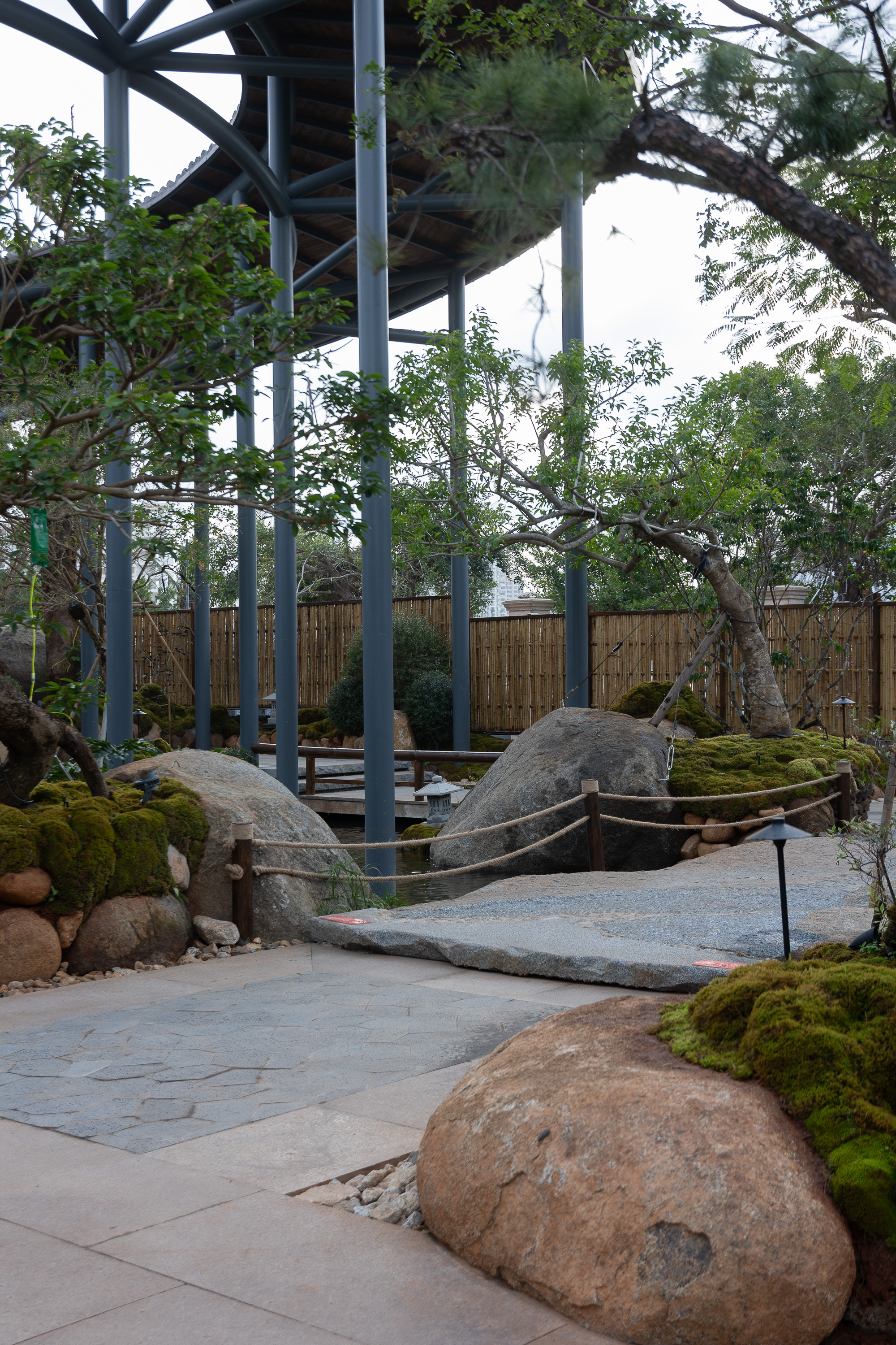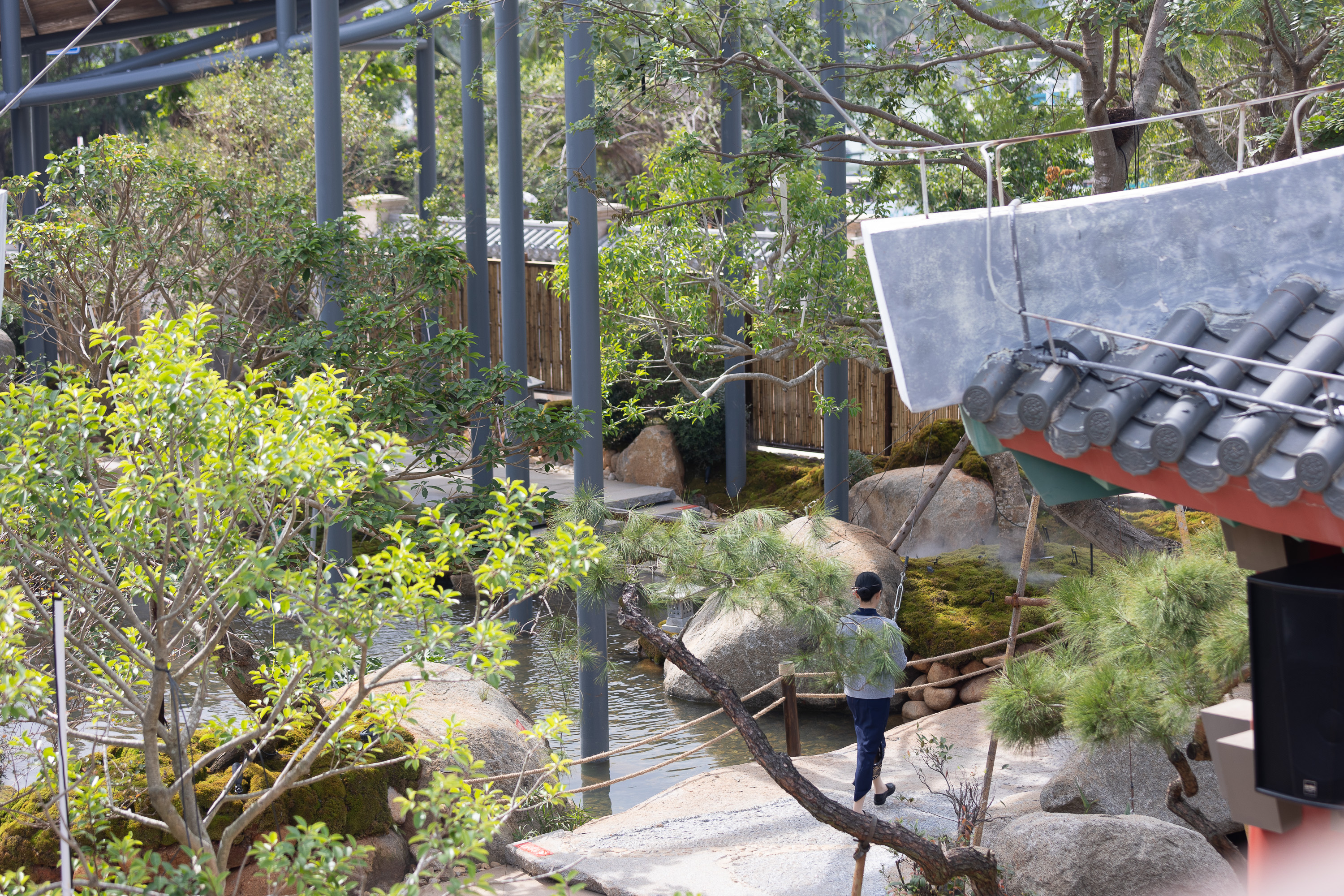 空间布局:以前整个项目是整体平面,都是在一个水平面,我们用园林手法,从进门的位置,我们整体抬高了1米,然后进来以后在慢慢降高度,然后在以园林起伏势的地形,来一步步进入到明档,所以所有消费者进来的时候,是感受很丰富的,也能增加他们在游园或者消费前的这种体验,很多地方我们把石头压在路口的位置,让他进来的时候,要感觉会碰到石头了,身体上面会有扭动的行为,也能让他们直接用身体的触感触摸到,人最直接的感受应该也是触感,有了触感,人的印象就会加深