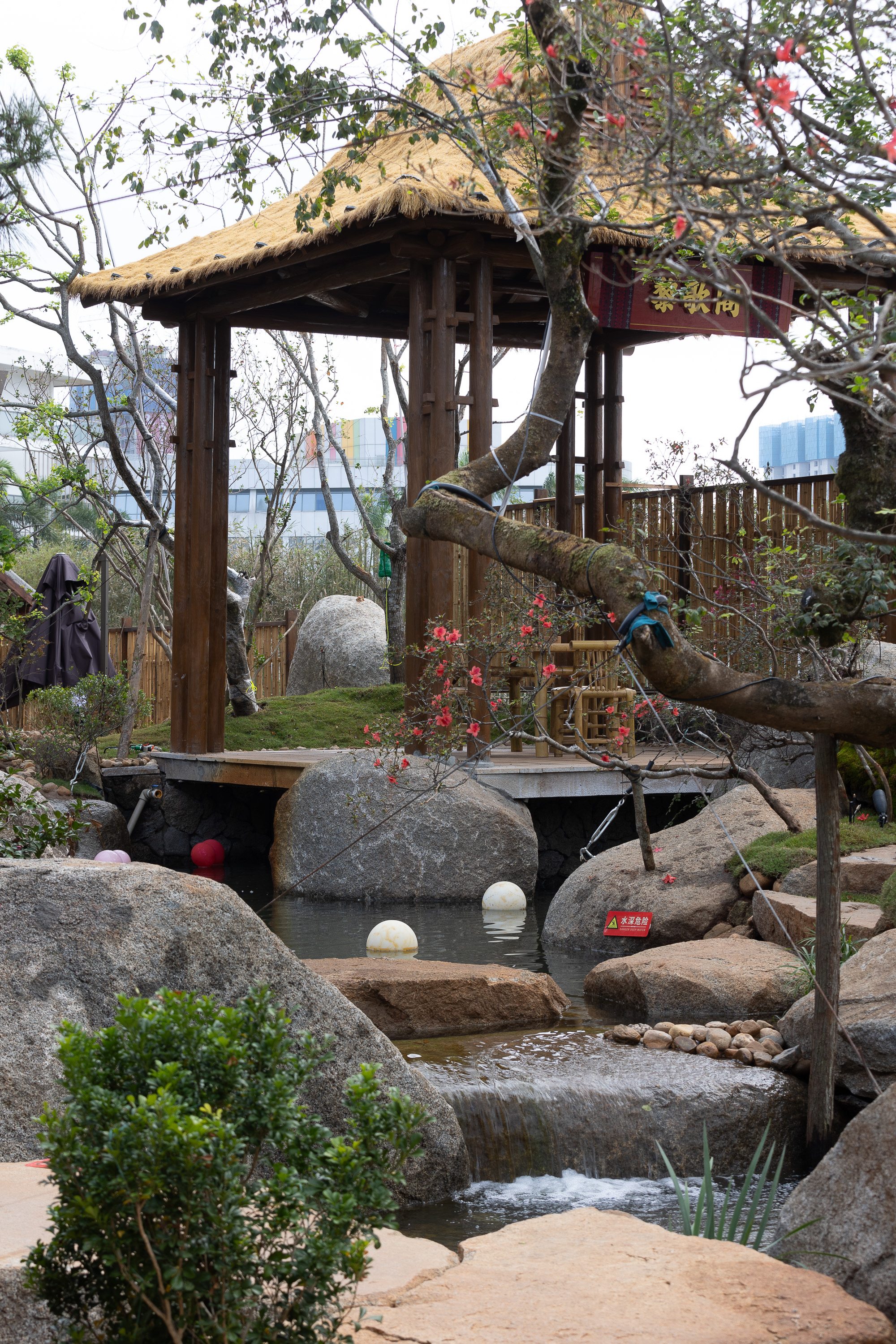 项目定位:以海南本地文化为导向,以园林的方式,给消费者带来不一样的感受体验,在看惯了大海的海南人民,我们选择了在园林板块更多以溪流的形式来做水系,涓涓流水,让人联想到小中见大,大中见小的意境
