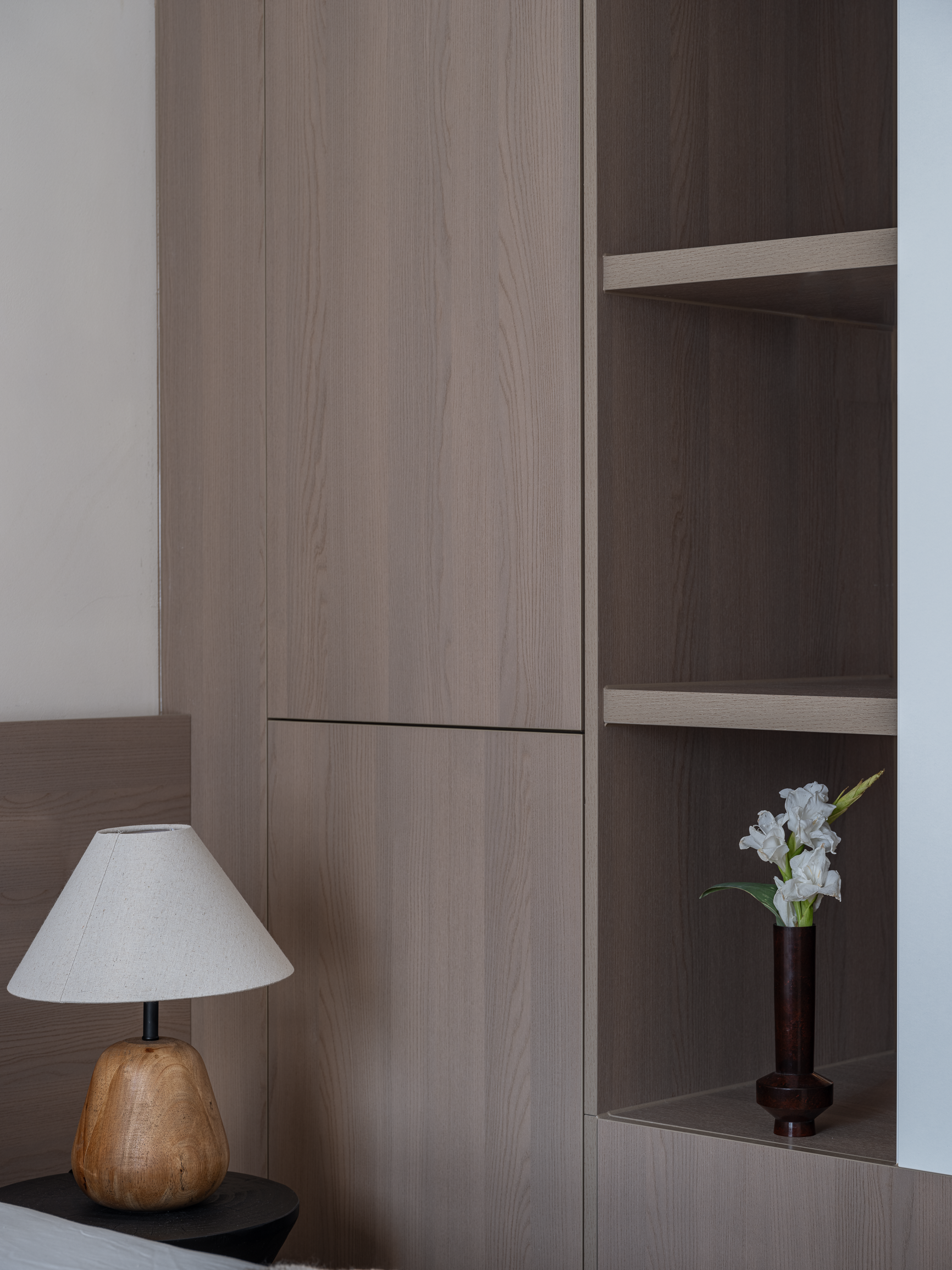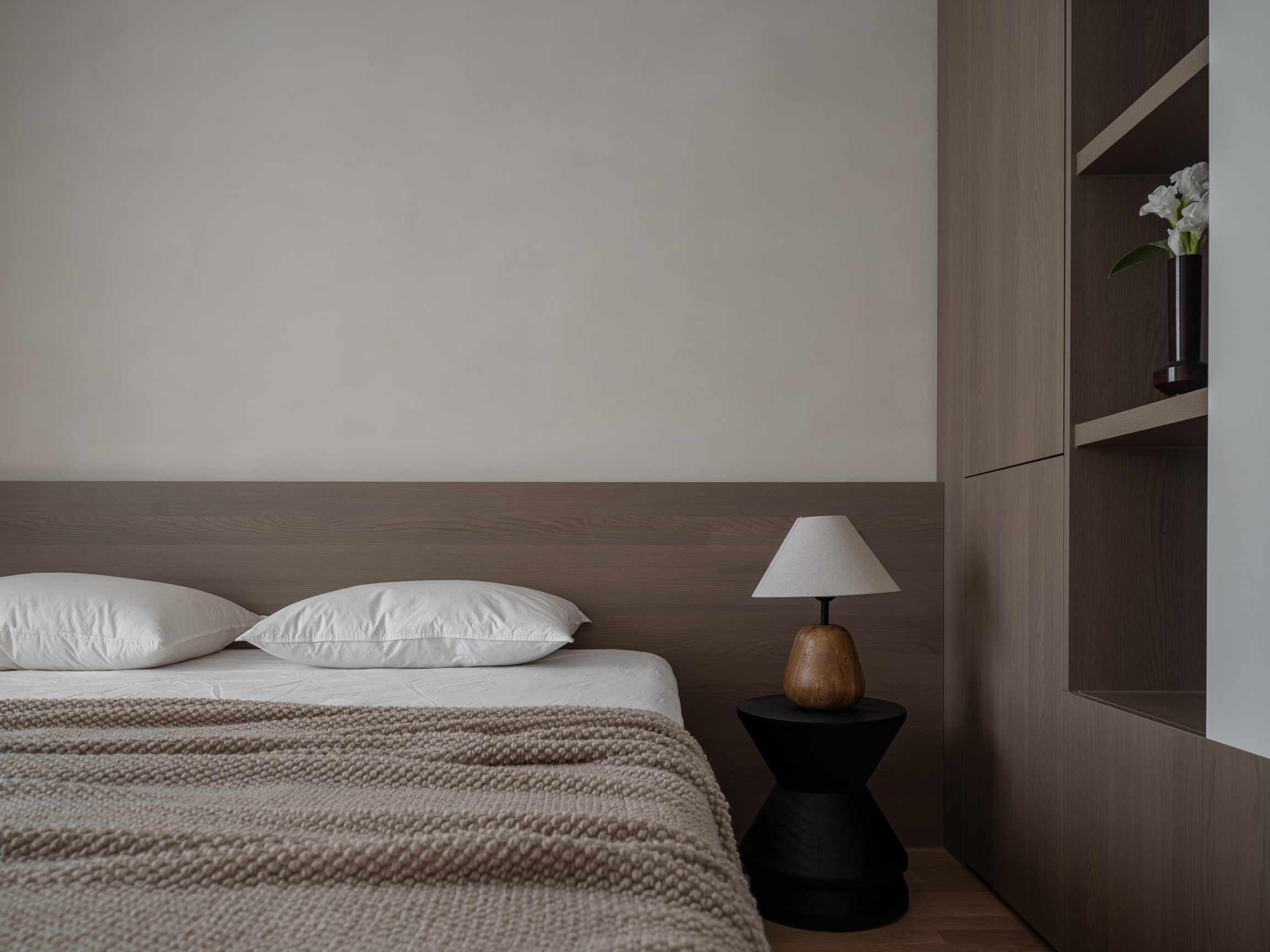 简约自然的元素,在主卧以柔和的渐变方式演化,丰富了房间的质感和特色。在这里,可以尽情享受家的温暖、安宁。