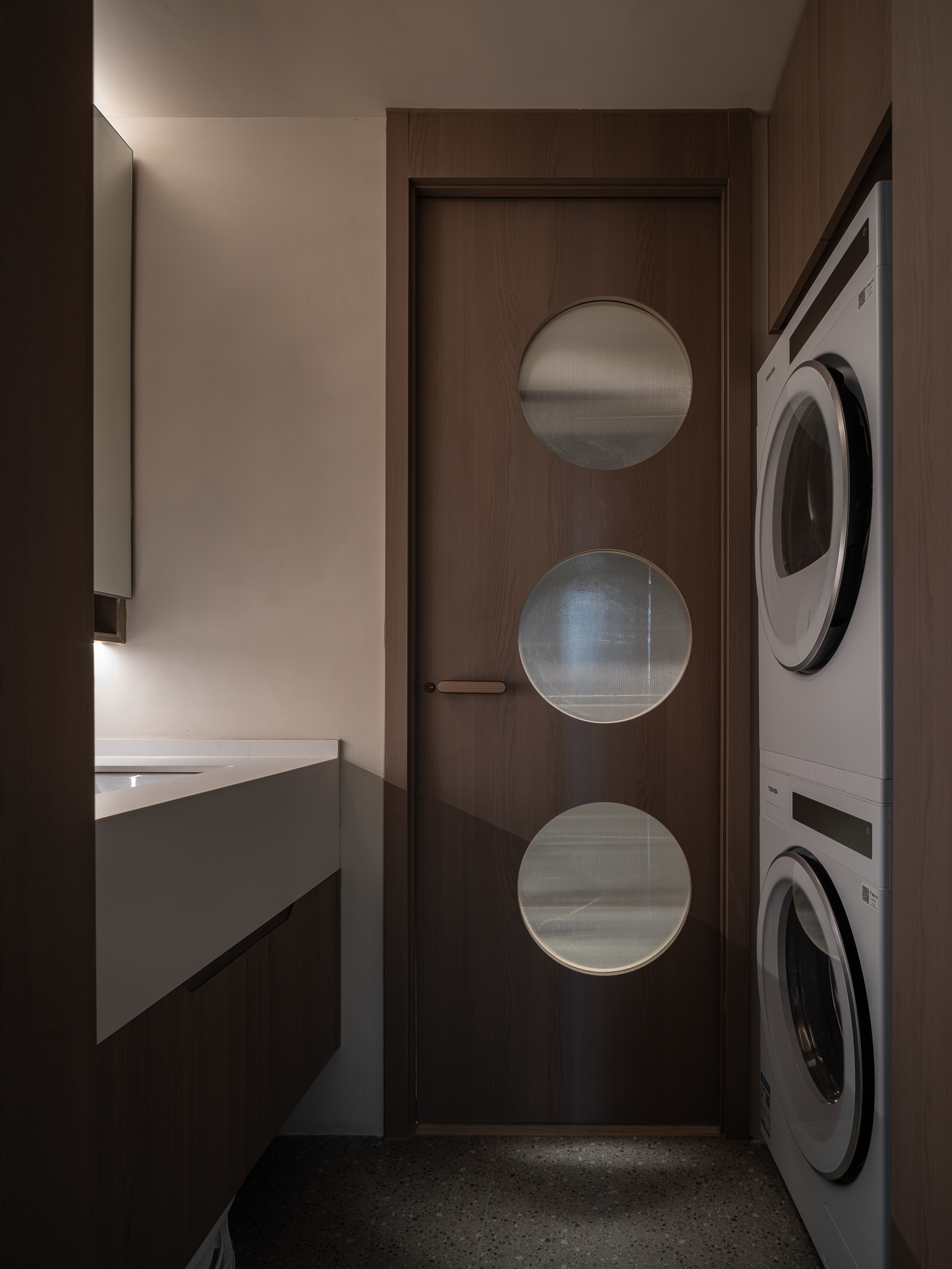卫生间采用两分离设计,提升使用效率的同时,也确保了空间的私密与整洁。下沉式淋浴区搭配水磨石地砖,简约而不失设计感,营造出清新舒缓的沐浴环境,成为喧嚣日常生活中的完美庇护所。