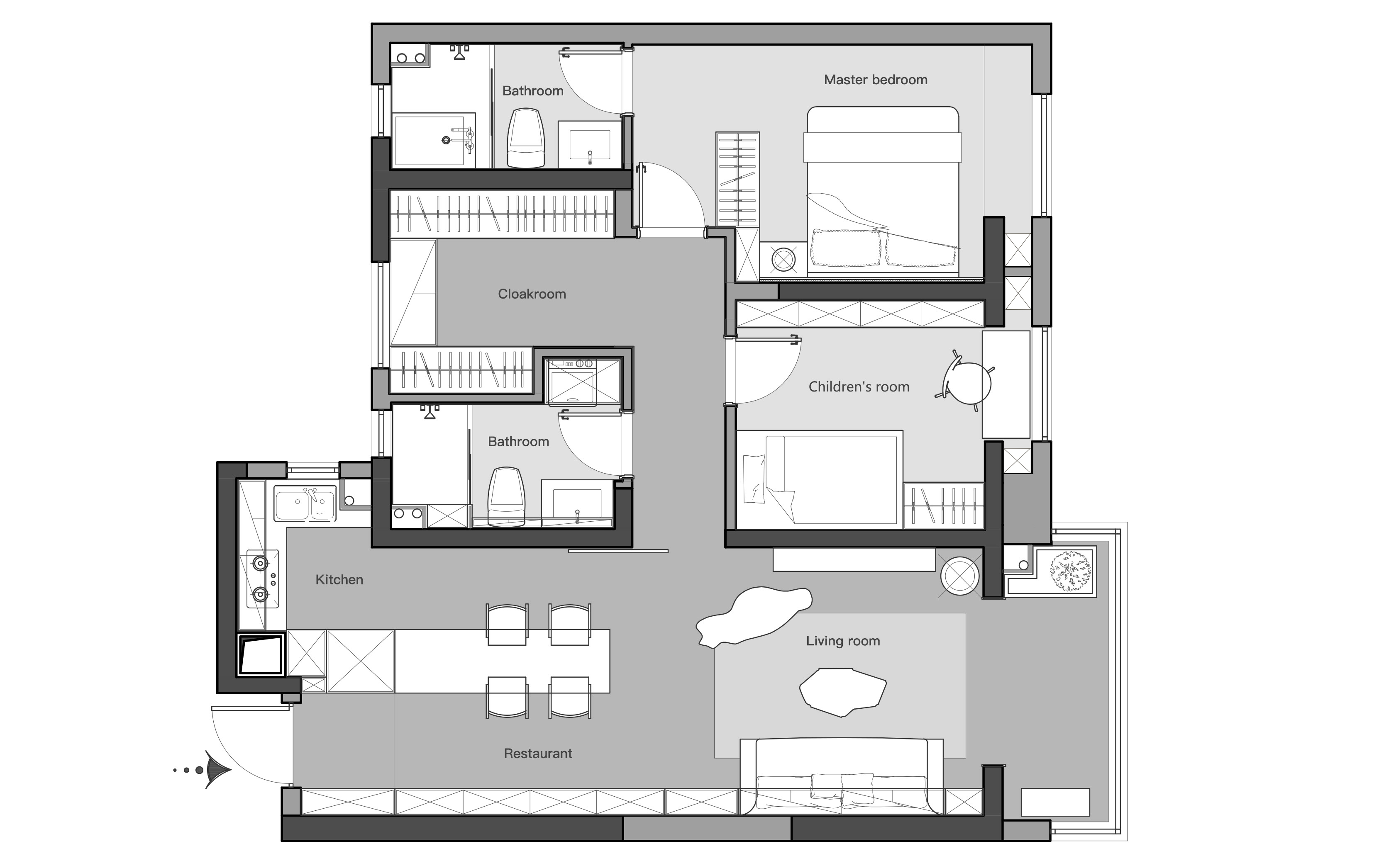 3. 主卧设置内玄关,提升居住舒适度与私密性。 -
