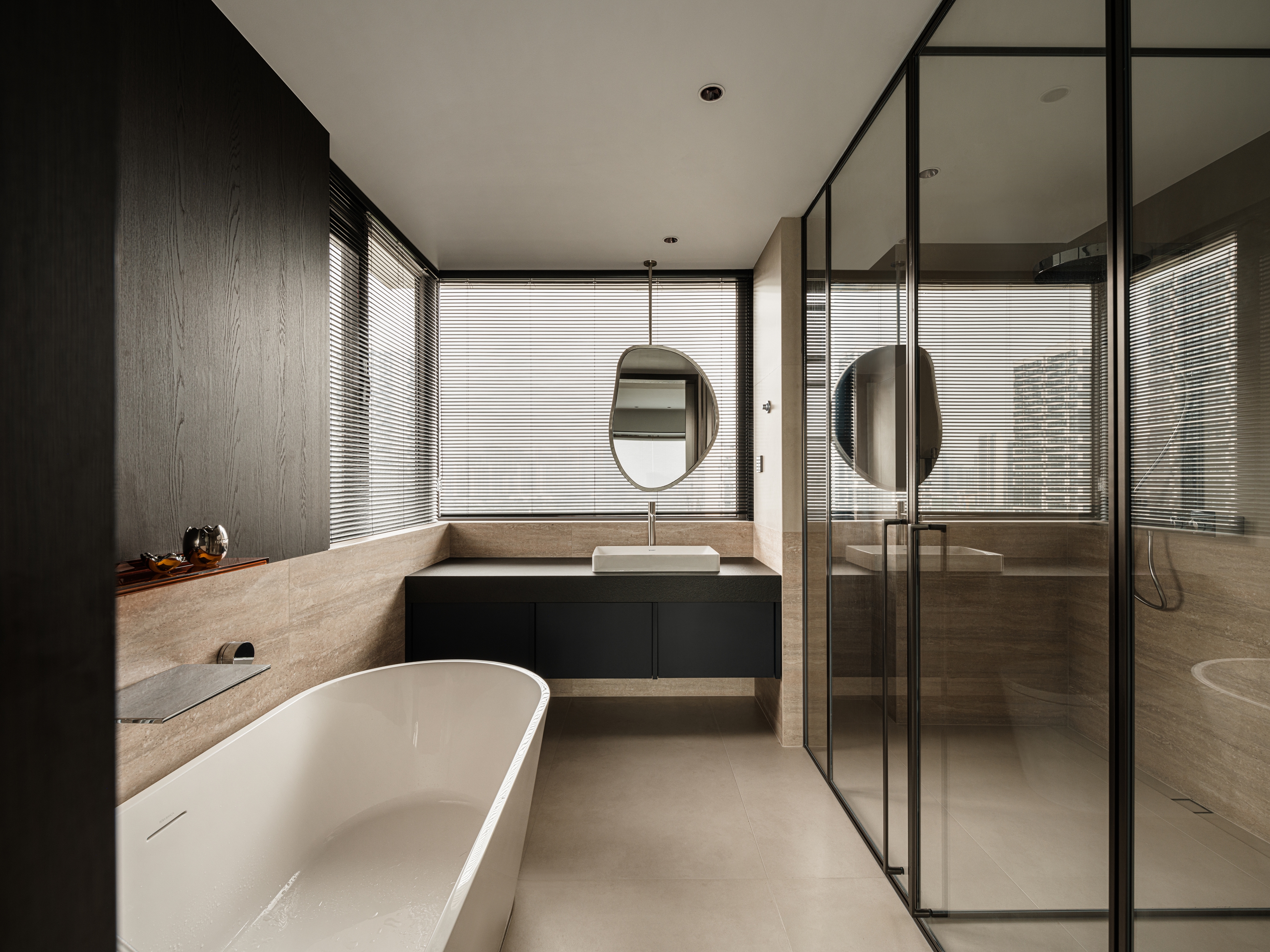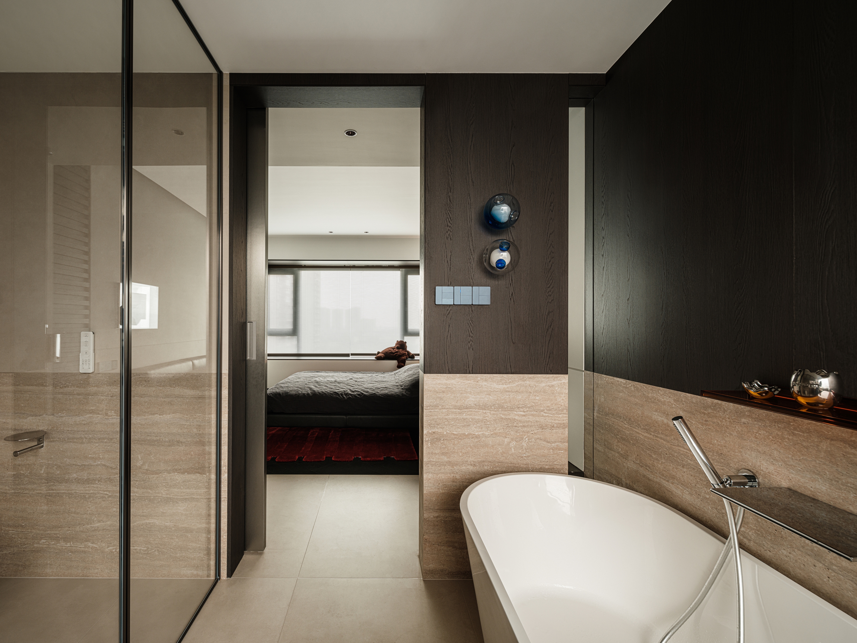 洞石瓷砖做装饰穿插使主卧南北通透保持绝佳采光。