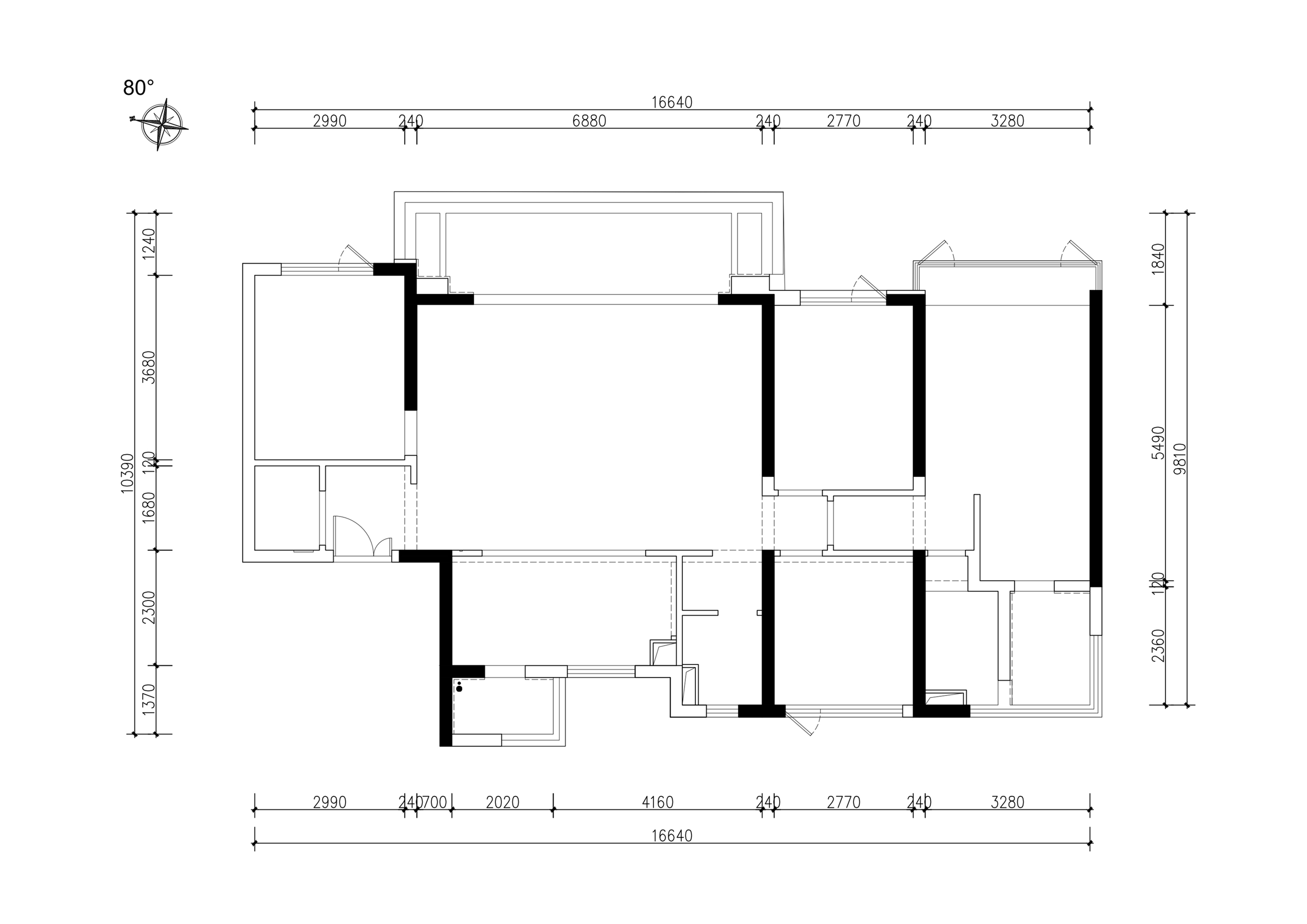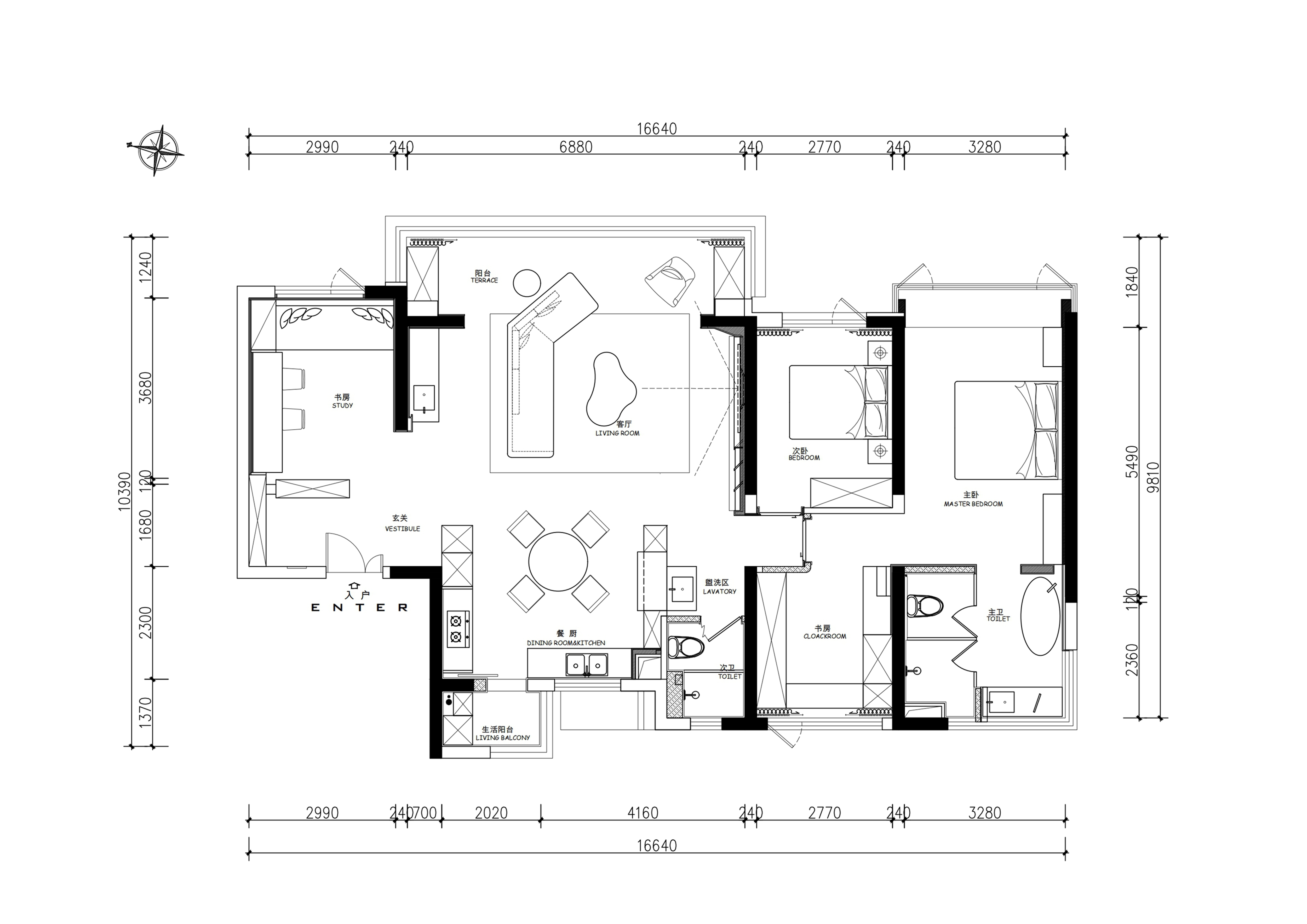 空间意境:原始面积空间虽大是个套四房,但每个房间使用面积都相对局促感觉狭小逼仄略显压抑。综合客户提出的电竞房(书房)、带衣帽间的舒适套房以及二人上班较忙备餐较少等诸多需求我们对房屋平面布局进行调整改造: