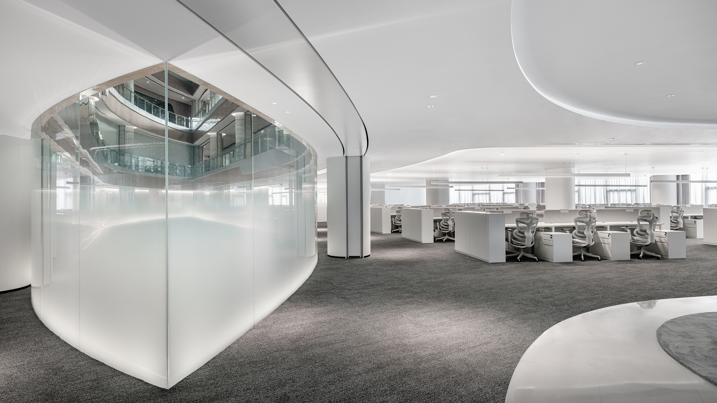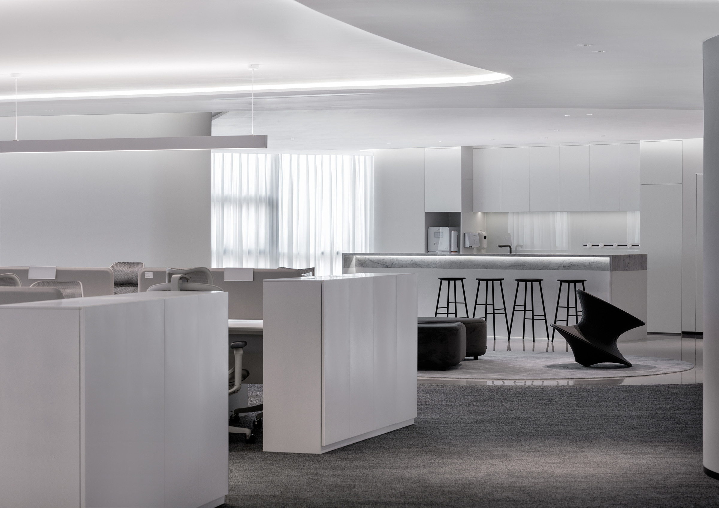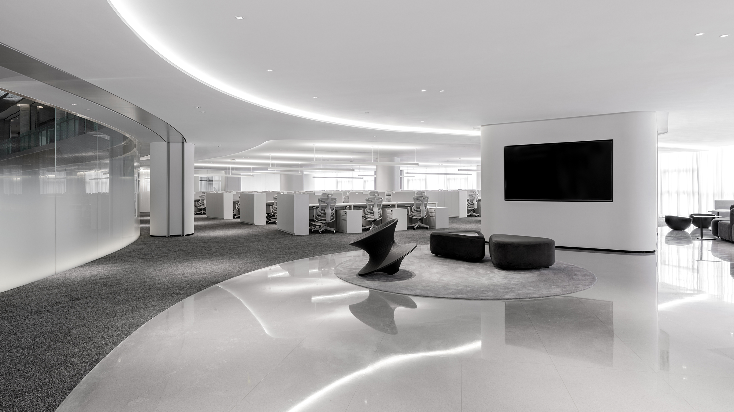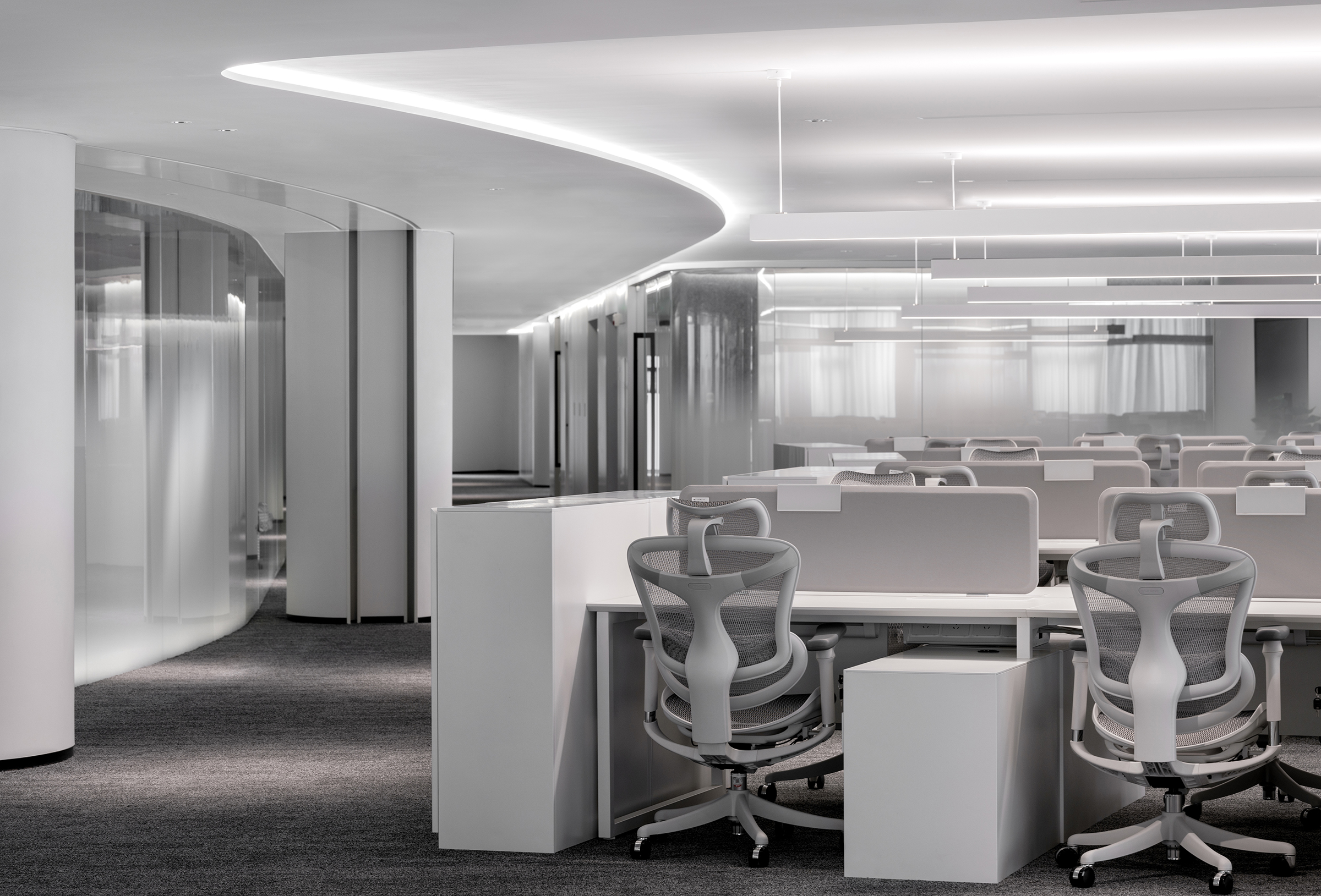 用户体验:作品投入使用后,用户普遍对办公环境的设计给予高度评价。空间的动线设计和视觉上的流畅感为员工提供了一个高效、舒适的工作环境。尤其是渐变玻璃和弧线设计为空间增添了现代感和动态感,员工普遍感受到自信与动力。公共区域的设计也获得了正面反馈,水吧、接待区和品牌宣传空间的结合提升了整体空间的功能性和品牌影响力。空调出风的创新设计更是解决了冷气不均匀的问题,为员工提供了舒适的温度环境。整体来看,项目成功地将品牌文化、空间功能和员工需求巧妙融合,获得了极好的用户体验和评价。