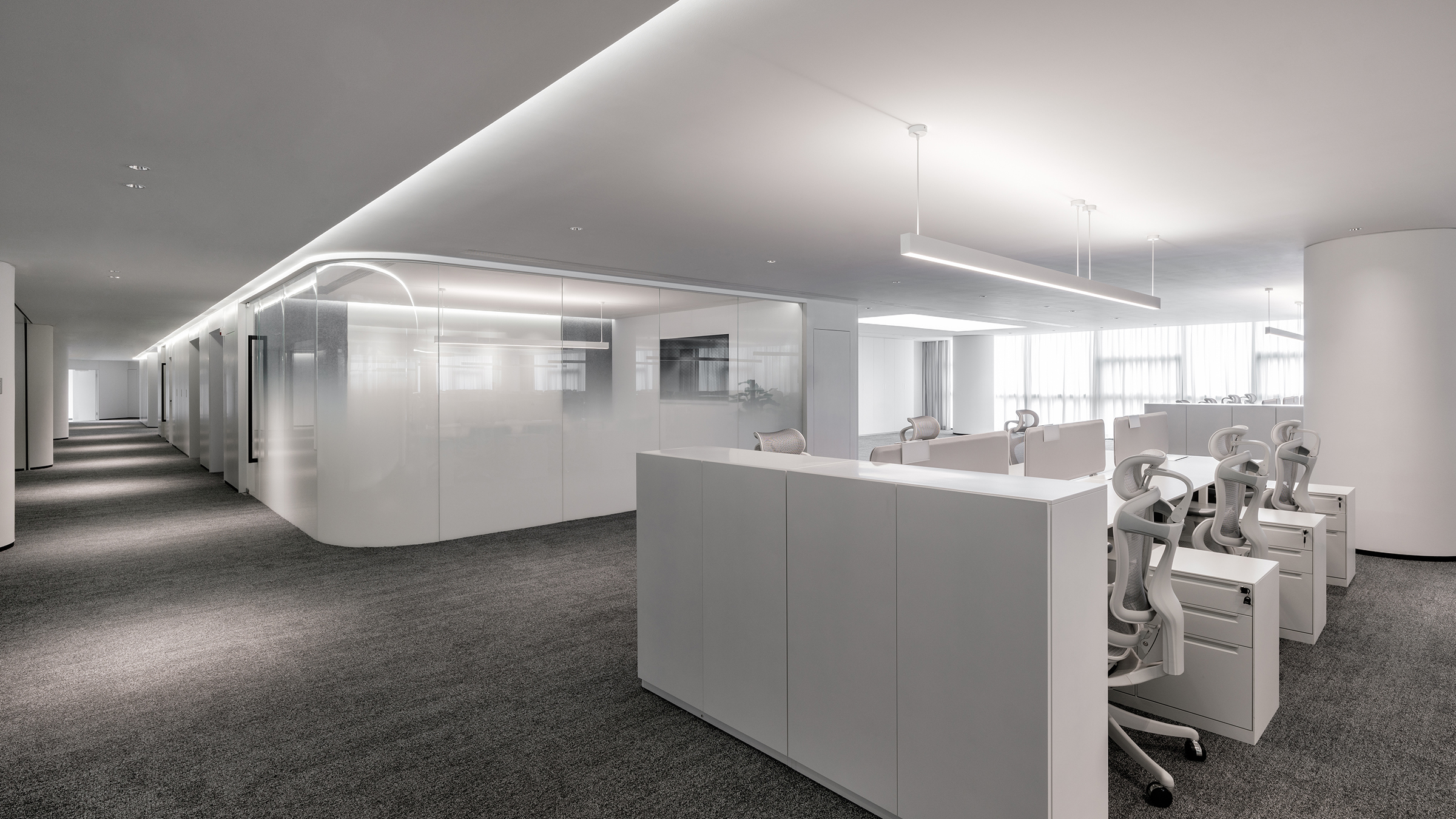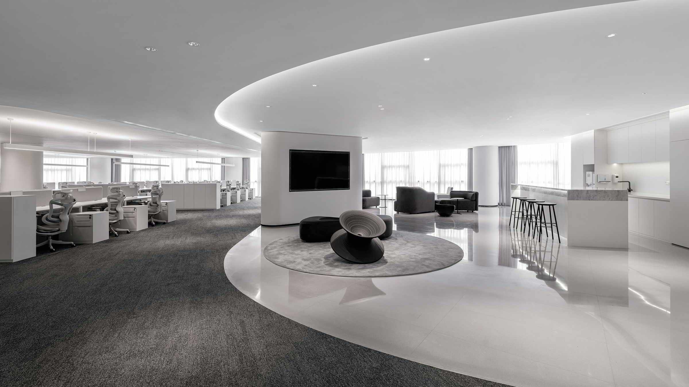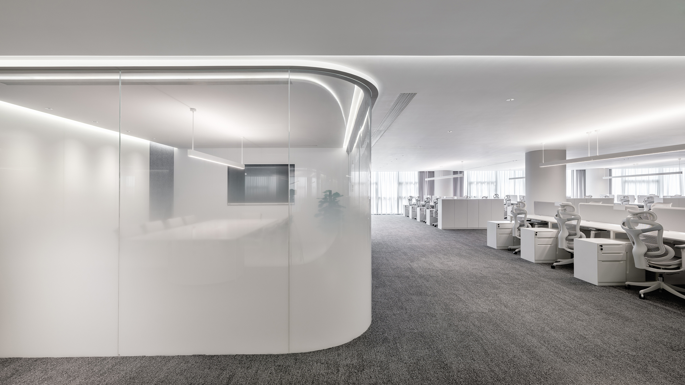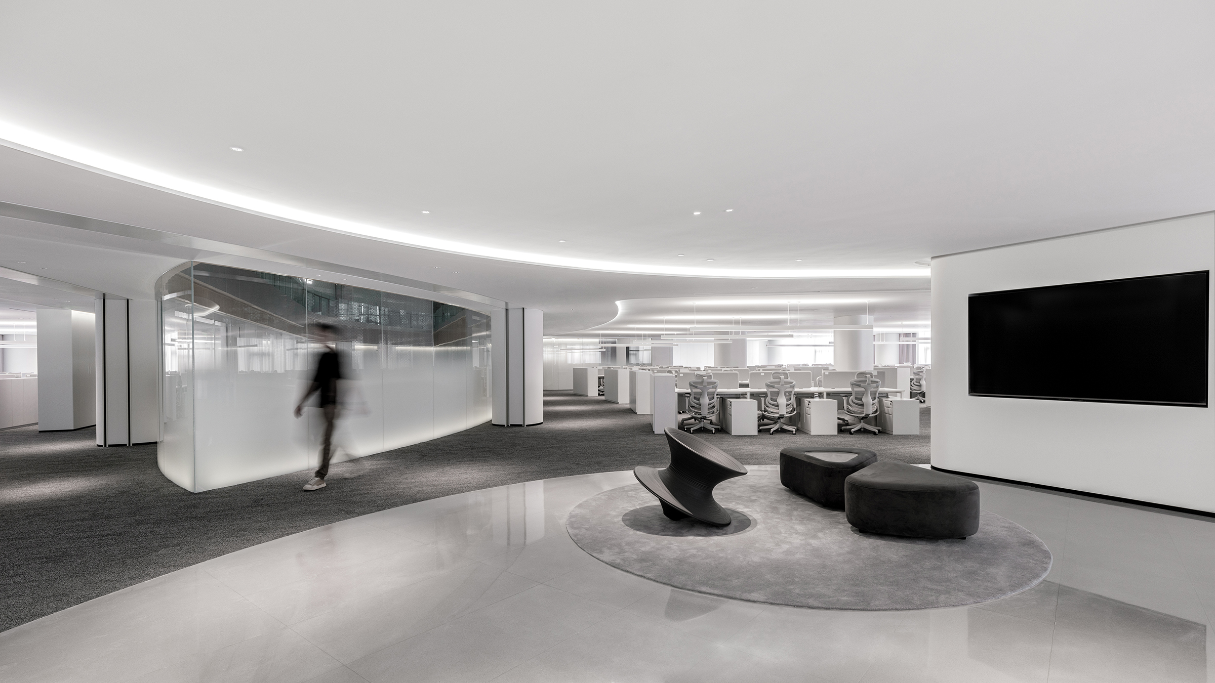 用户体验:作品投入使用后,用户普遍对办公环境的设计给予高度评价。空间的动线设计和视觉上的流畅感为员工提供了一个高效、舒适的工作环境。尤其是渐变玻璃和弧线设计为空间增添了现代感和动态感,员工普遍感受到自信与动力。公共区域的设计也获得了正面反馈,水吧、接待区和品牌宣传空间的结合提升了整体空间的功能性和品牌影响力。空调出风的创新设计更是解决了冷气不均匀的问题,为员工提供了舒适的温度环境。整体来看,项目成功地将品牌文化、空间功能和员工需求巧妙融合,获得了极好的用户体验和评价。
