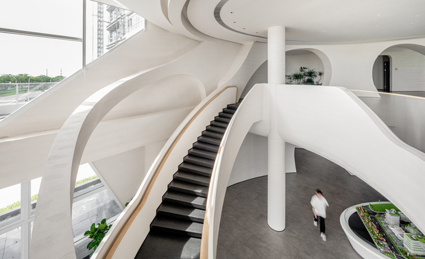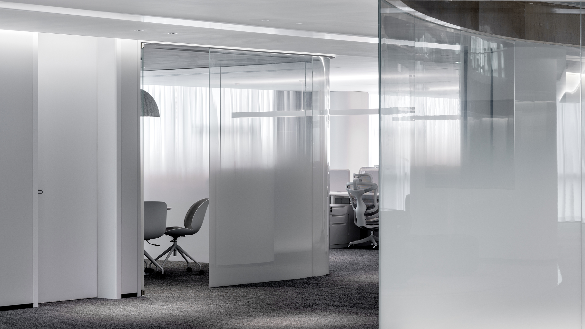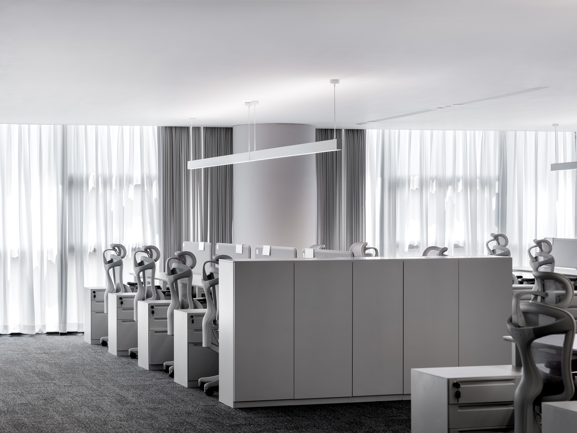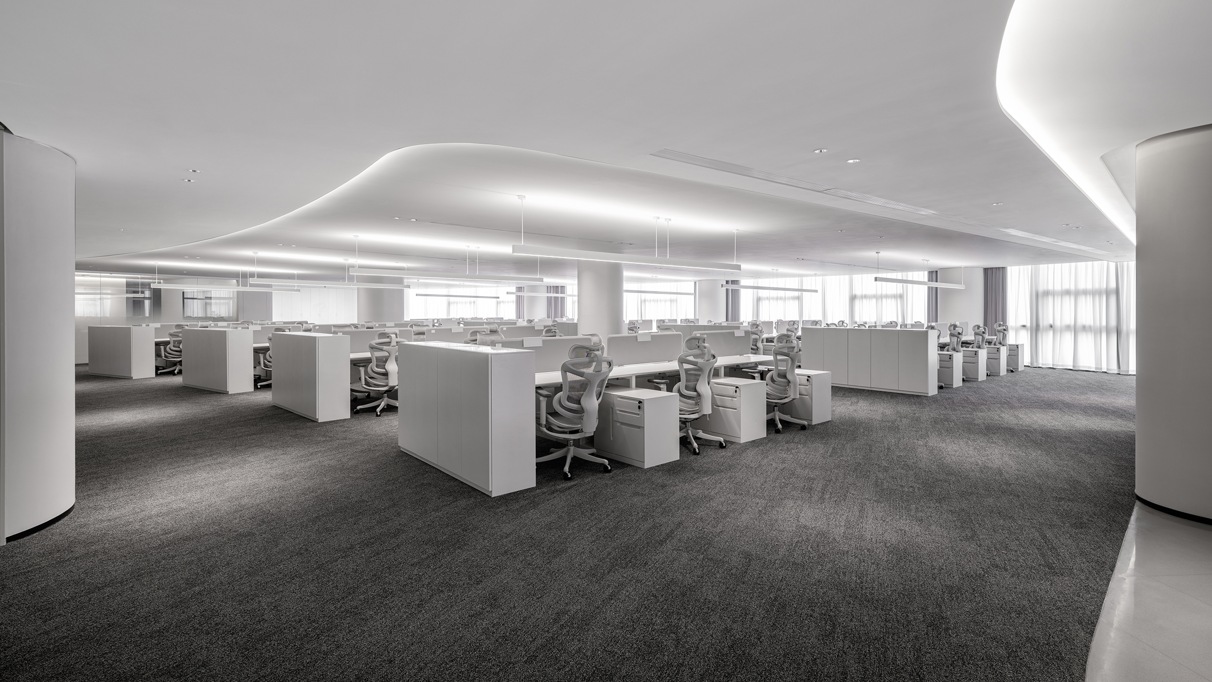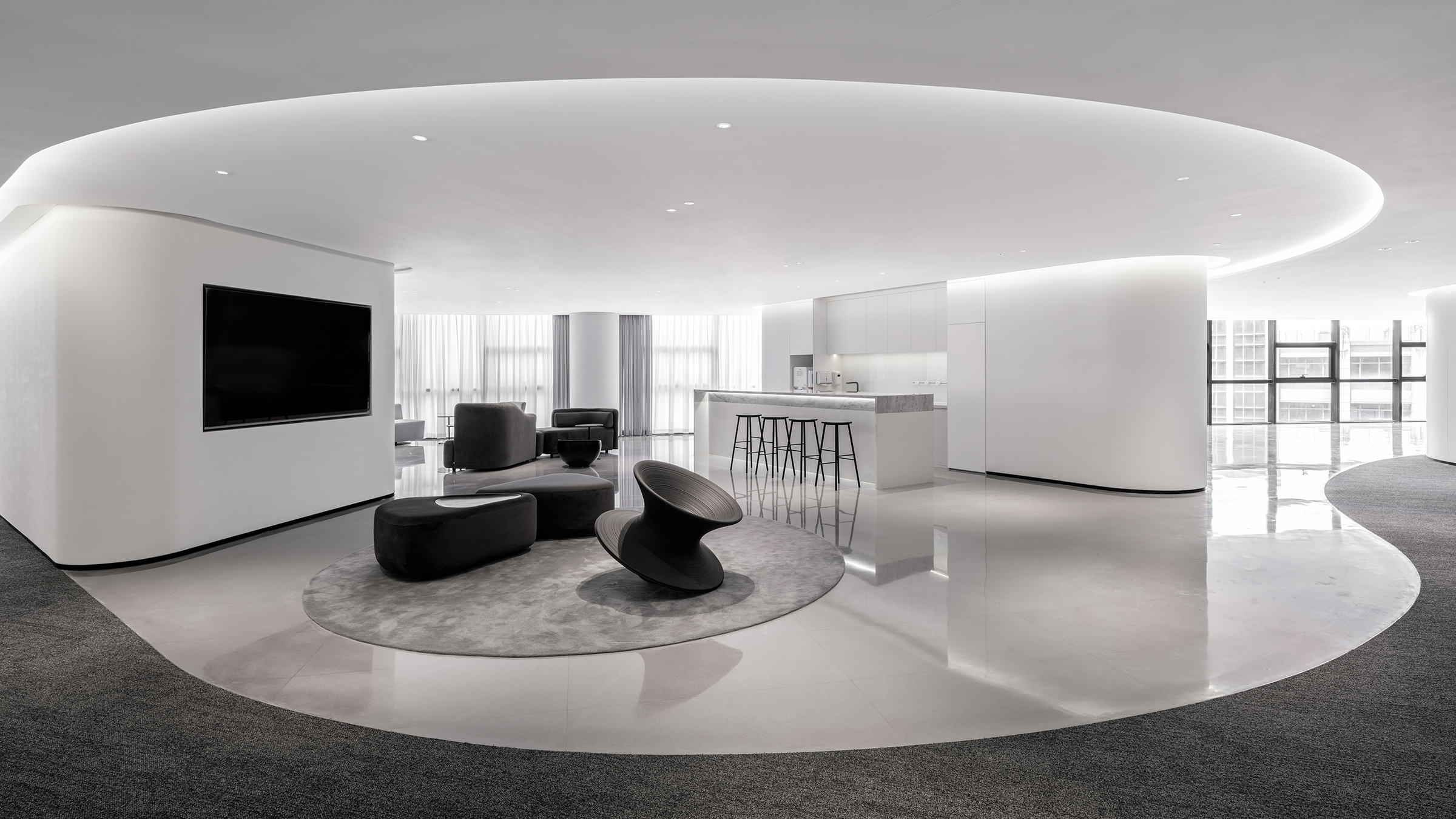 用户体验:作品投入使用后,用户普遍对办公环境的设计给予高度评价。空间的动线设计和视觉上的流畅感为员工提供了一个高效、舒适的工作环境。尤其是渐变玻璃和弧线设计为空间增添了现代感和动态感,员工普遍感受到自信与动力。公共区域的设计也获得了正面反馈,水吧、接待区和品牌宣传空间的结合提升了整体空间的功能性和品牌影响力。空调出风的创新设计更是解决了冷气不均匀的问题,为员工提供了舒适的温度环境。整体来看,项目成功地将品牌文化、空间功能和员工需求巧妙融合,获得了极好的用户体验和评价。