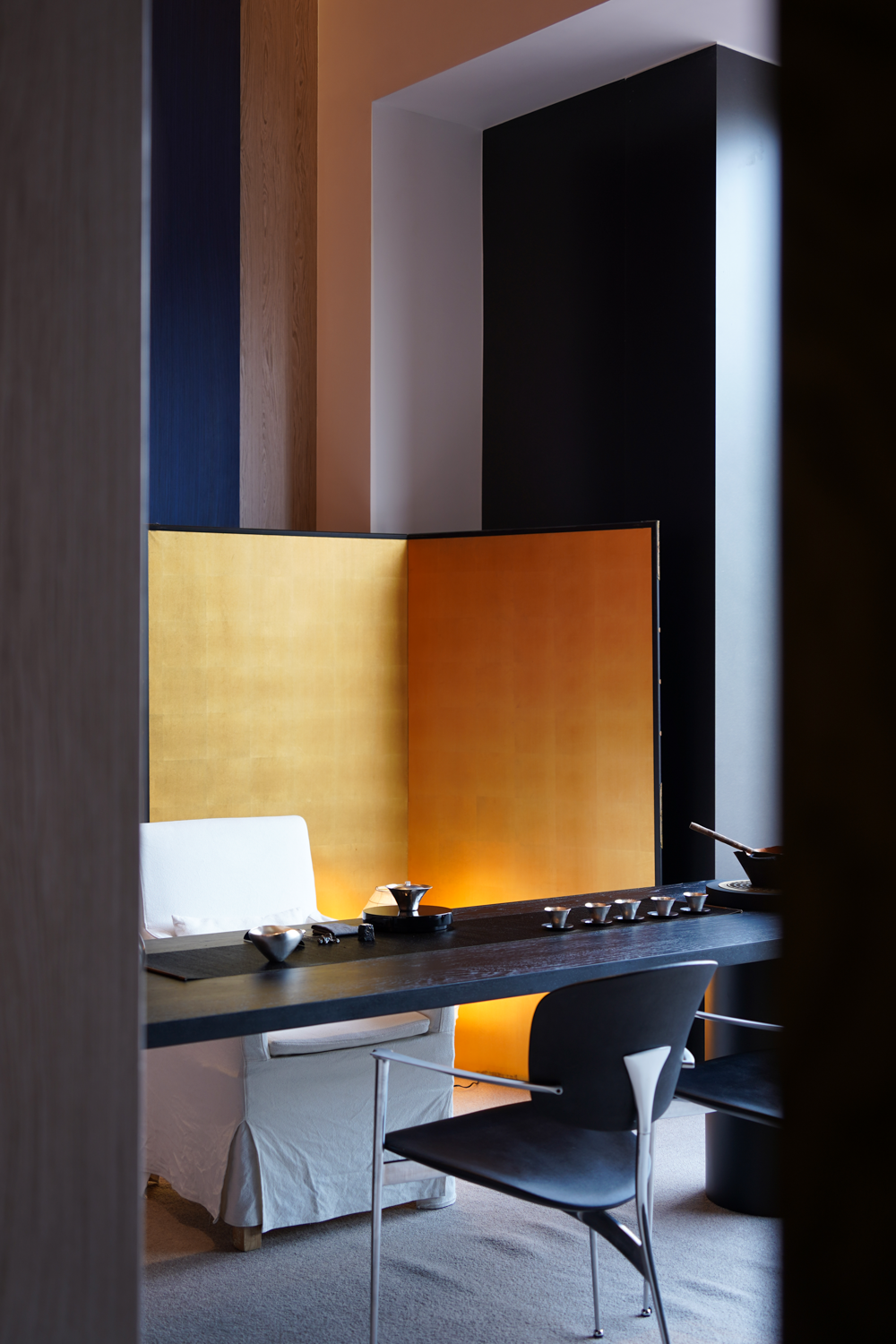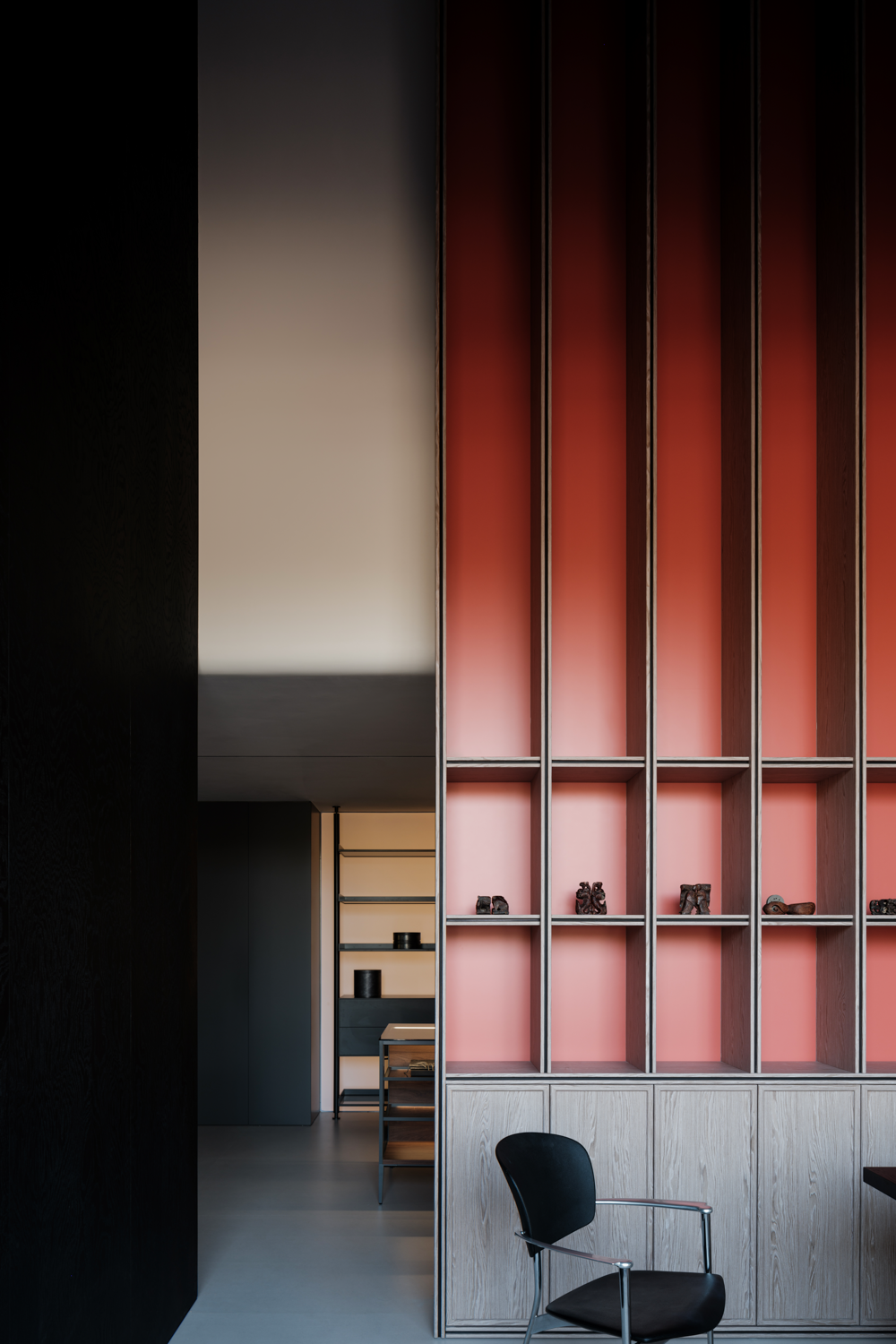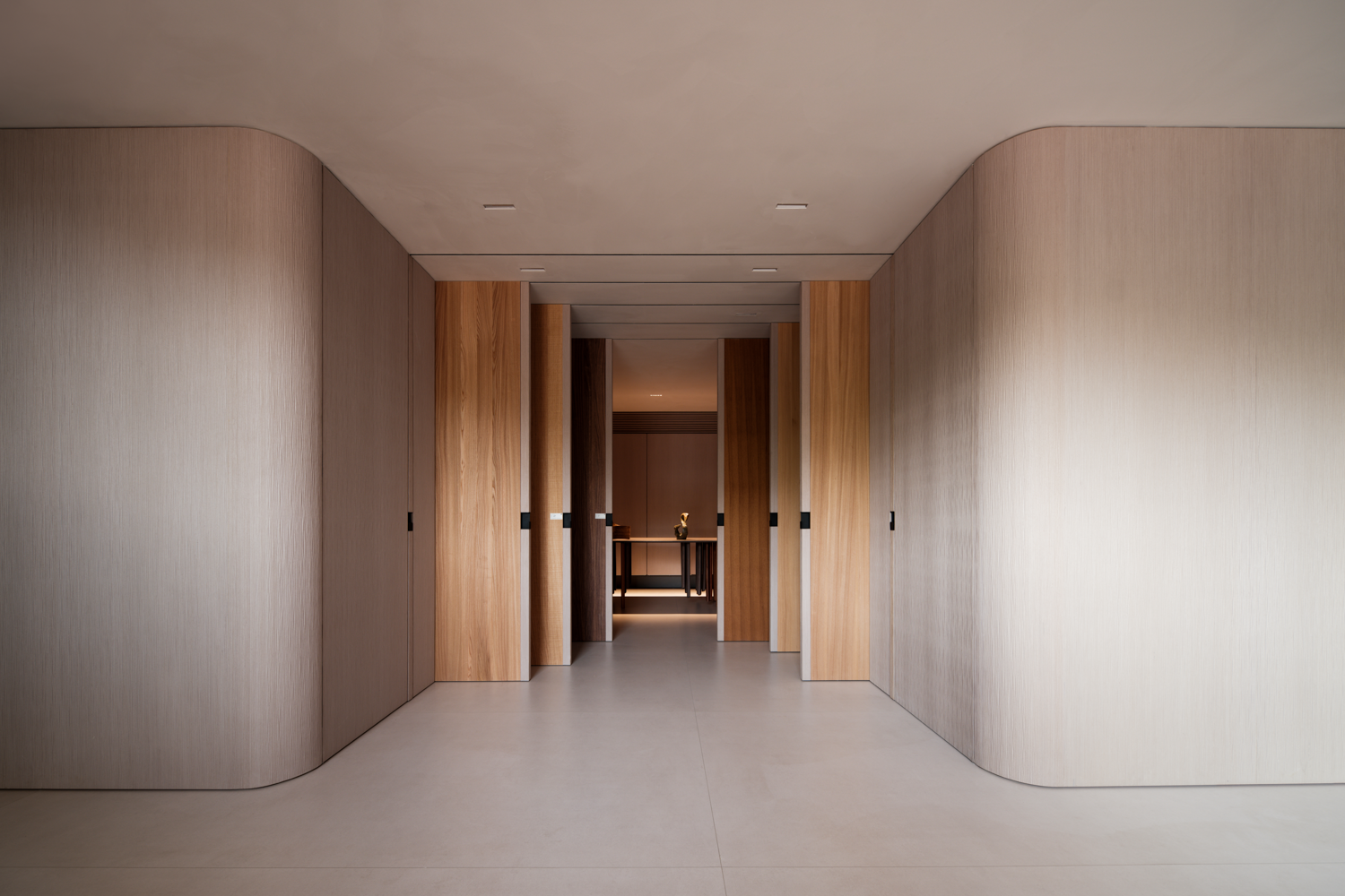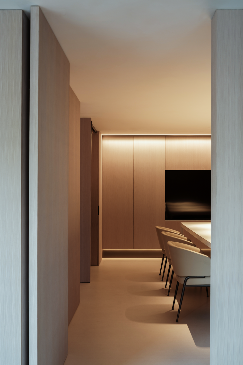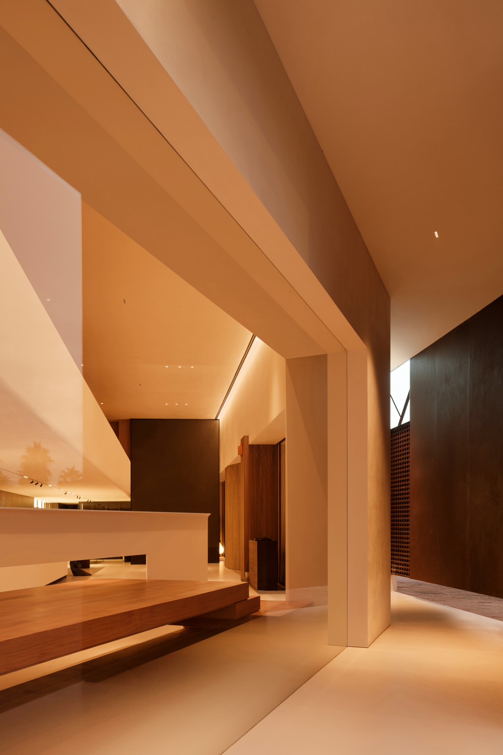 我们希望空间是简约的,同时也是东方内敛的。通过“内向化”展陈处理,将产品隐藏在柜门之中,墙体之内,只在需要被选择的时候呈现给特定的消费者,不影响日常的体验感受。