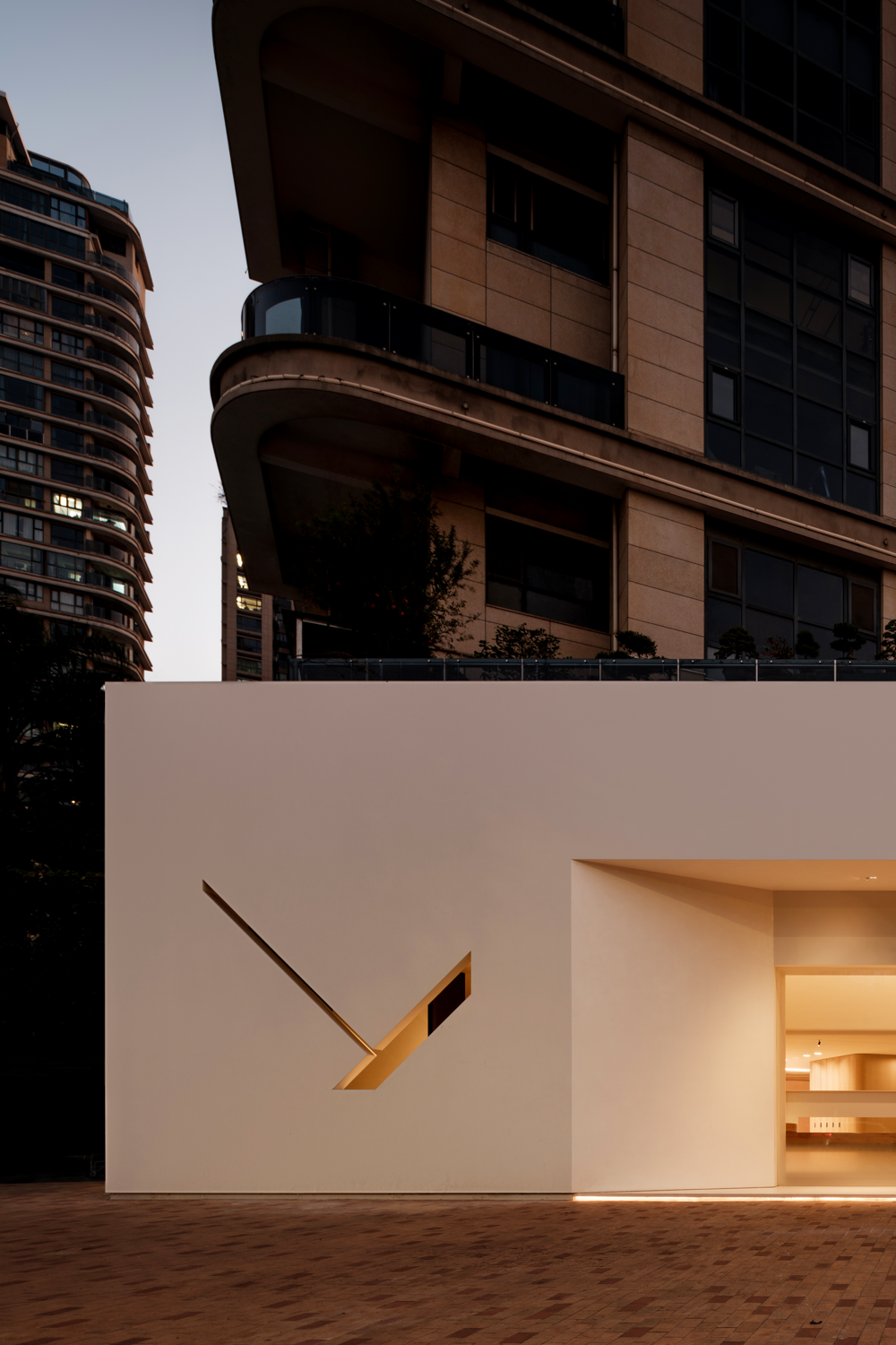 随着狭窄但高挑的金属廊道入内,摒绝了外界熙攘穿梭的车辆,达成情绪转变的目的,原本正对瓯江路的入口被优化至侧面,减少行人对自动门的干扰。