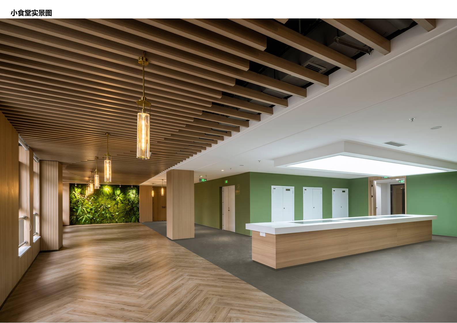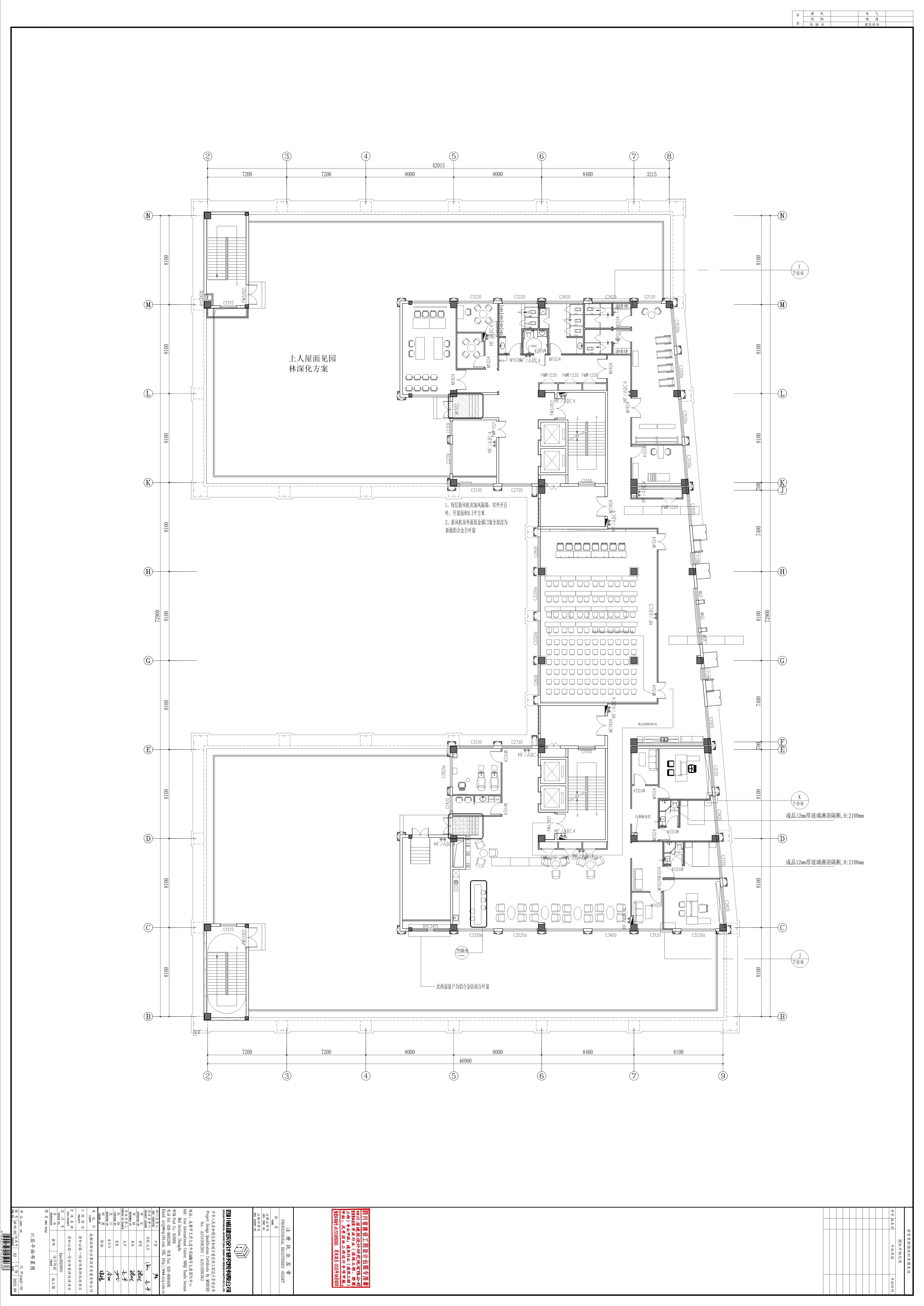 空间意境:项目有良好的采光和景观面,顶层露台和中庭都做了园林设计,满足员工及来访群众休息和等候的惬意空间。