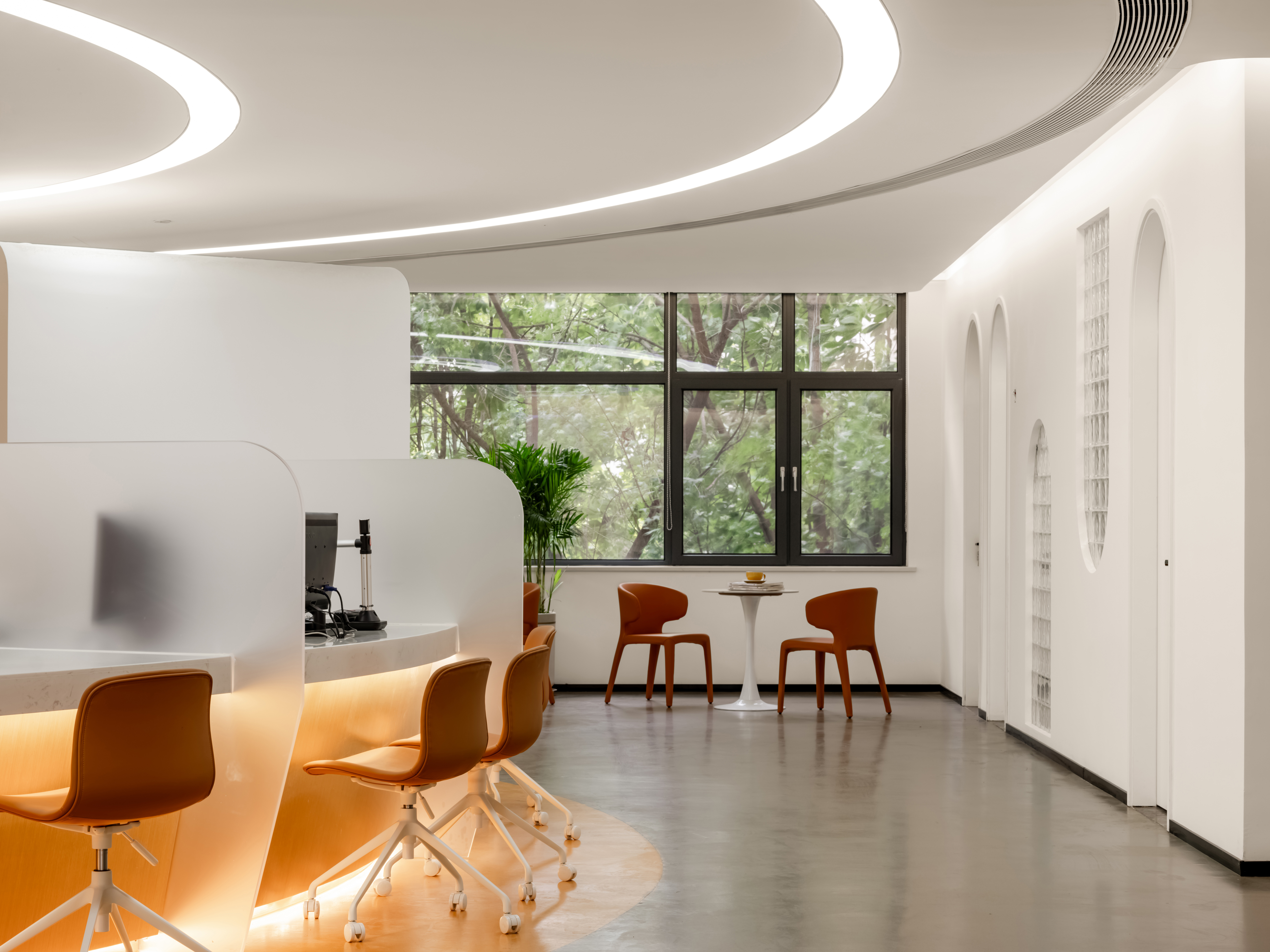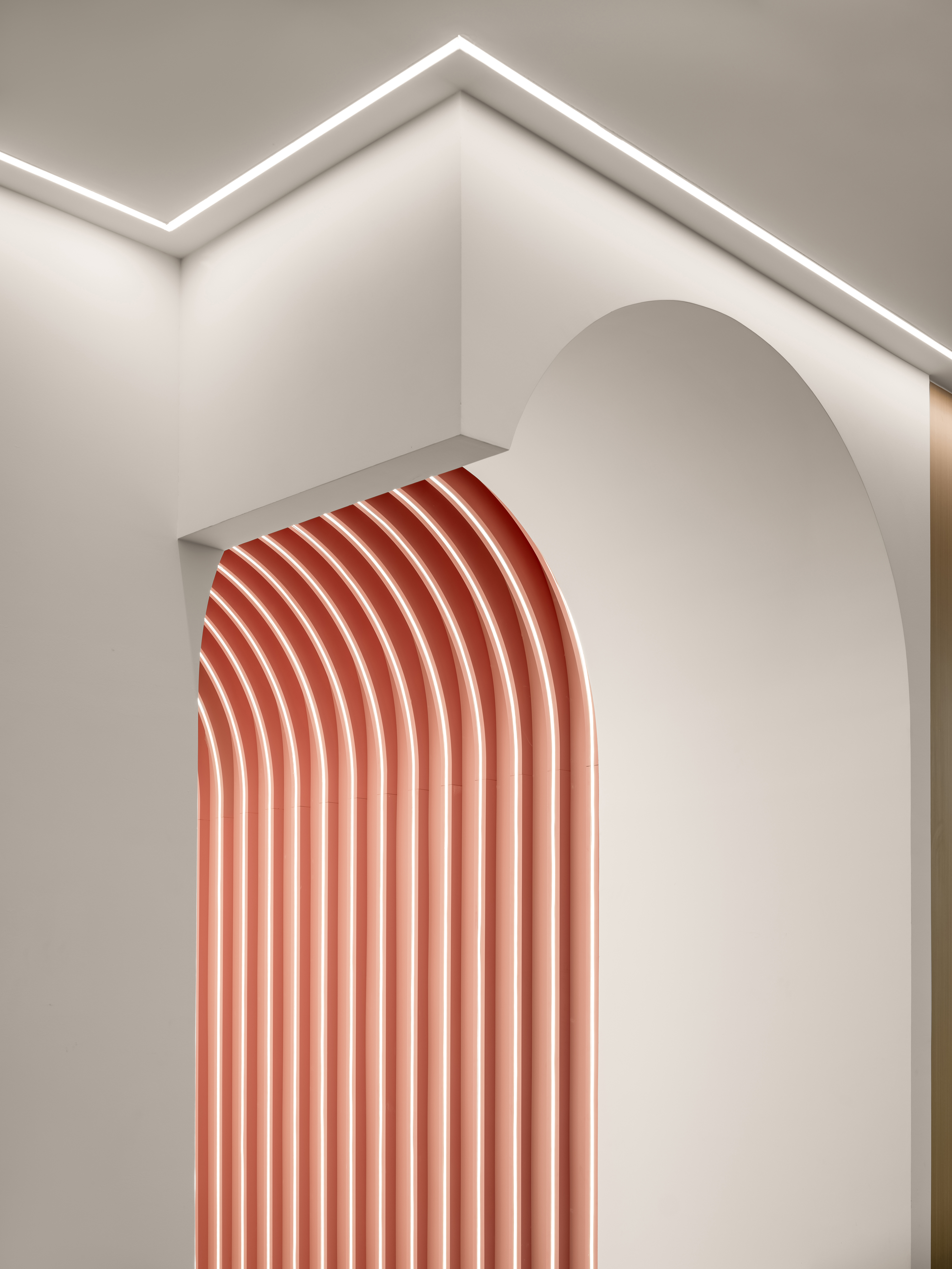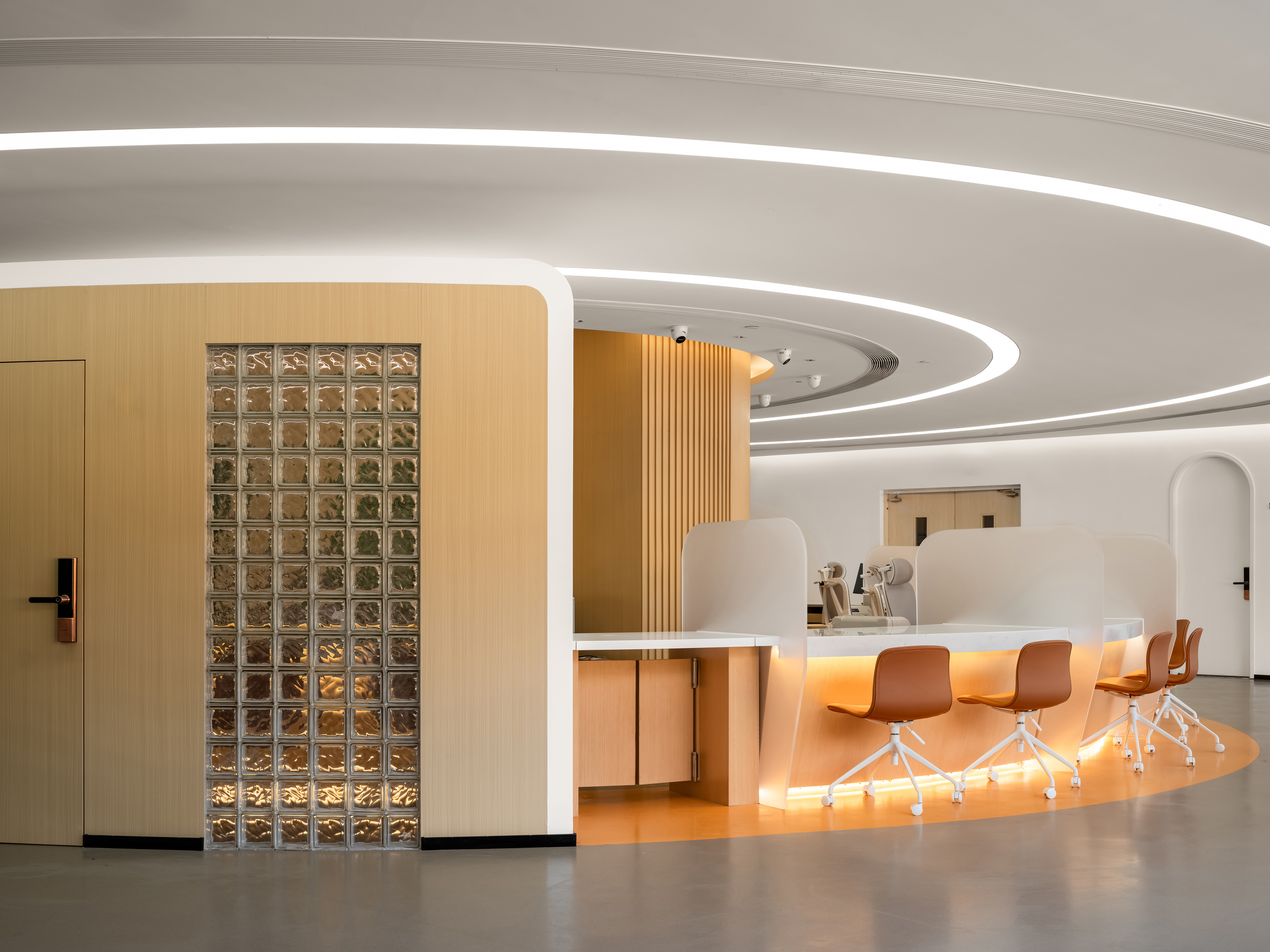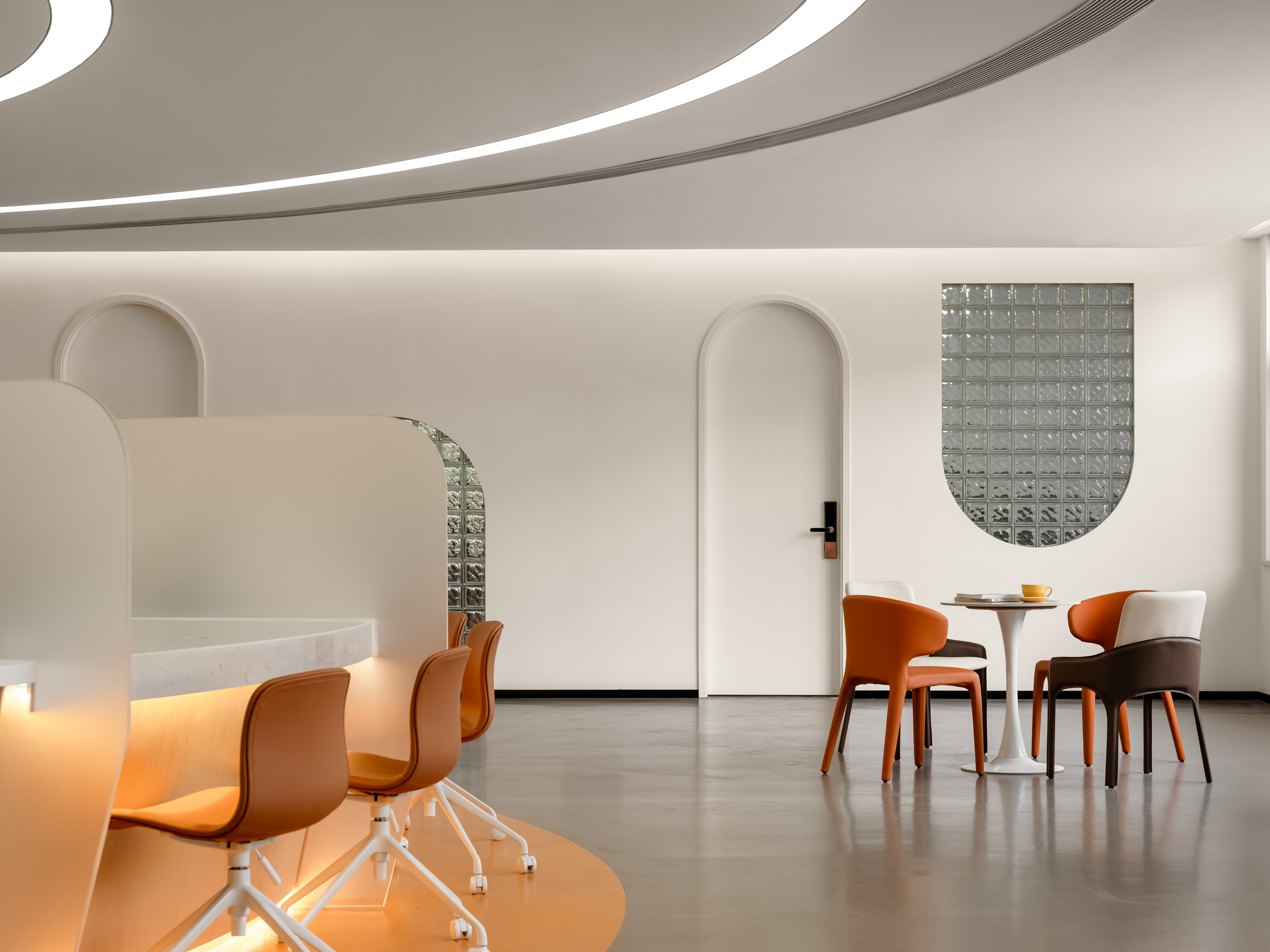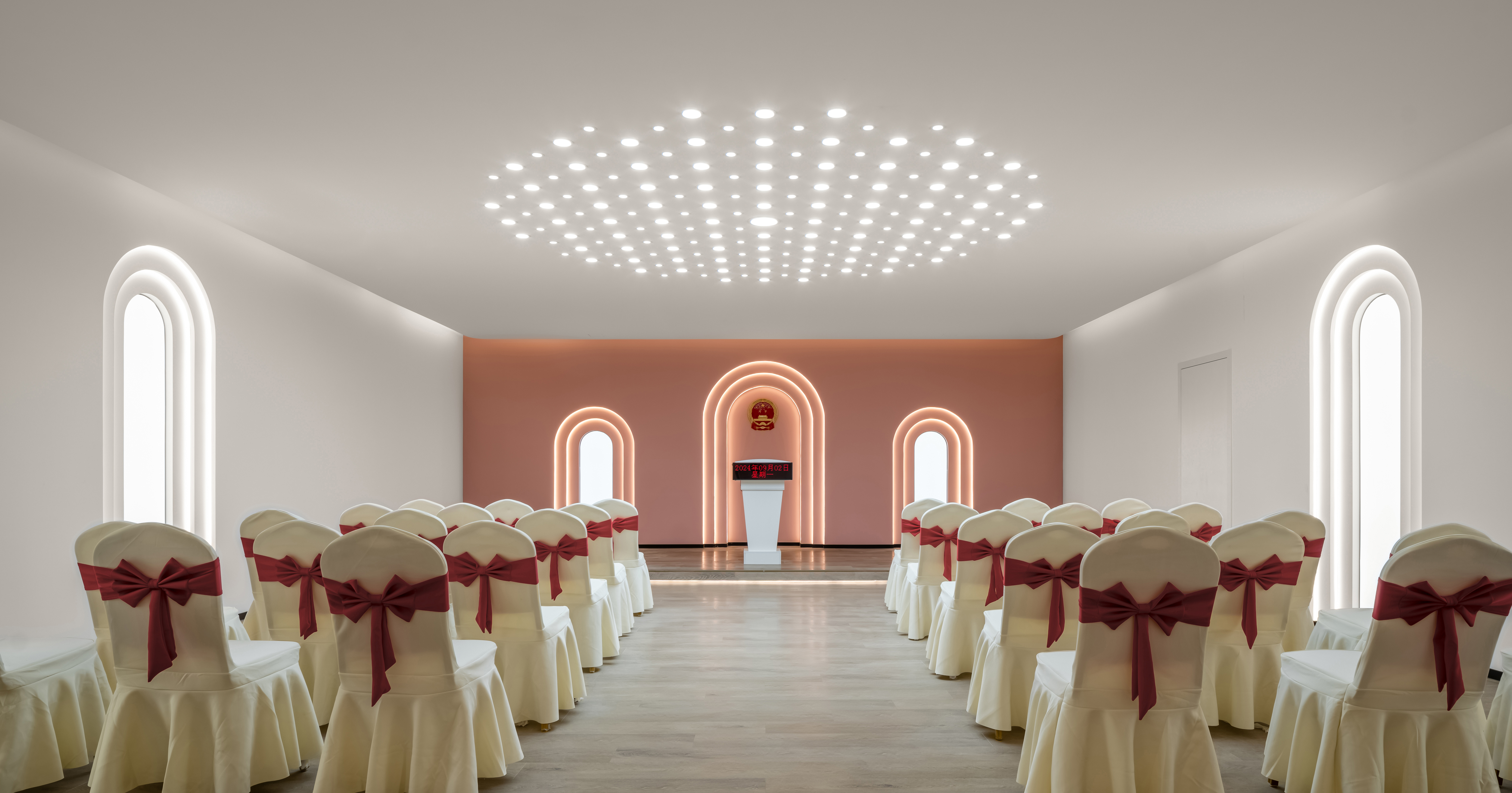 通过现代设计语言,优化空间布局,使得婚姻登记处既具有现代感又不失庄重。拱门的连续排列,不仅增强了视觉的纵深感,也为每一位来访者提供了心理上的过渡空间,象征着从婚礼的庆典到婚后生活的无缝连接。