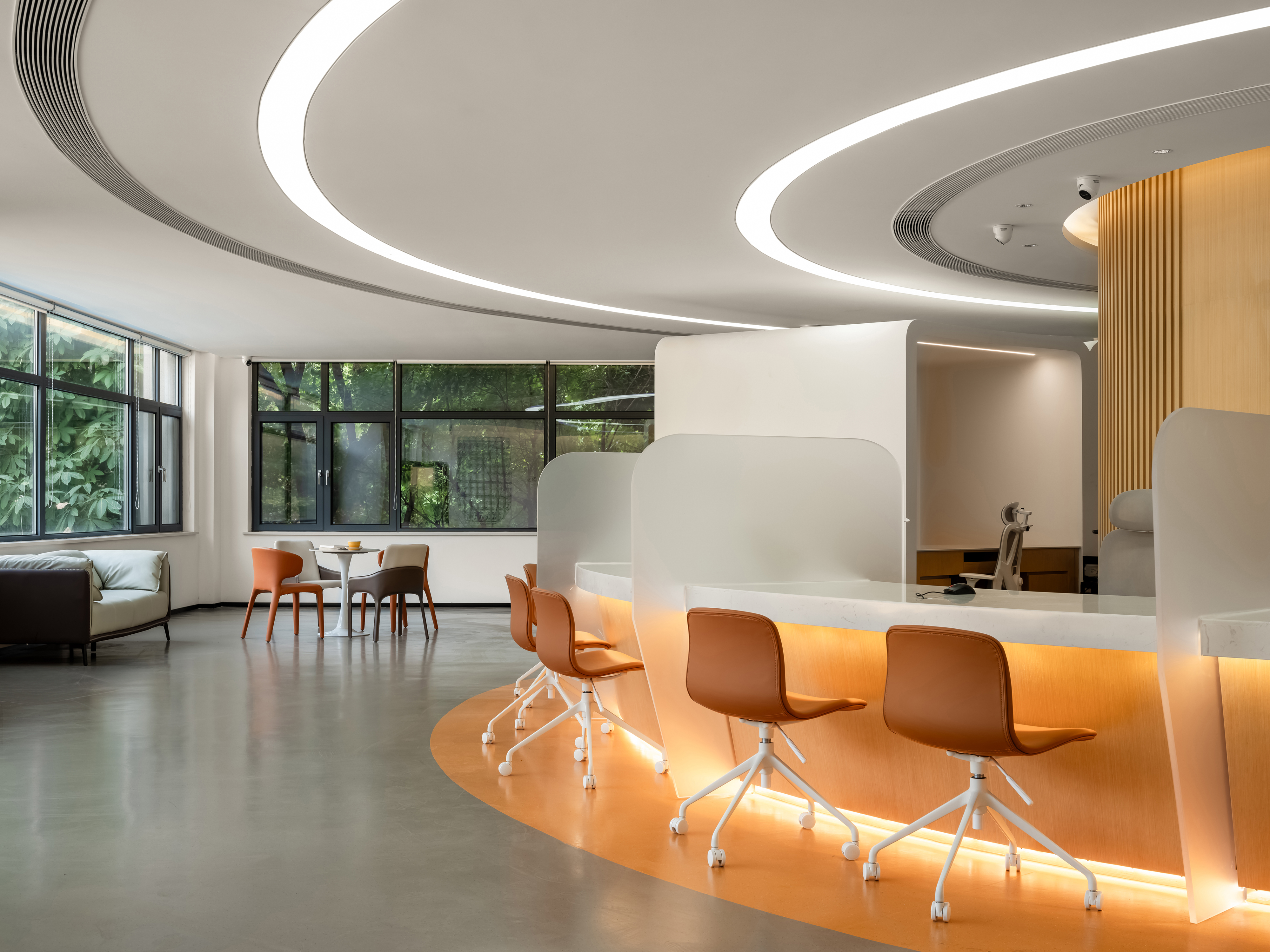 设计选材:整合现代智能技术,如智能叫号系统、自助登记设备等,提升服务效率和用户体验。使用环保经济材料和节能技术,以实现可持续发展的设计目标。