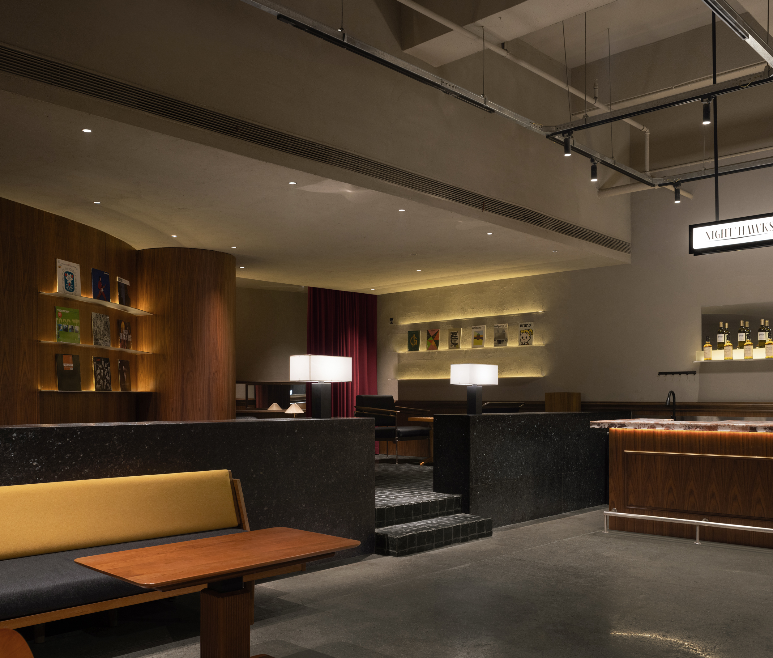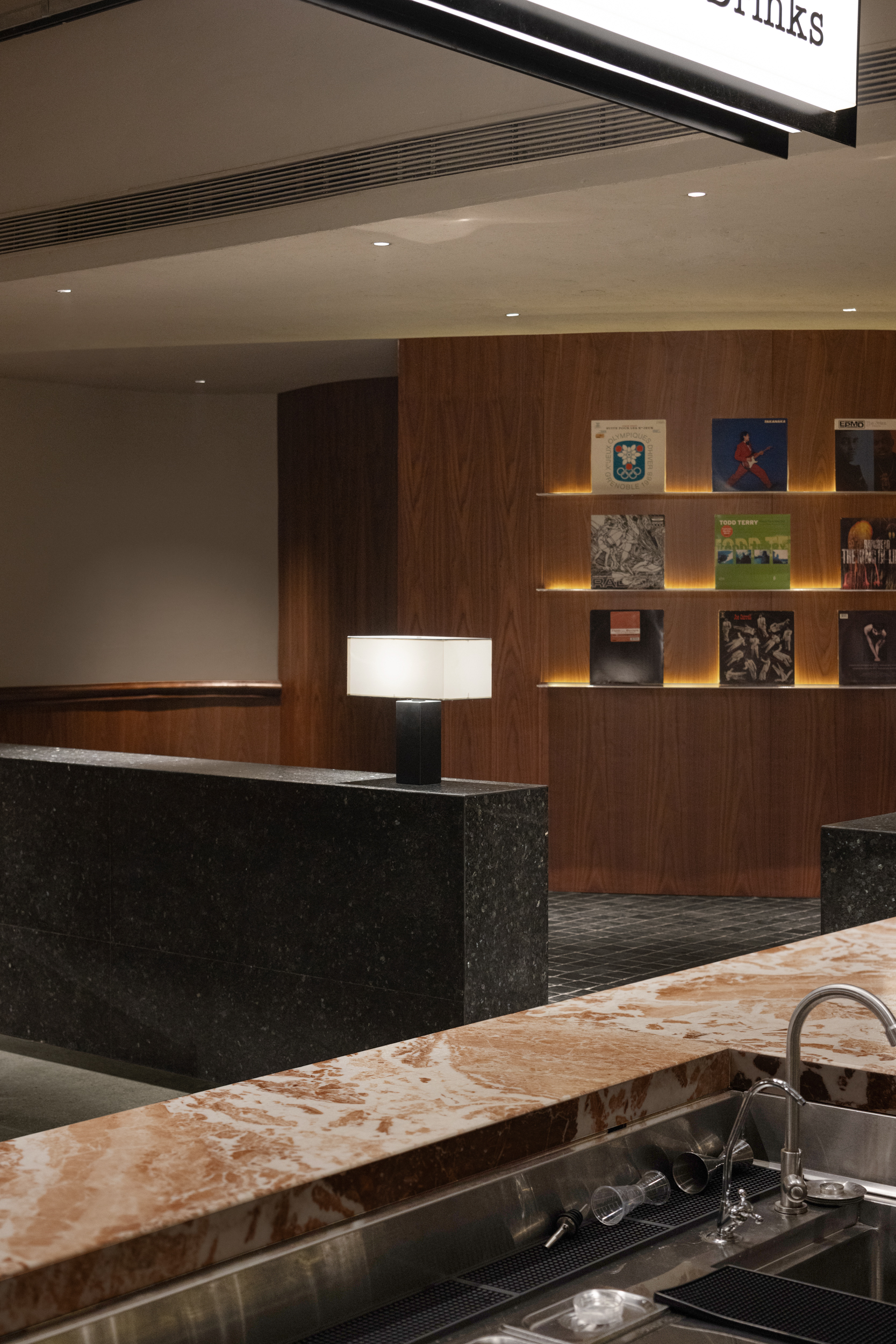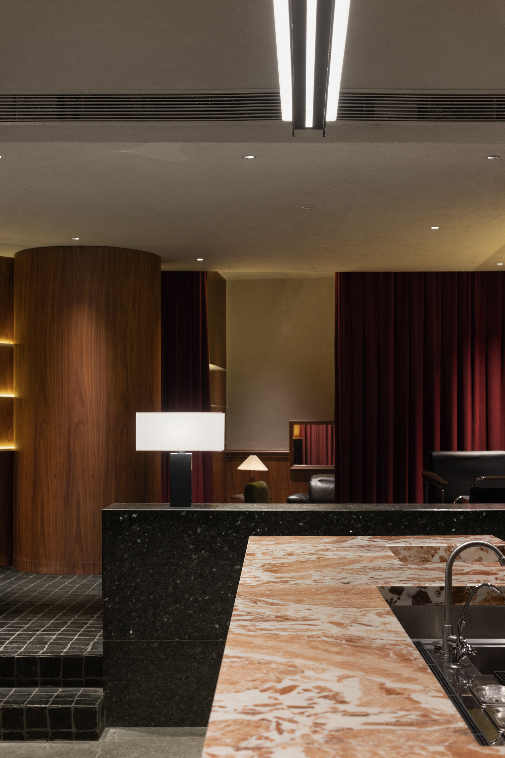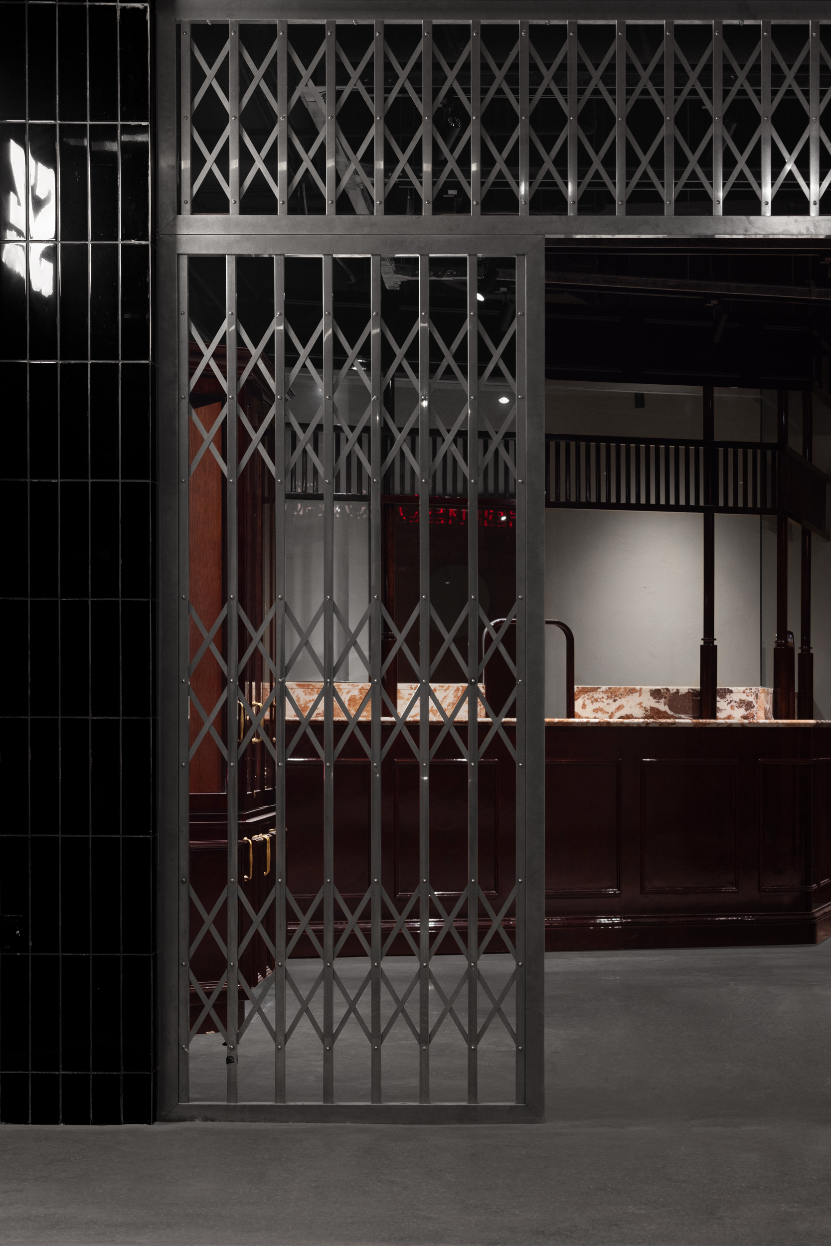 设计选材:在材料选用上,设计师注重环保与可持续性,运用了复古文化砖、氧化黄铜五金、铝型材质等具有复古感的元素,同时搭配现代感十足的不锈钢、铝框玻璃等材料,展现出历史与未来的完美结合。利用金属氧化、镜面反射和石材等具有耐用性和可回收性的材料,既符合环保标准,又有效控制了项目的成本。此外,设计选用了能反射光线的材料,使空间在低光条件下仍能保持活力和吸引力。