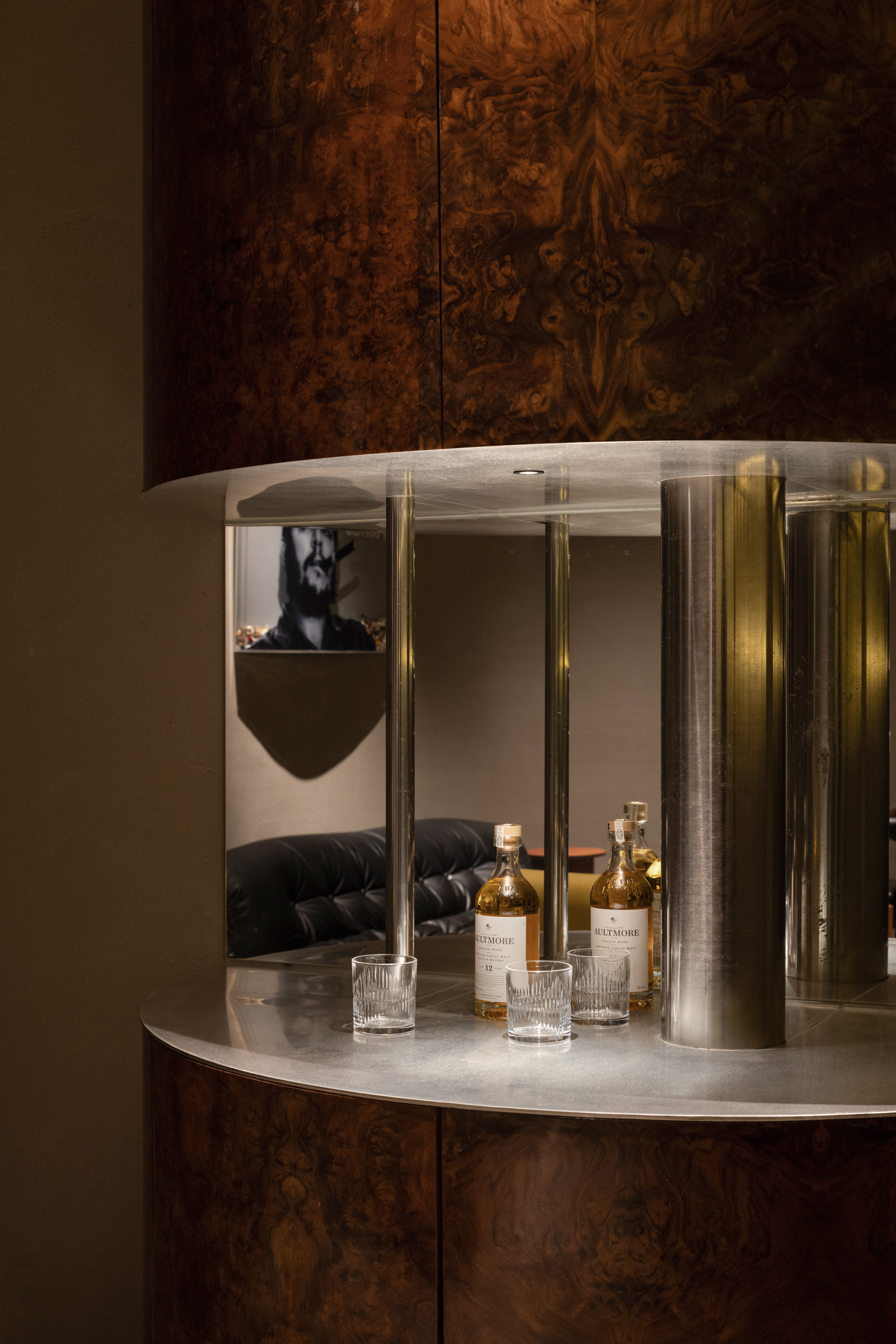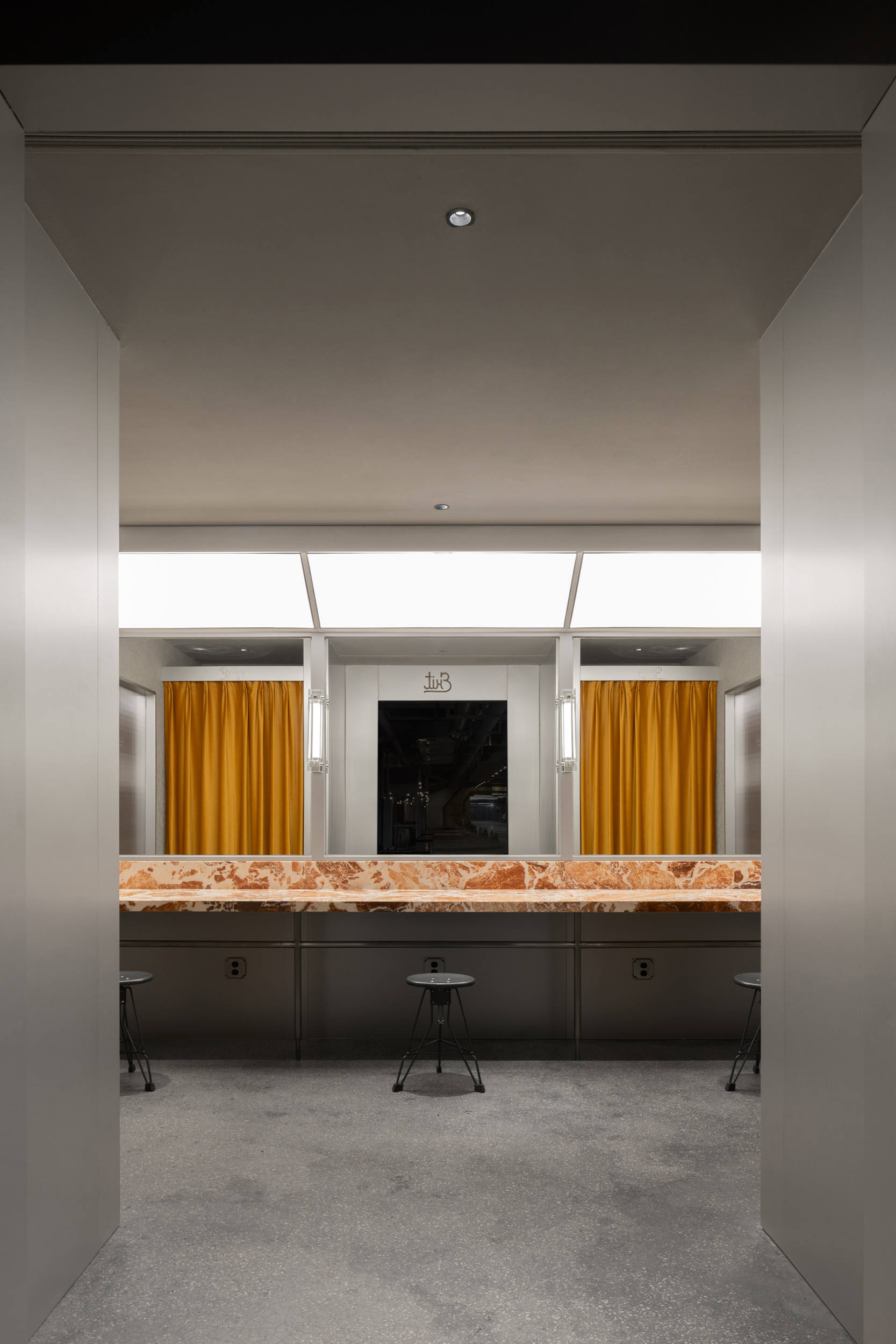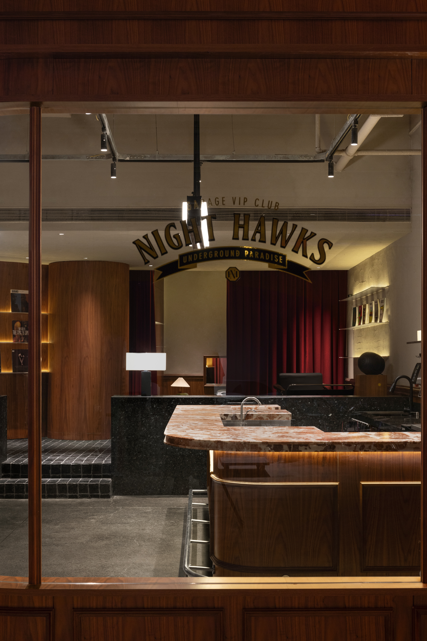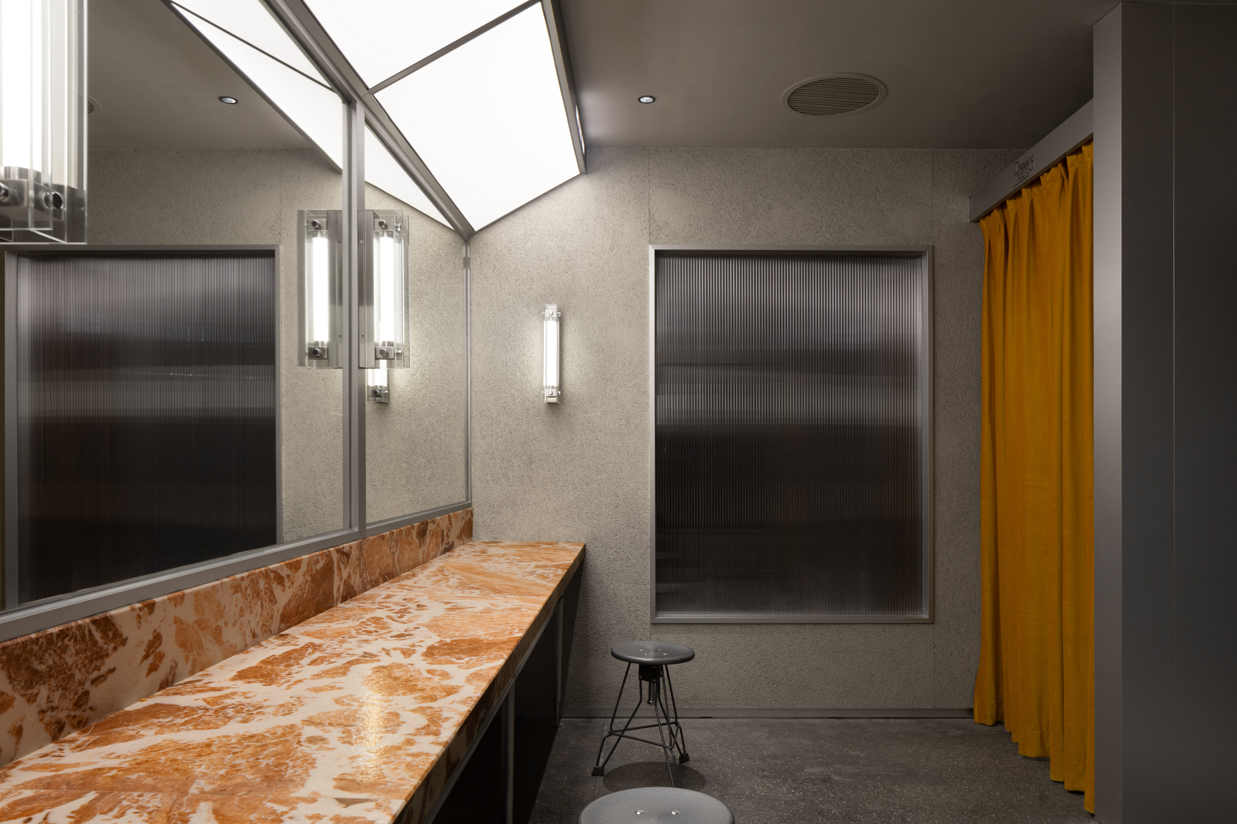 设计选材:在材料选用上,设计师注重环保与可持续性,运用了复古文化砖、氧化黄铜五金、铝型材质等具有复古感的元素,同时搭配现代感十足的不锈钢、铝框玻璃等材料,展现出历史与未来的完美结合。利用金属氧化、镜面反射和石材等具有耐用性和可回收性的材料,既符合环保标准,又有效控制了项目的成本。此外,设计选用了能反射光线的材料,使空间在低光条件下仍能保持活力和吸引力。