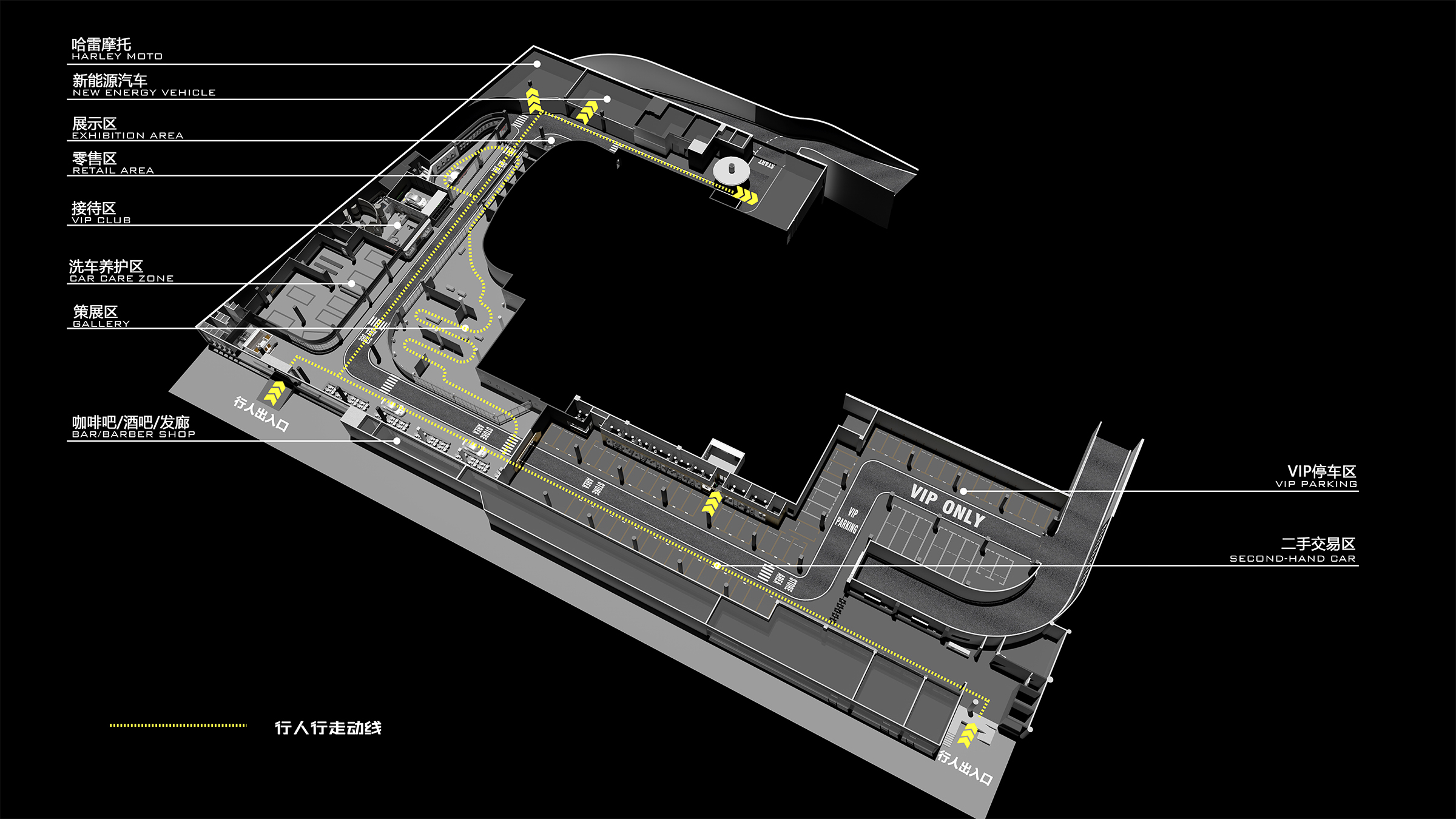 项目定位:超级车库是大湾区首个结合复古车文化与现代汽车产业的综合体,旨在打造一个富有电影氛围的汽车交流和商业空间。设计突破传统车库的局限,通过复古与未来感的融合,为顾客提供一个集汽车展览、交易、改装、养护、文化交流为一体的沉浸式体验空间。项目不仅注重汽车产业本身,还体现出独特的生活方式与文化氛围,成为深圳这座年轻城市中一个充满创意和活力的文化新地标。