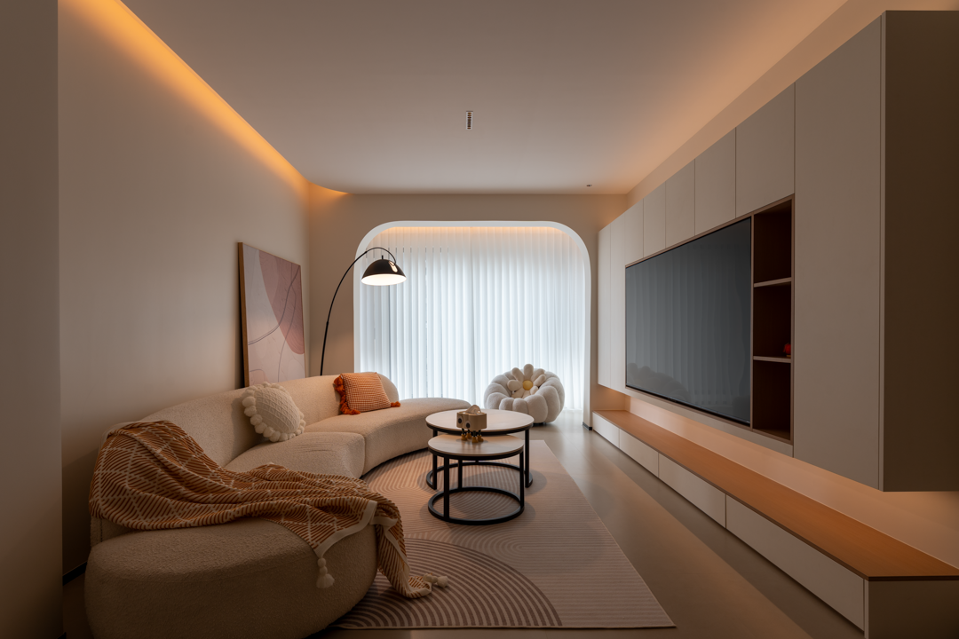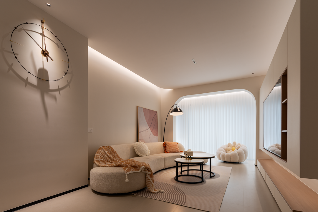 空间意境:根据女主人的喜好,打造软糯温柔、浪漫柔和的奶油风住宅。