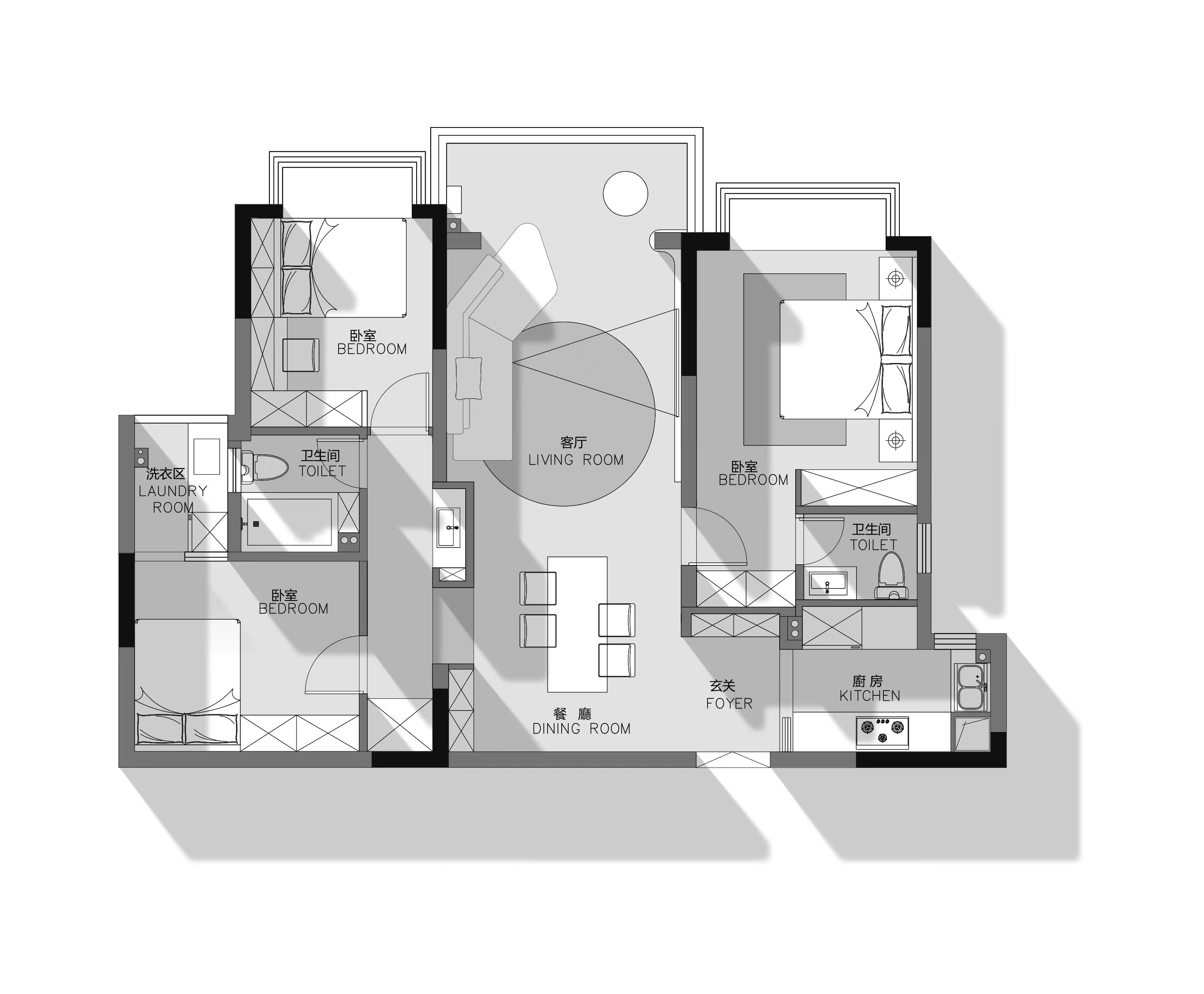 设计选材:软糯的羊羔绒沙发,85寸的大电视都是居者的爱。除此之外,餐桌可大有玄机,用餐时,它是一个陪家人、朋友度过三餐四季的餐桌。饭后,亲戚聚会或朋友聚餐时,它可摇身一变成为一个麻将桌,实现一桌多用。