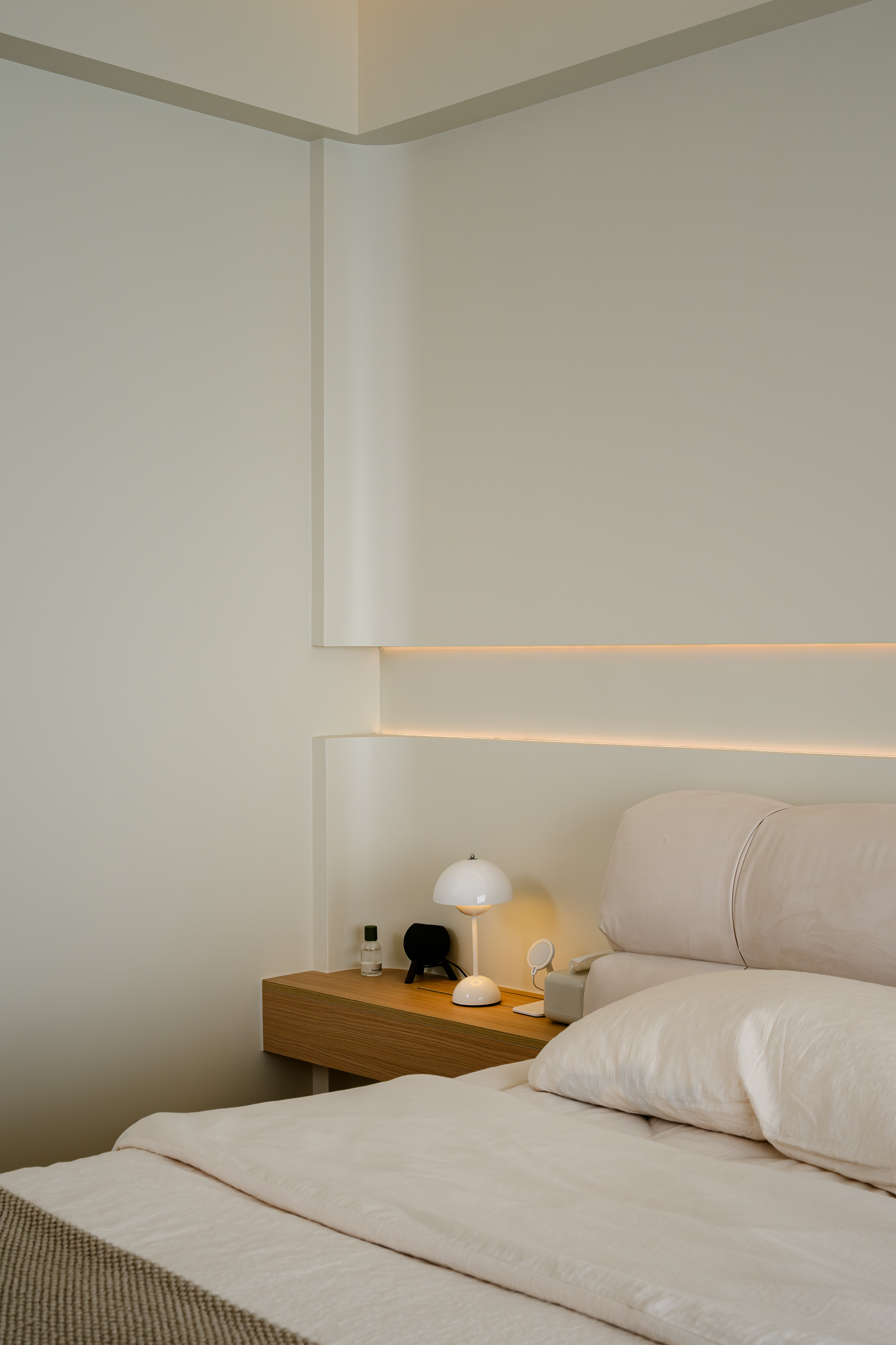 结合居者的生活习惯,我们对主卧空间做了重组和优化 ,采用环形设计,强调空间的整体性和连续性,一体化套间的卫生间设计,兼顾私密与便捷,尽显高级质感。