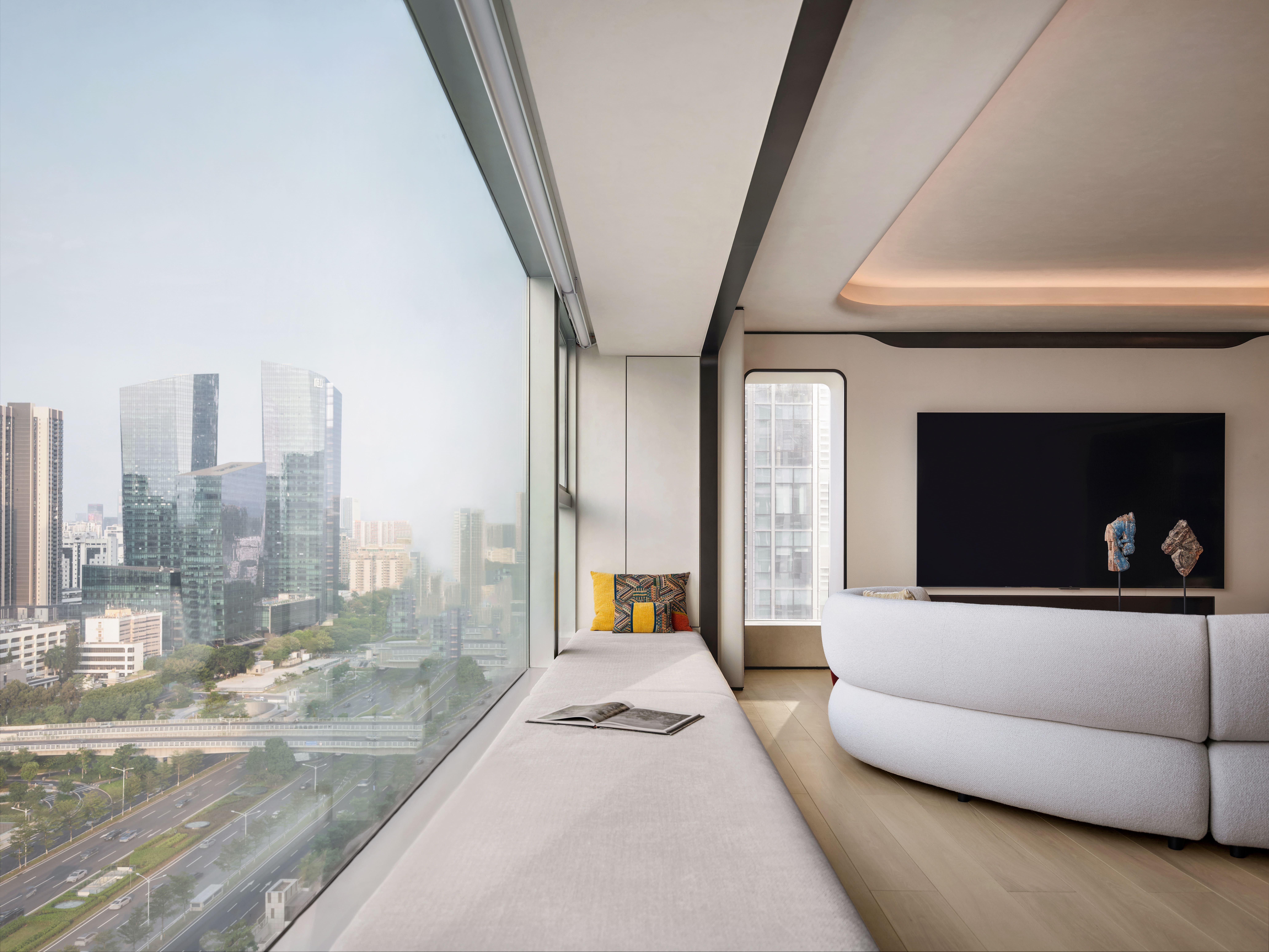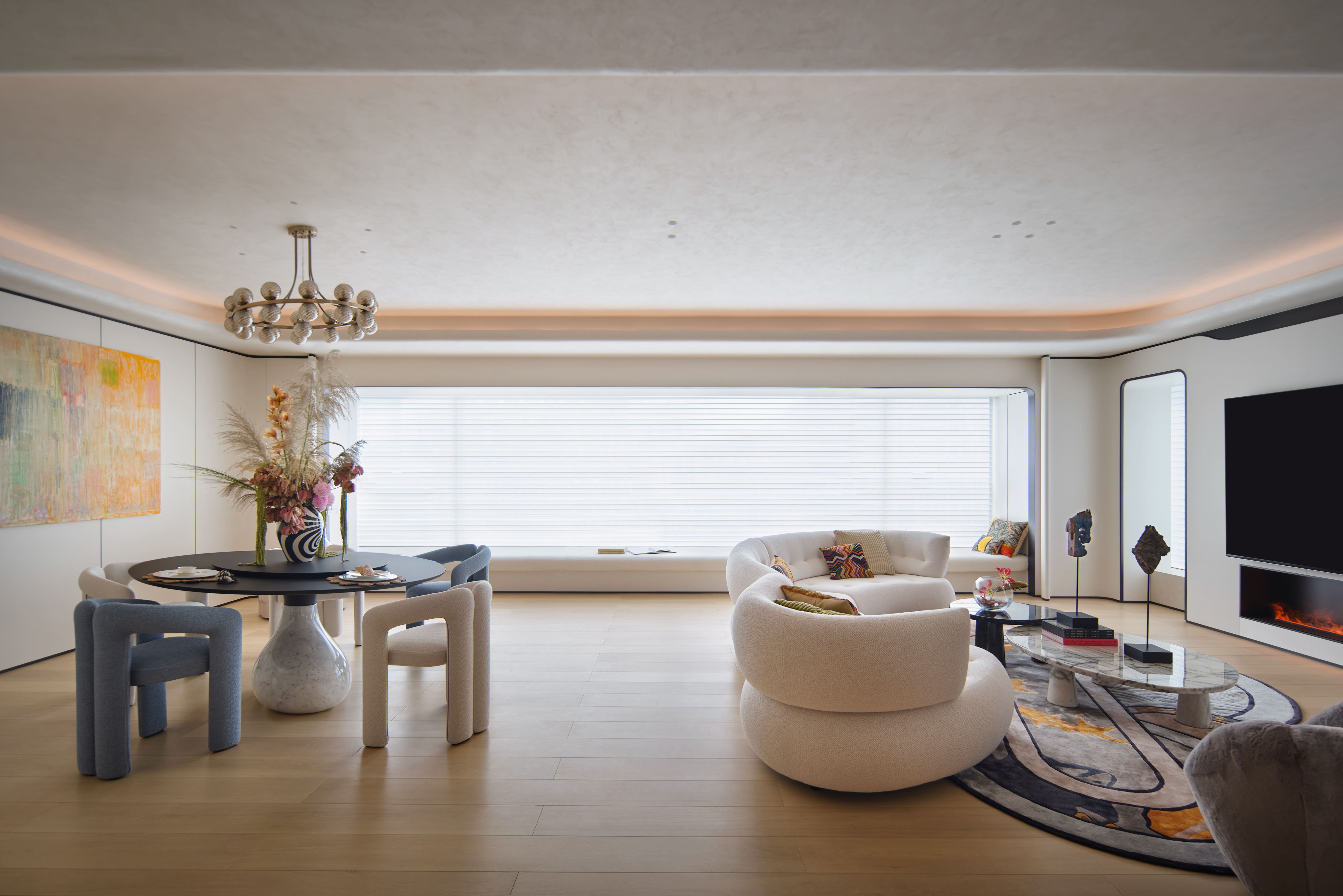 在城市的CBD中心,"优雅"与"舒适"被赋予了全新的生命,融游艇流线美学于空间,轻声低语着海滨城市的浪漫与自由;木之温润温暖了空间的每一个角落,容纳了四季更迭的自然温度,让家成为感知时间流转的容器。