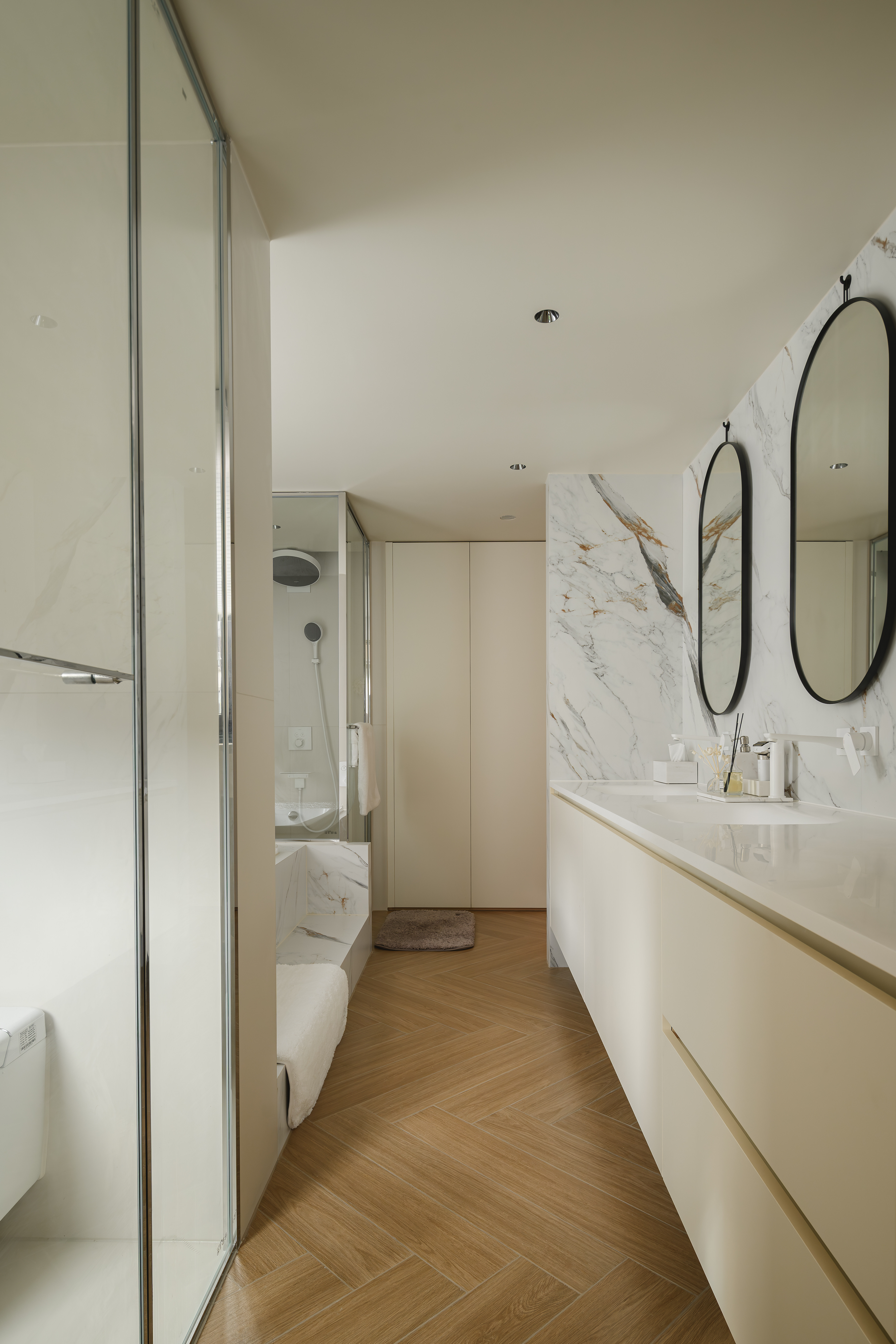 结合居者的生活习惯,我们对主卧空间做了重组和优化 ,采用环形设计,强调空间的整体性和连续性,一体化套间的卫生间设计,兼顾私密与便捷,尽显高级质感。