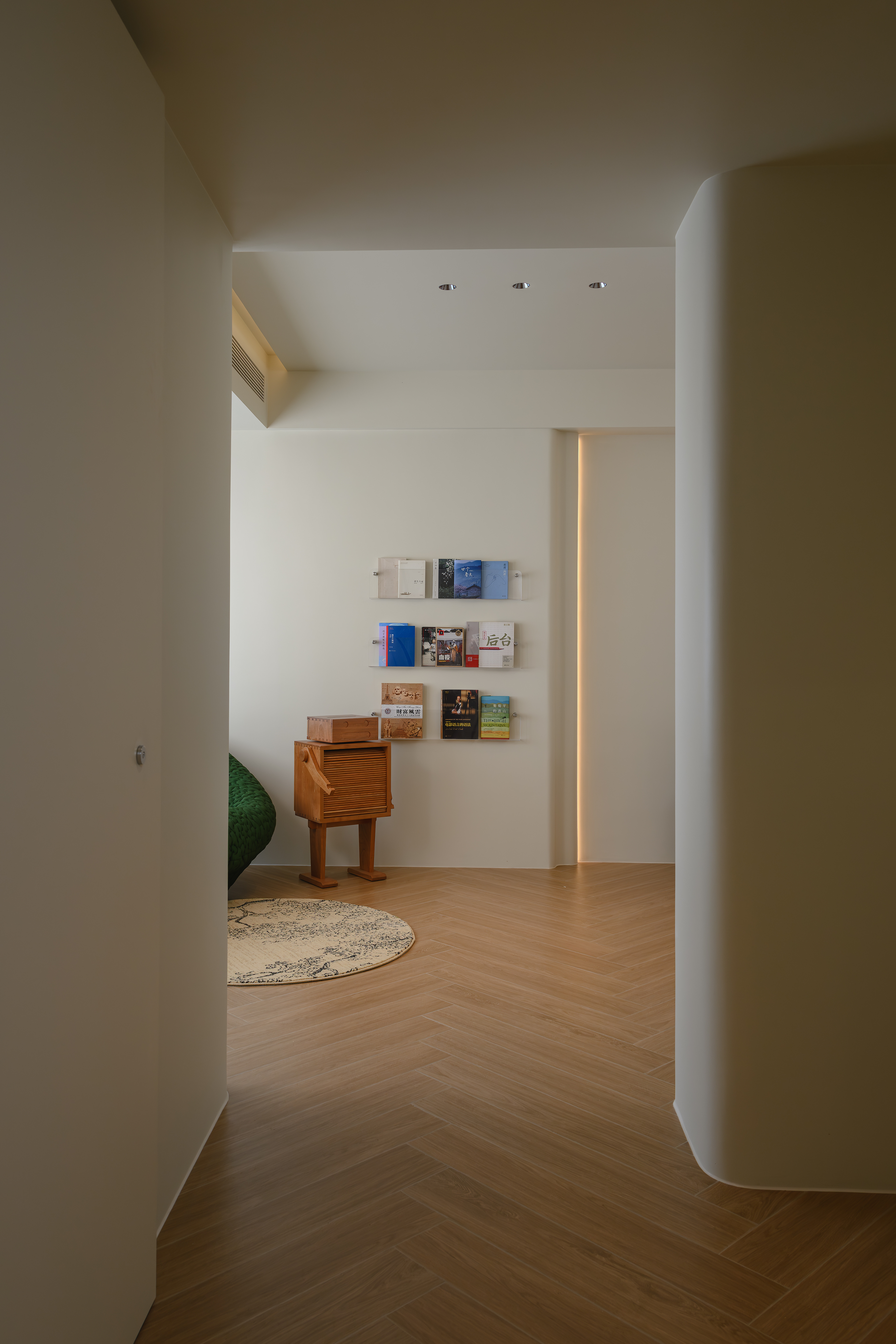 书房,作为小哥哥的专属领地,沉浸于一份难得的宁静与自在,目光所及都是他平日珍爱办公物件。我们为其特别定制的超长原木悬浮书桌,不仅是空间的焦点,更是灵感的源泉。当盛夏来临,窗外蝉鸣编织成自然的乐章,斑驳的阳光轻柔地洒落,每一刻都显得格外珍贵与和谐。