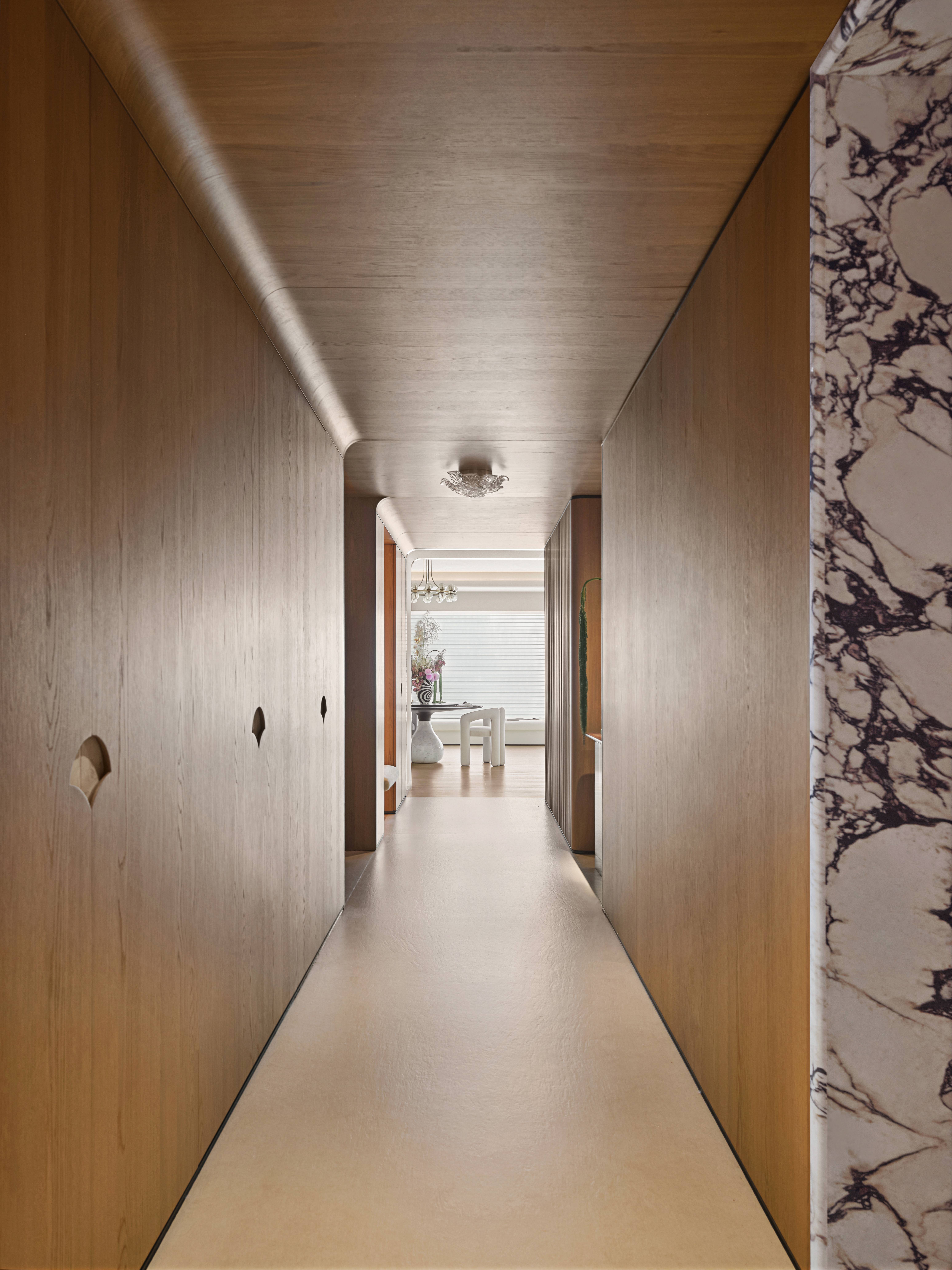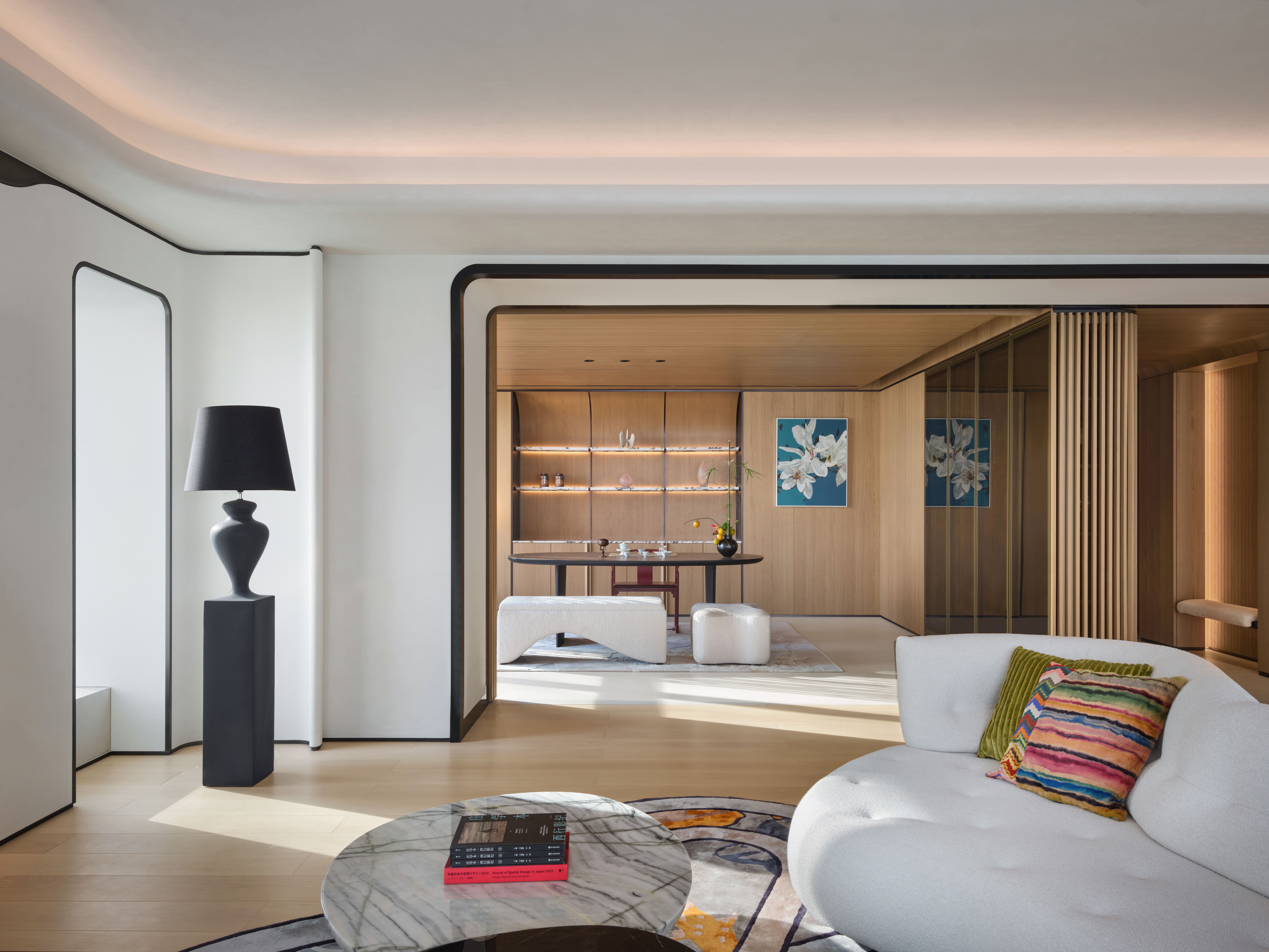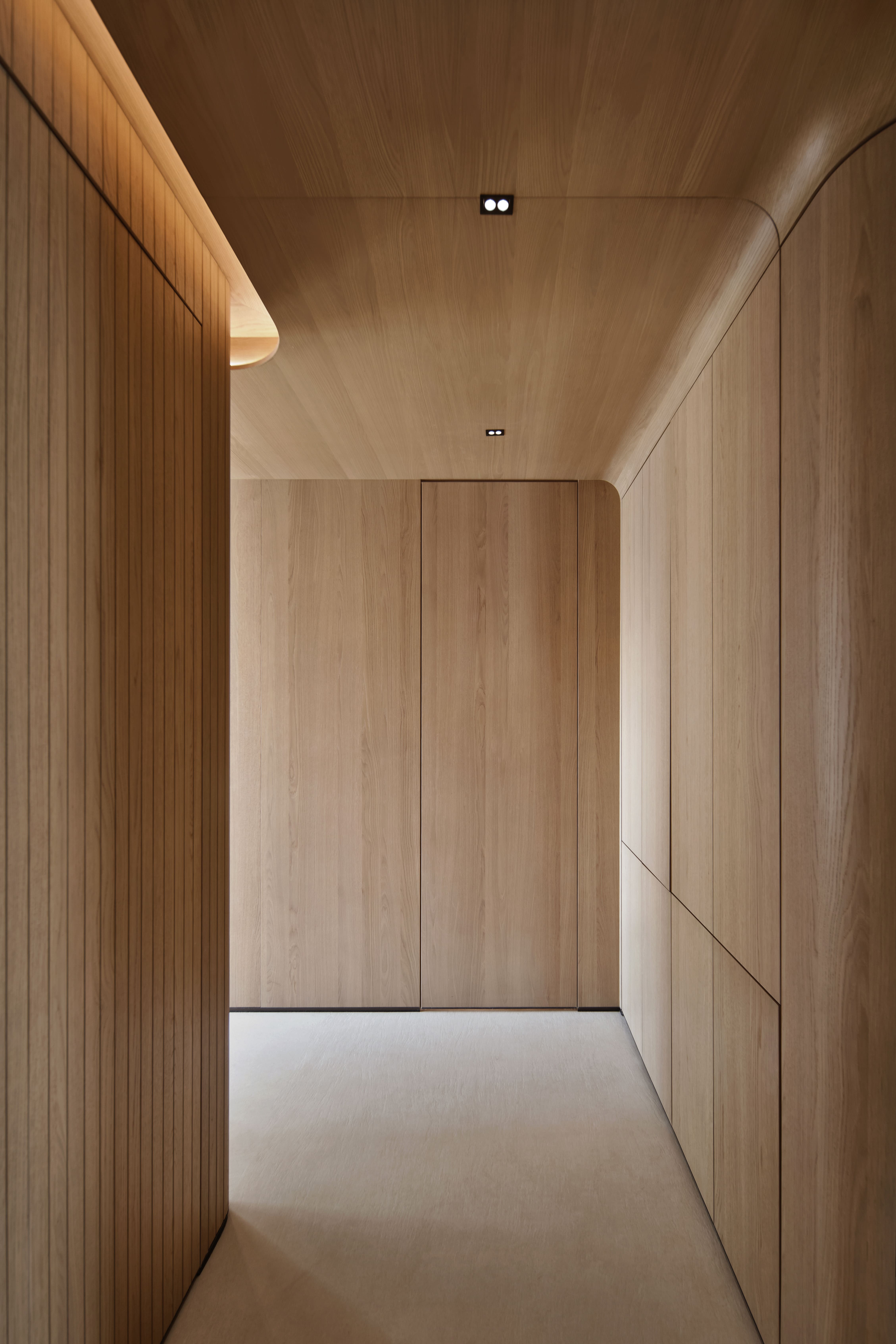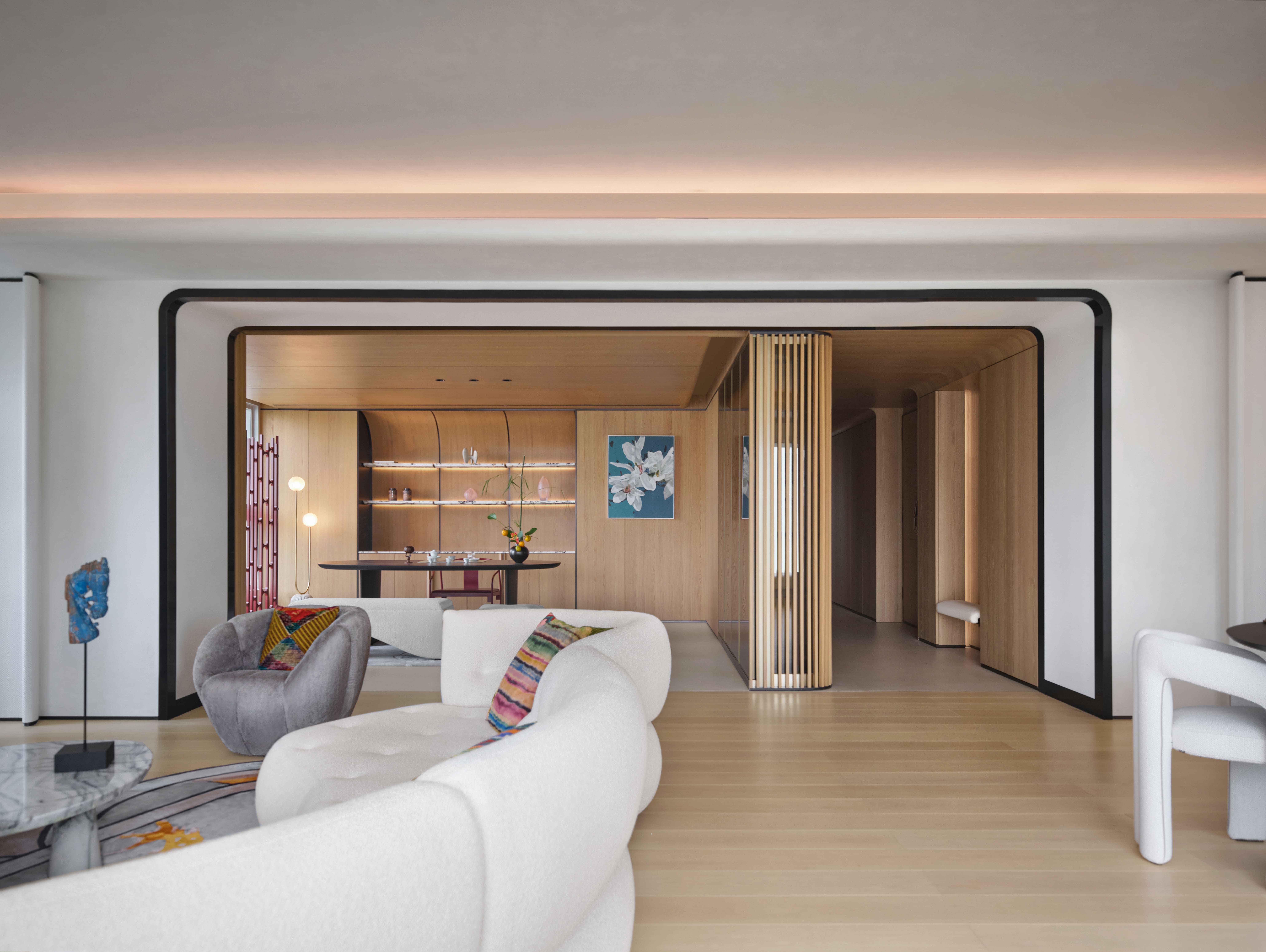 在城市的CBD中心,"优雅"与"舒适"被赋予了全新的生命,融游艇流线美学于空间,轻声低语着海滨城市的浪漫与自由;木之温润温暖了空间的每一个角落,容纳了四季更迭的自然温度,让家成为感知时间流转的容器。