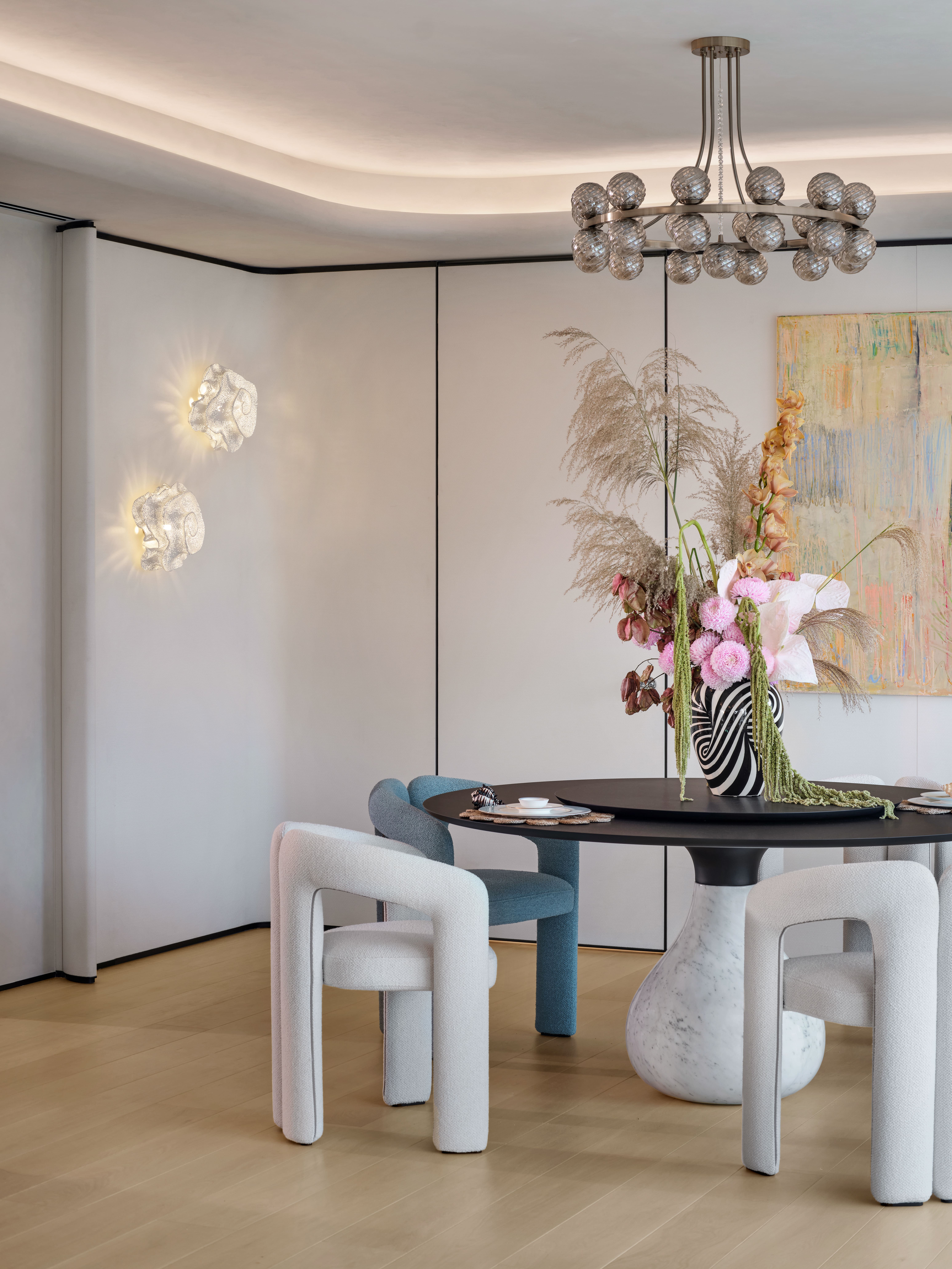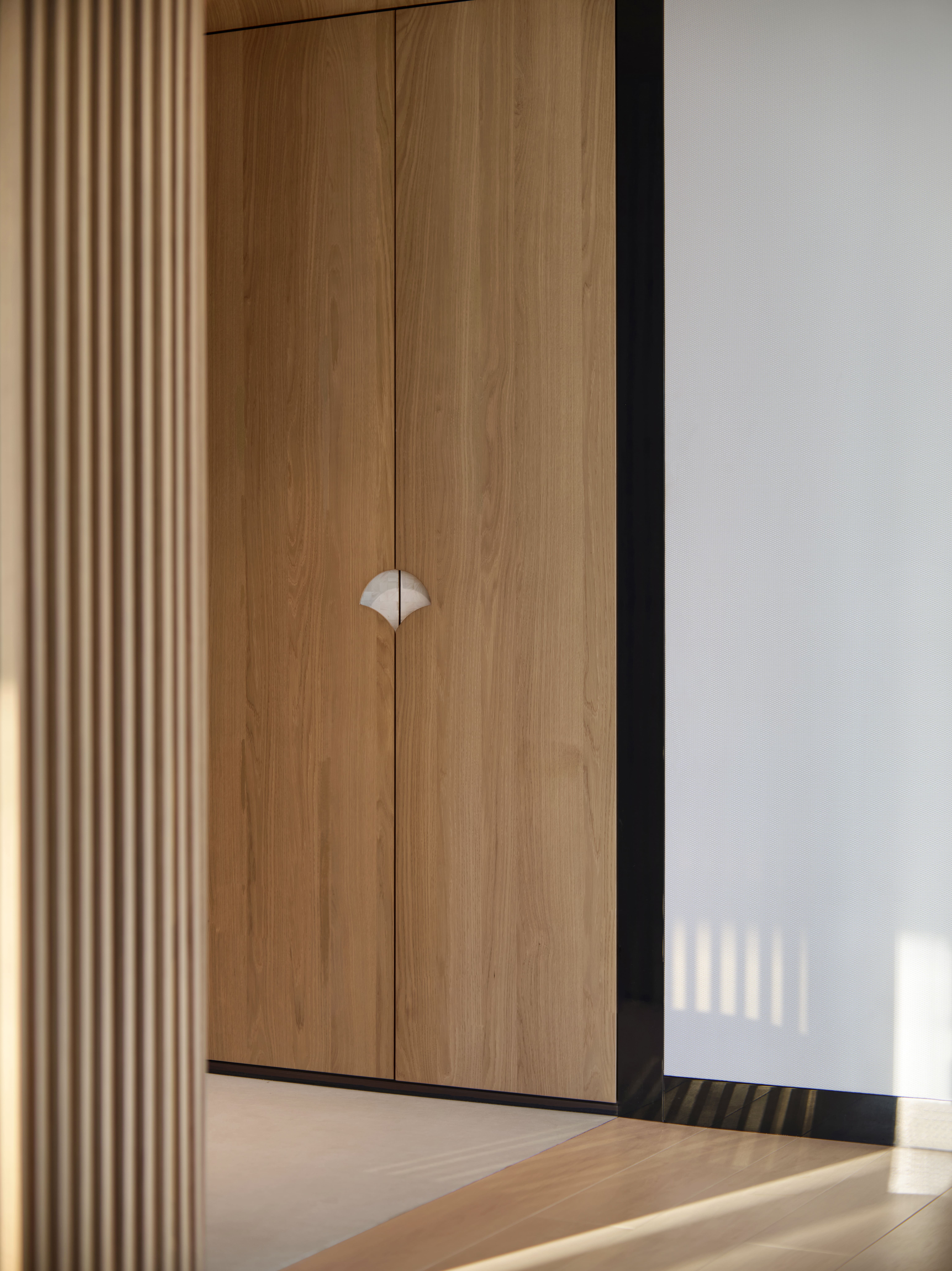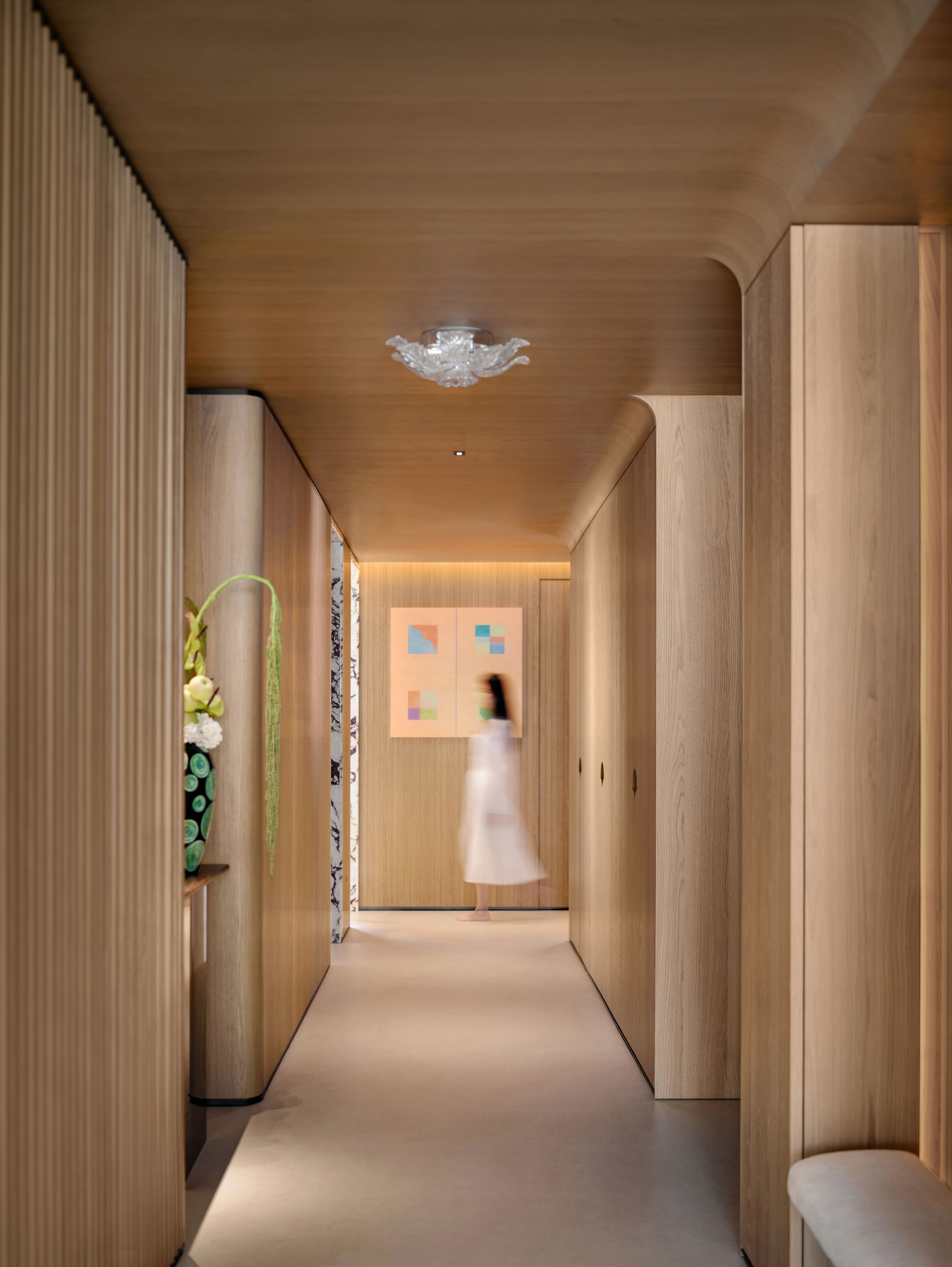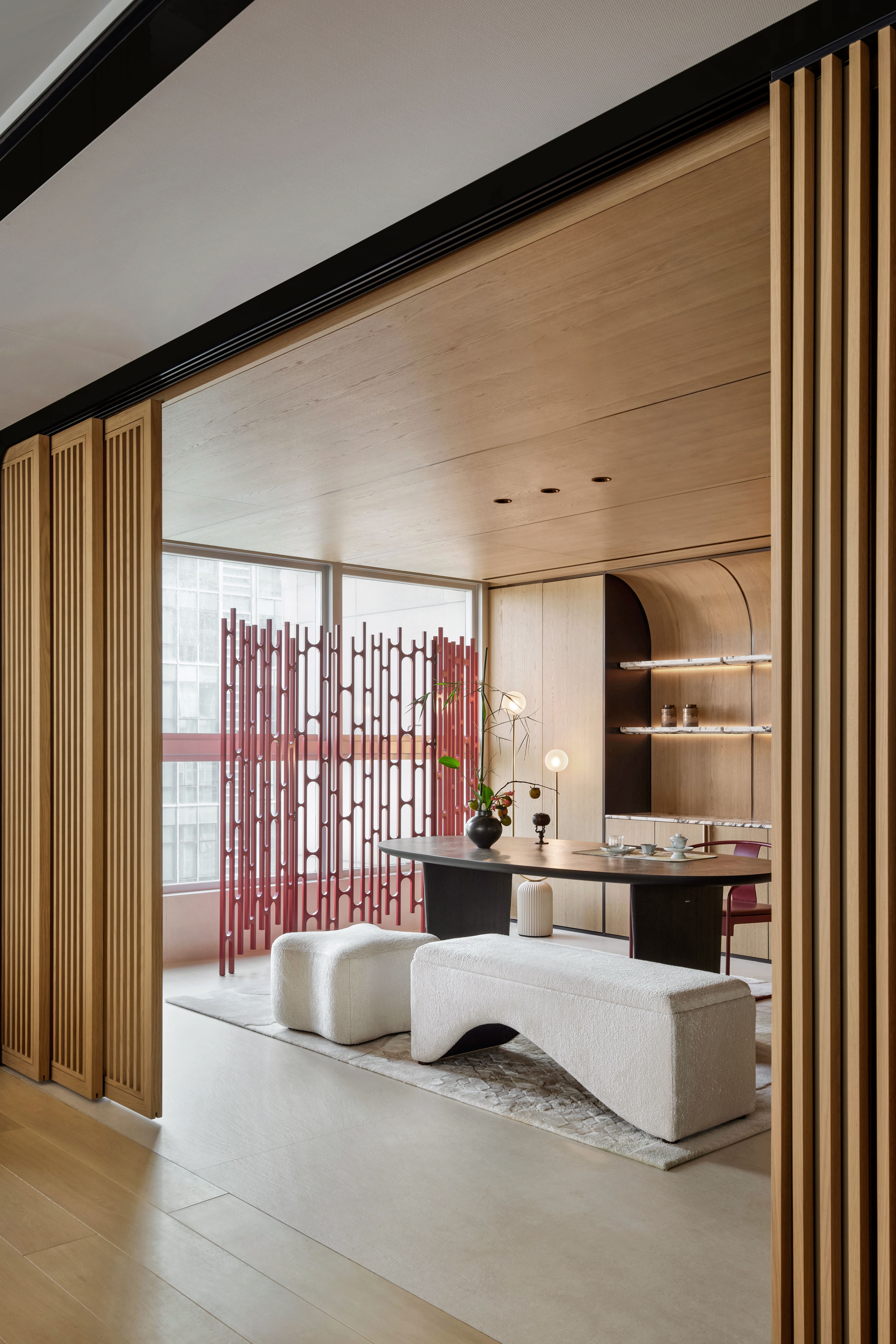 在城市的CBD中心,"优雅"与"舒适"被赋予了全新的生命,融游艇流线美学于空间,轻声低语着海滨城市的浪漫与自由;木之温润温暖了空间的每一个角落,容纳了四季更迭的自然温度,让家成为感知时间流转的容器。