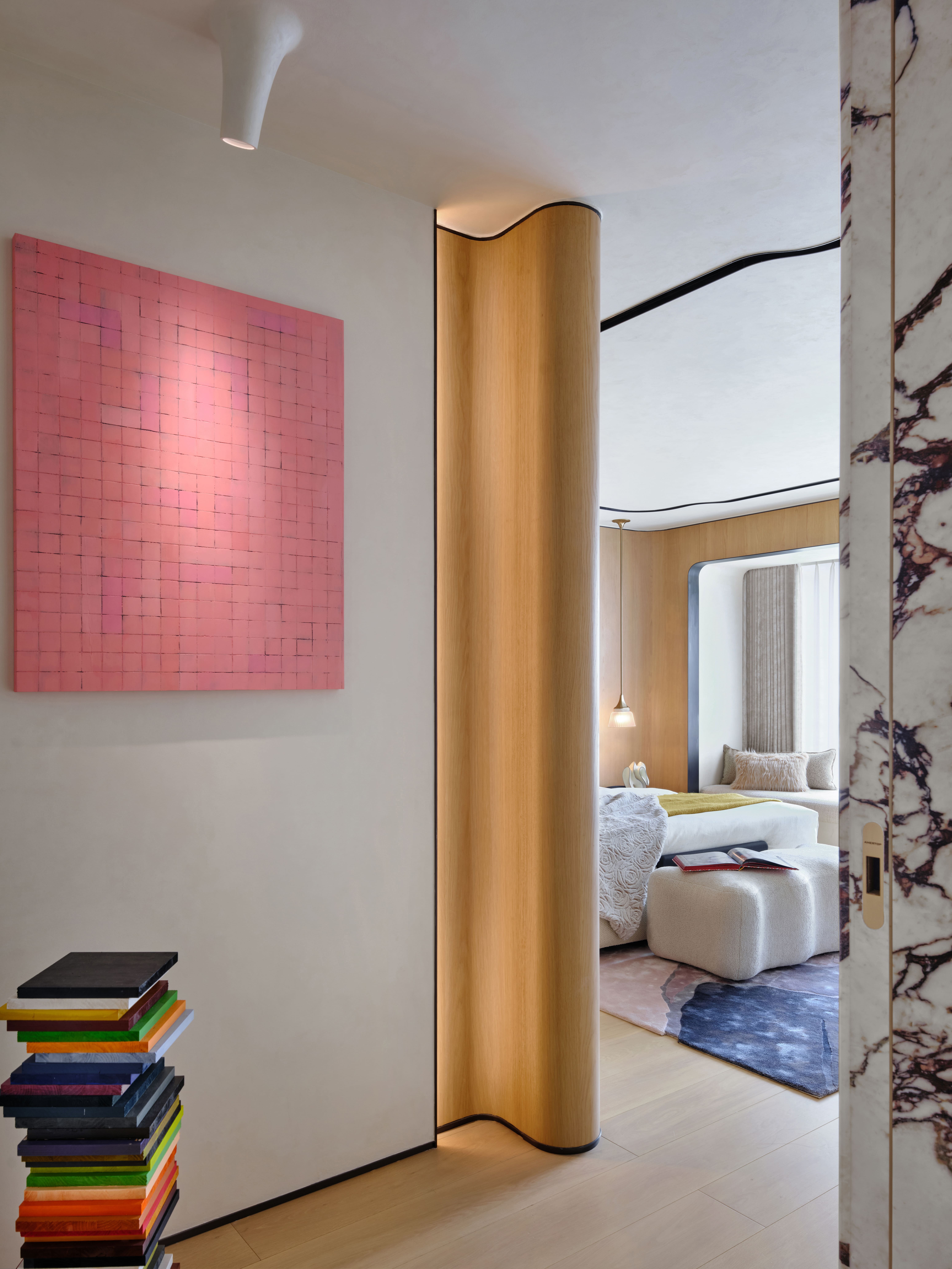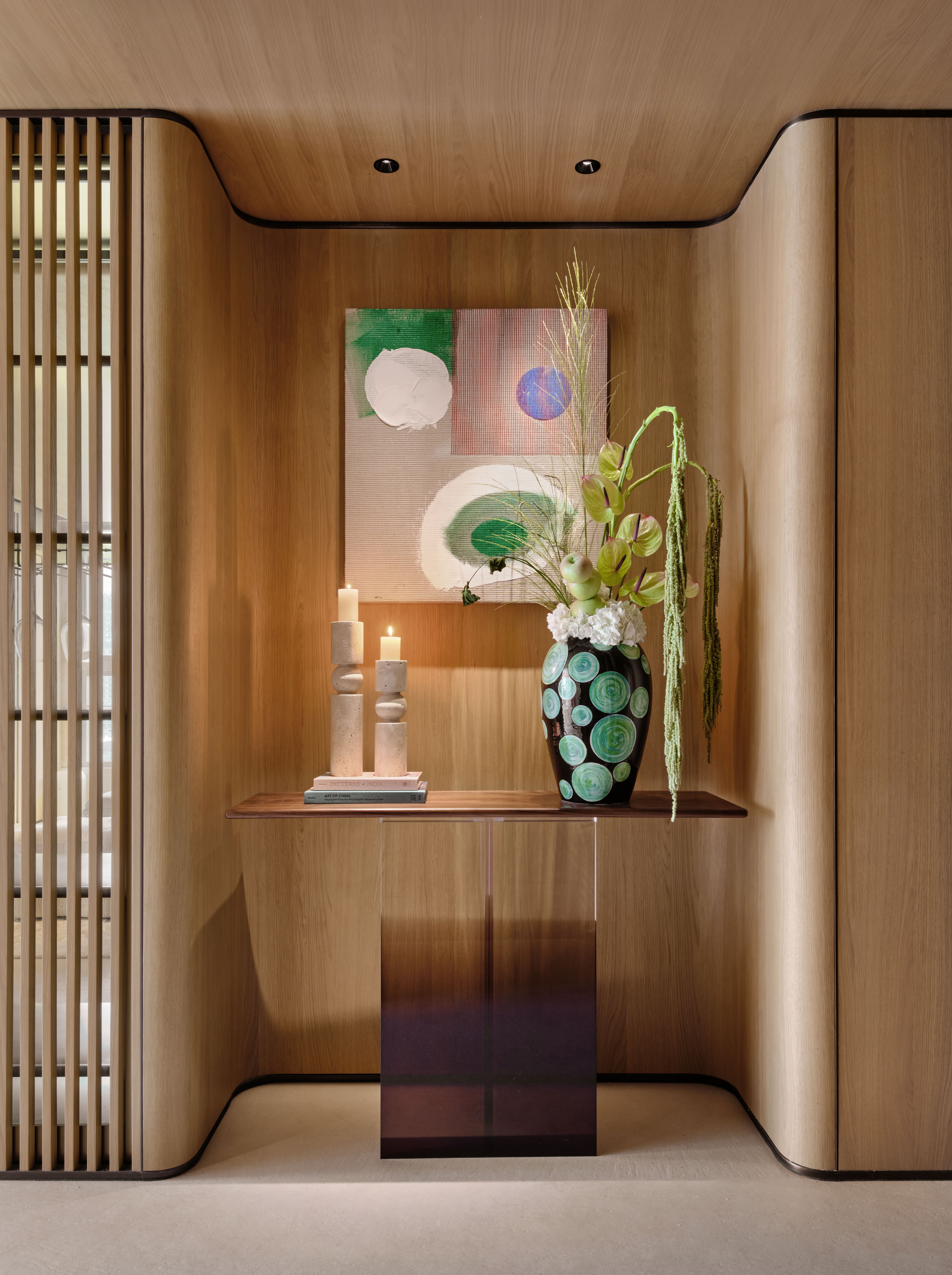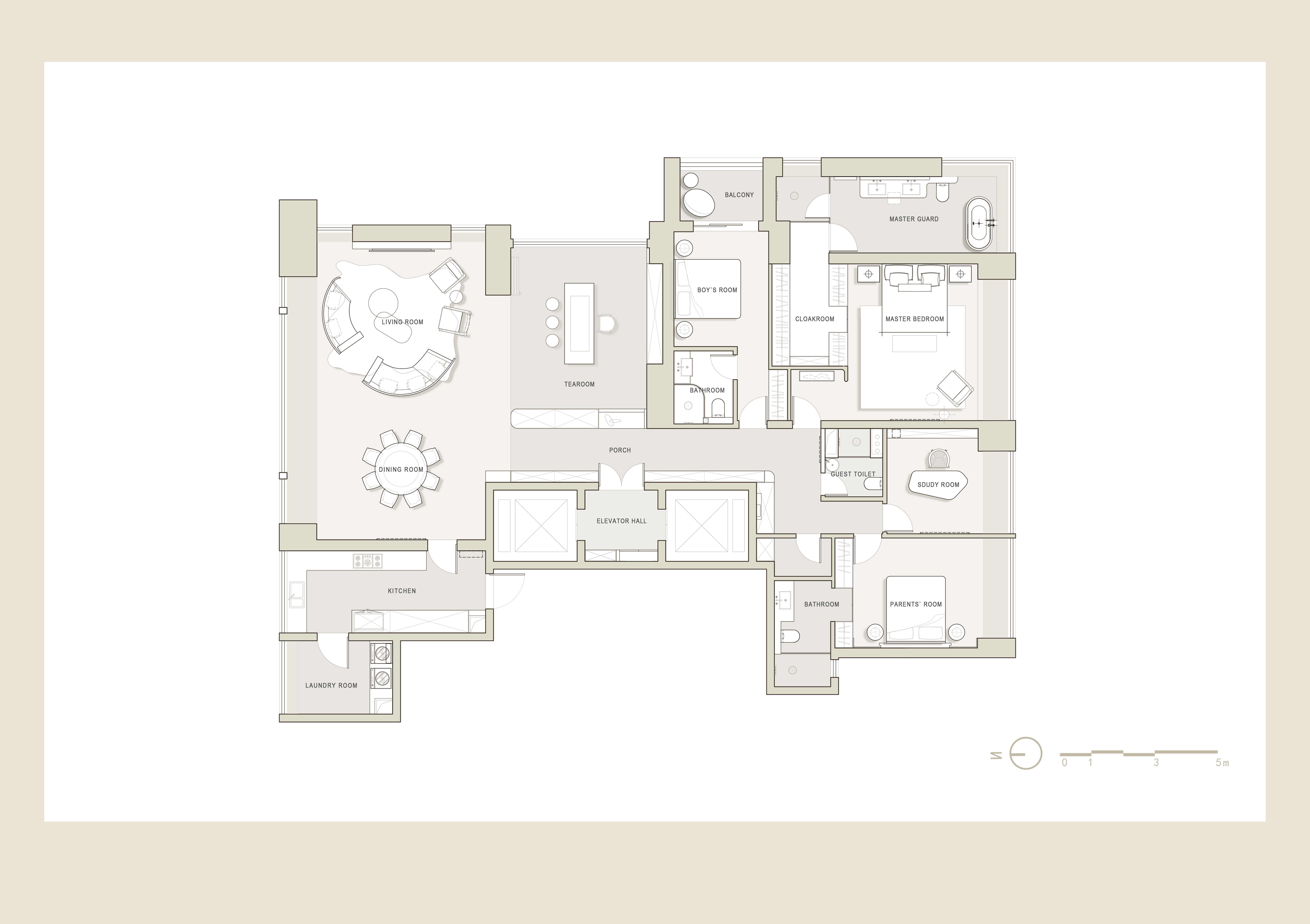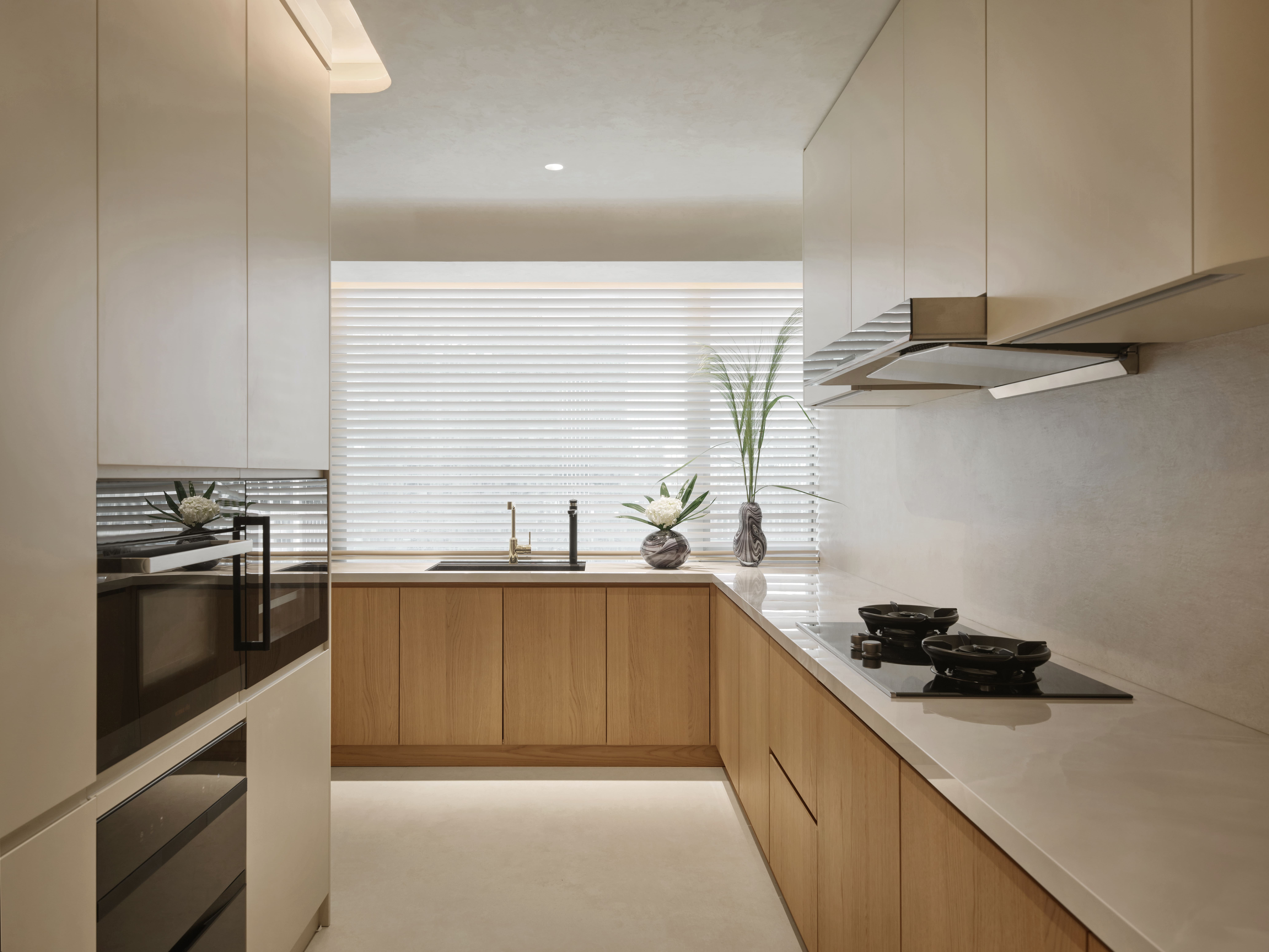 在城市的CBD中心,"优雅"与"舒适"被赋予了全新的生命,融游艇流线美学于空间,轻声低语着海滨城市的浪漫与自由;木之温润温暖了空间的每一个角落,容纳了四季更迭的自然温度,让家成为感知时间流转的容器。