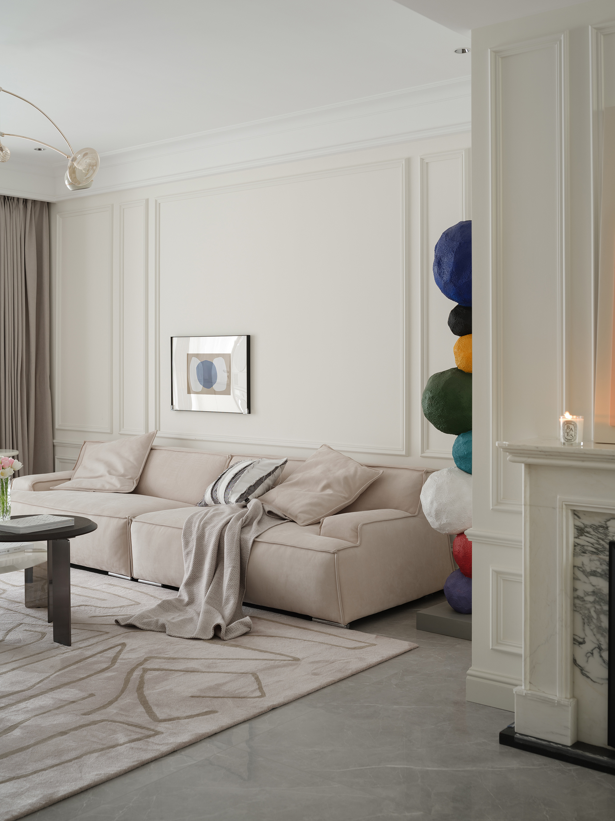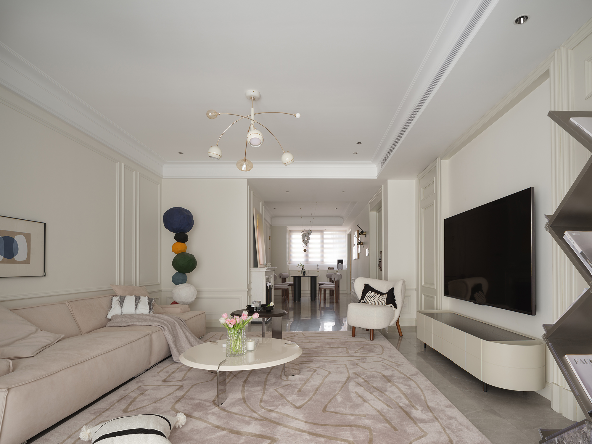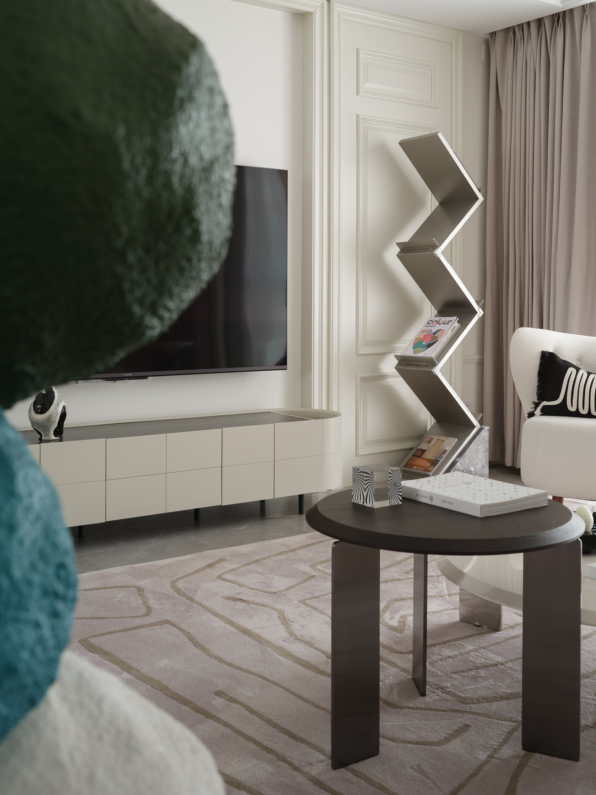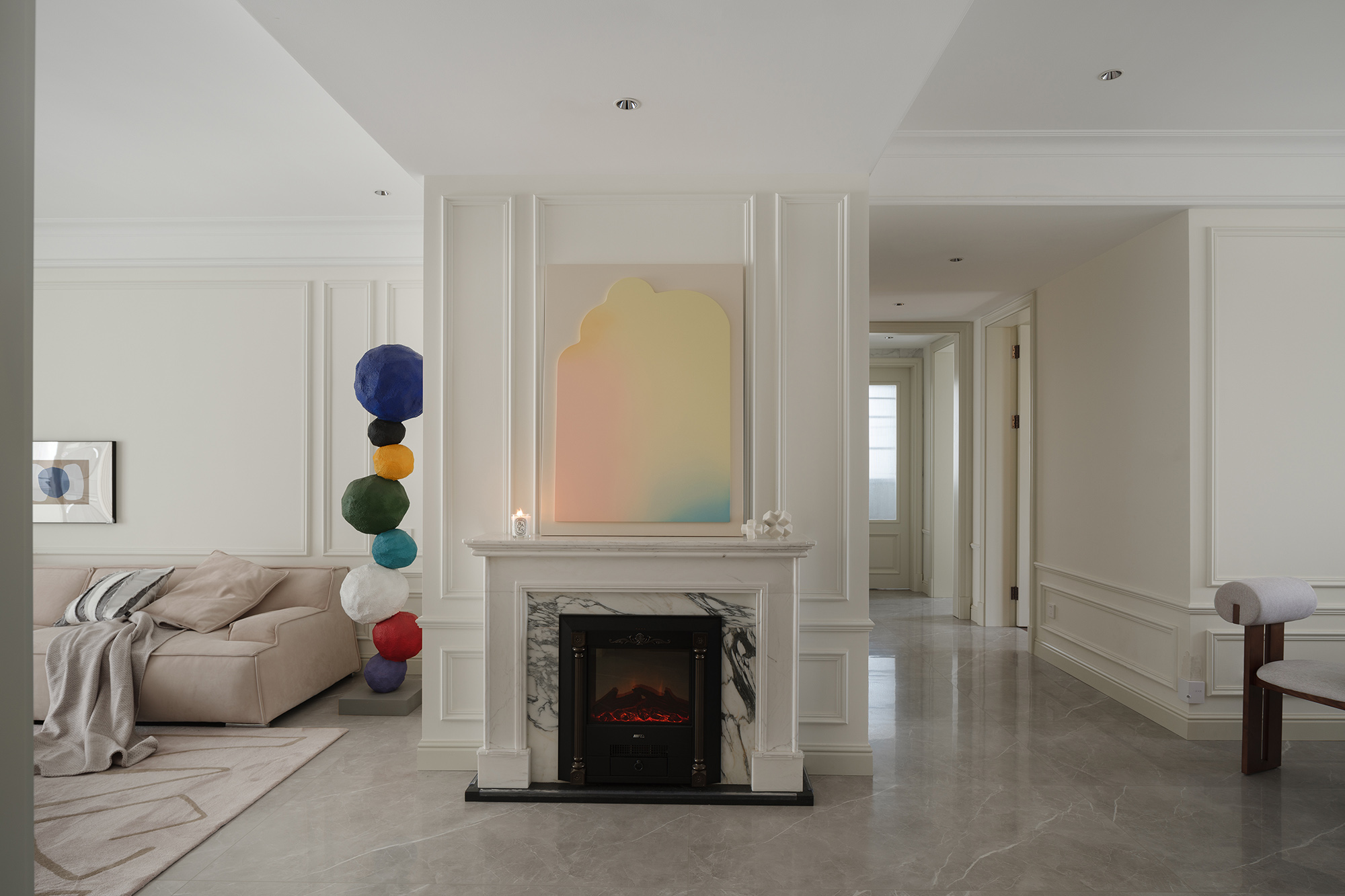 空间意境:从来没想过美式也能如此可爱,在奶油色调营造的温馨氛围中,如随意掉落串联在一起的彩虹糖般的落地摆件,和趣味性十足的沙发边几,是空间的灵魂,将我们带入孩童般纯真的梦中。