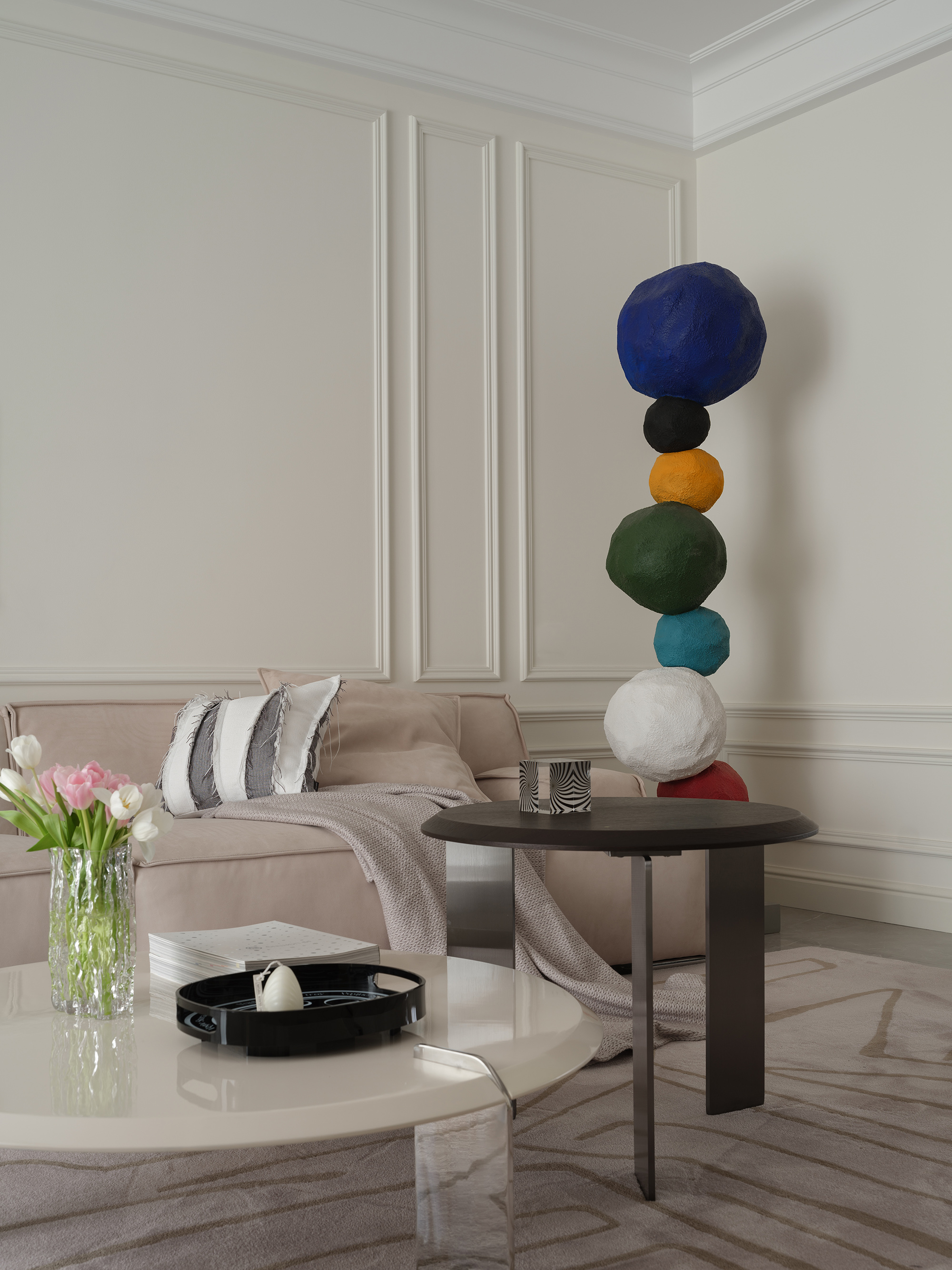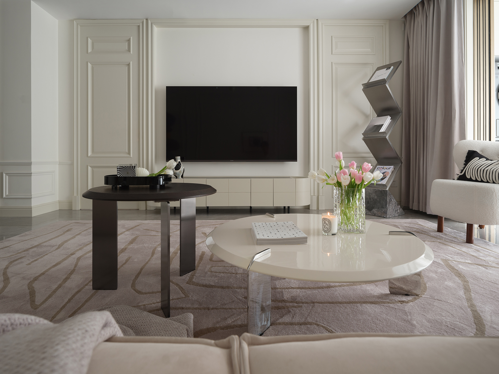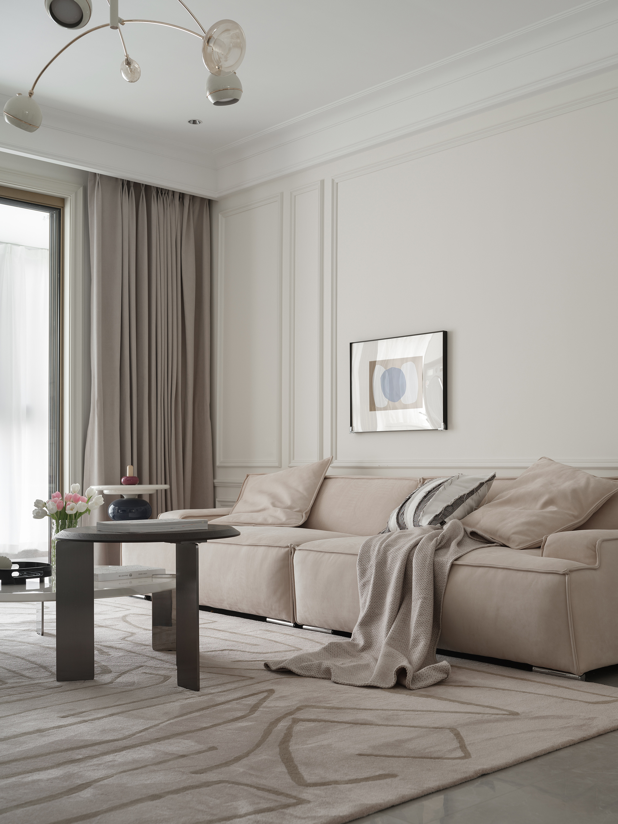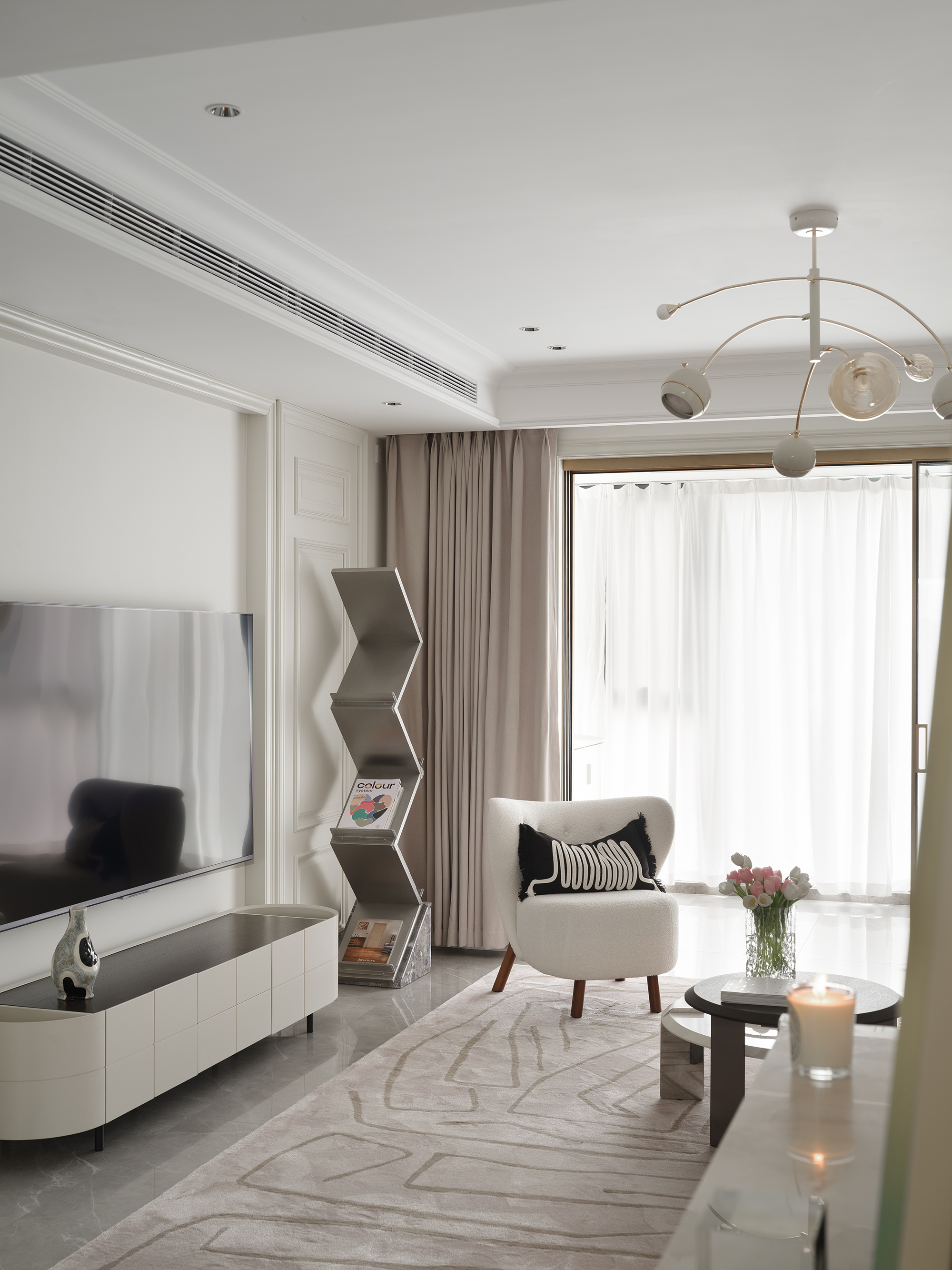 空间意境:从来没想过美式也能如此可爱,在奶油色调营造的温馨氛围中,如随意掉落串联在一起的彩虹糖般的落地摆件,和趣味性十足的沙发边几,是空间的灵魂,将我们带入孩童般纯真的梦中。