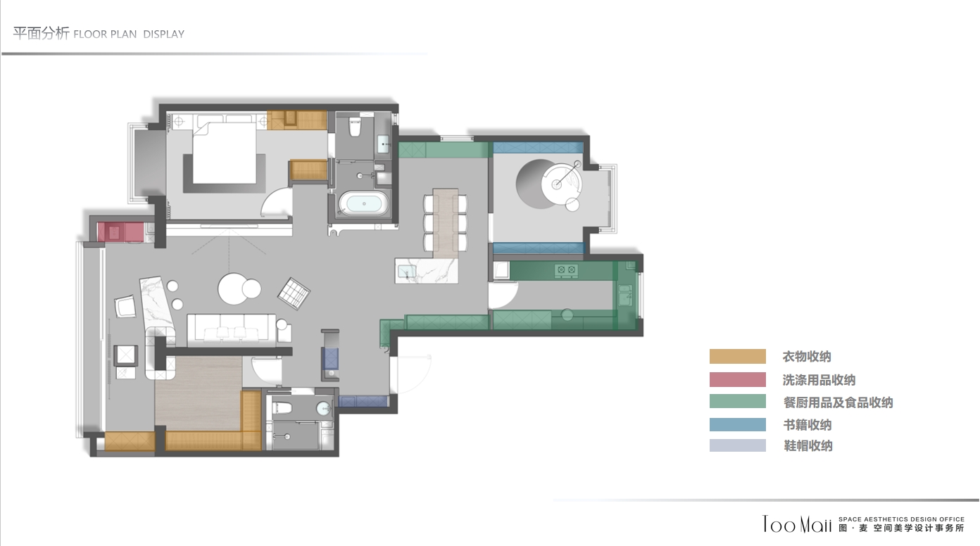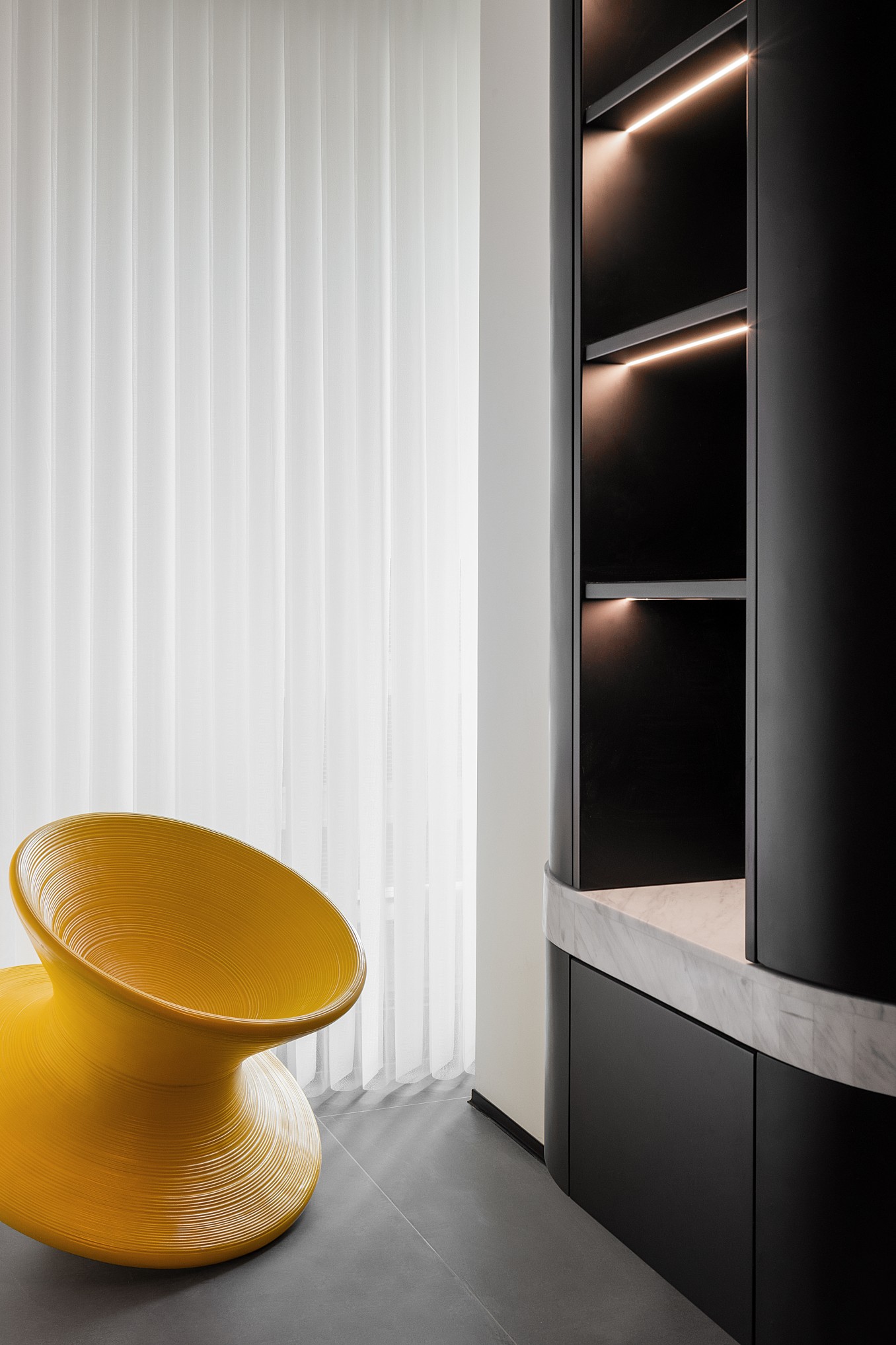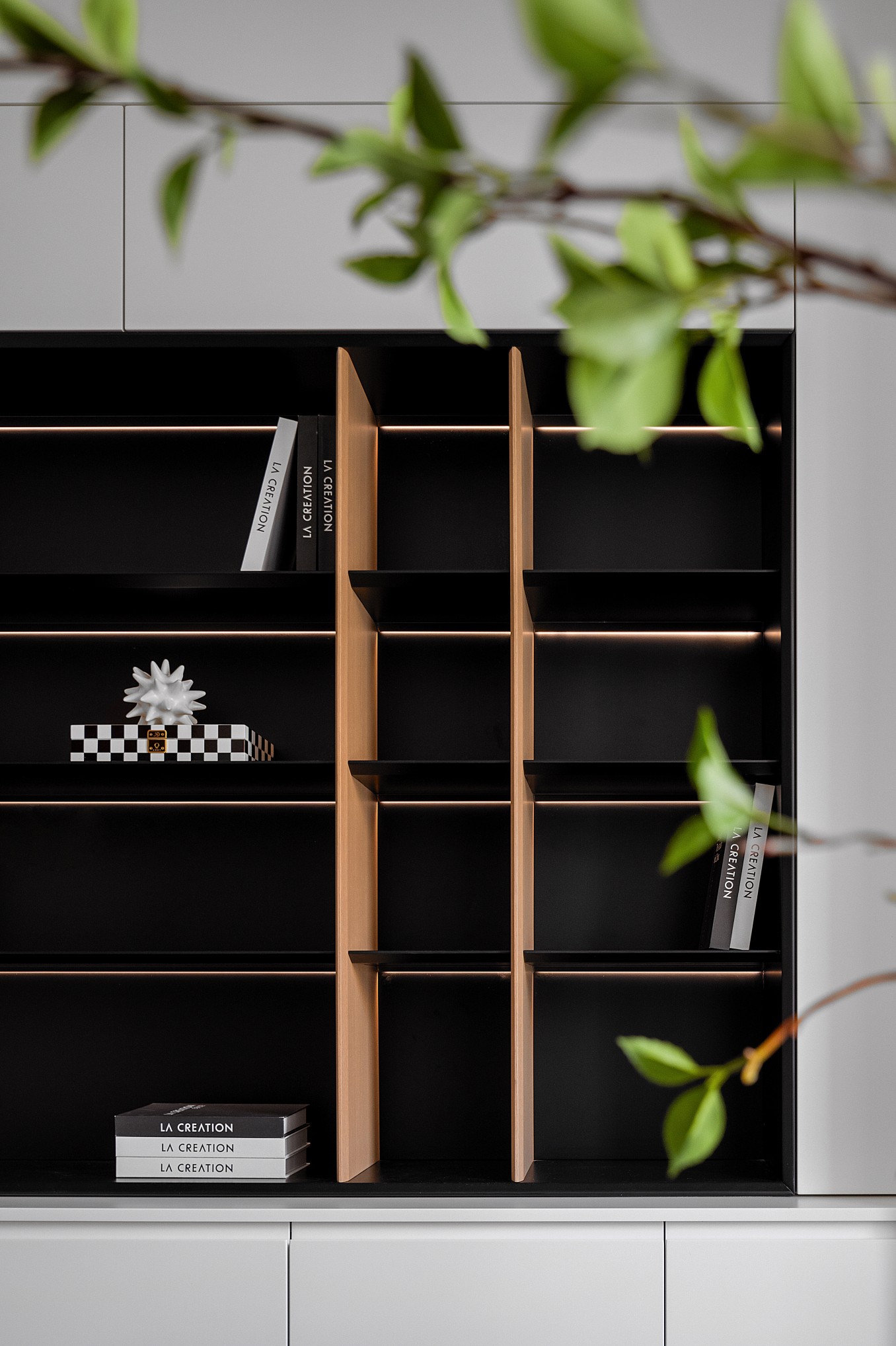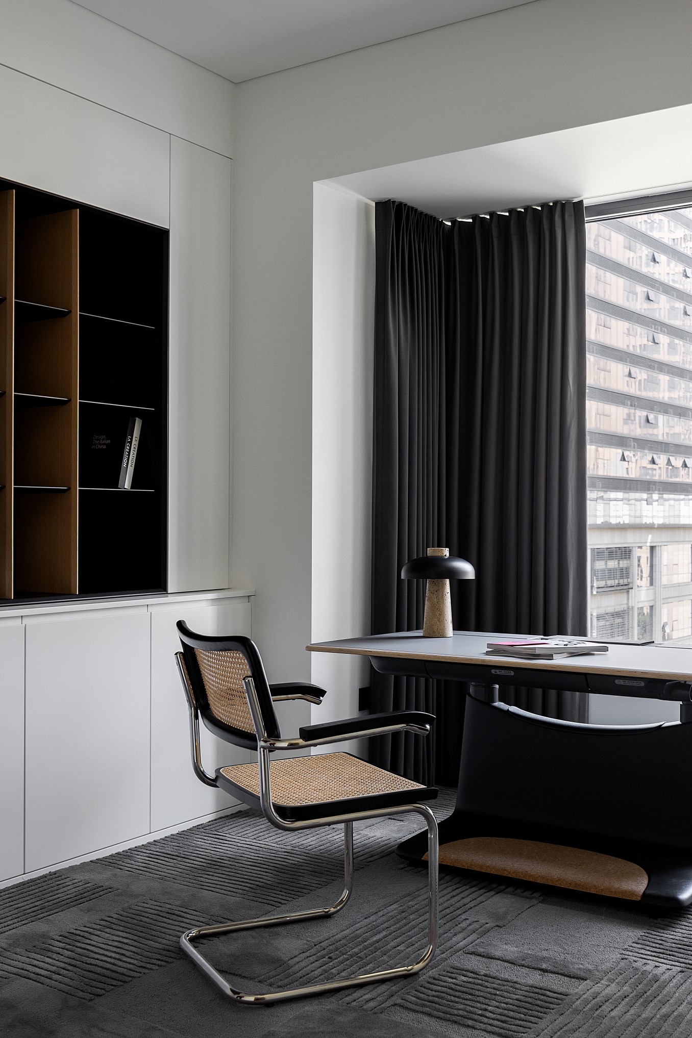 【功能与美学的结合】家具设计注重功能与美学的完美平衡,例如书房区域的悬浮式书桌与展示柜,不仅提升了储物功能,也强化了艺术氛围。
