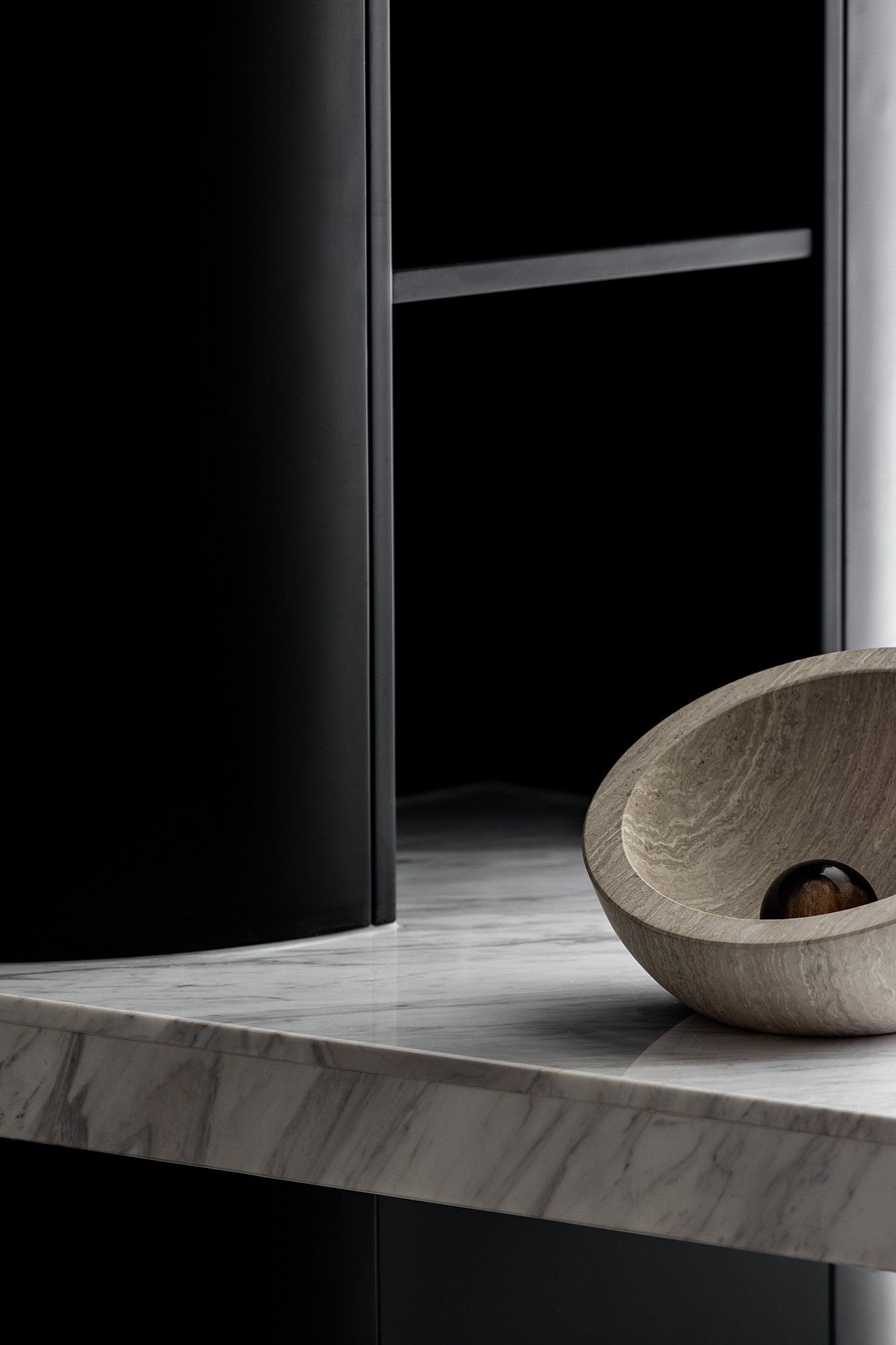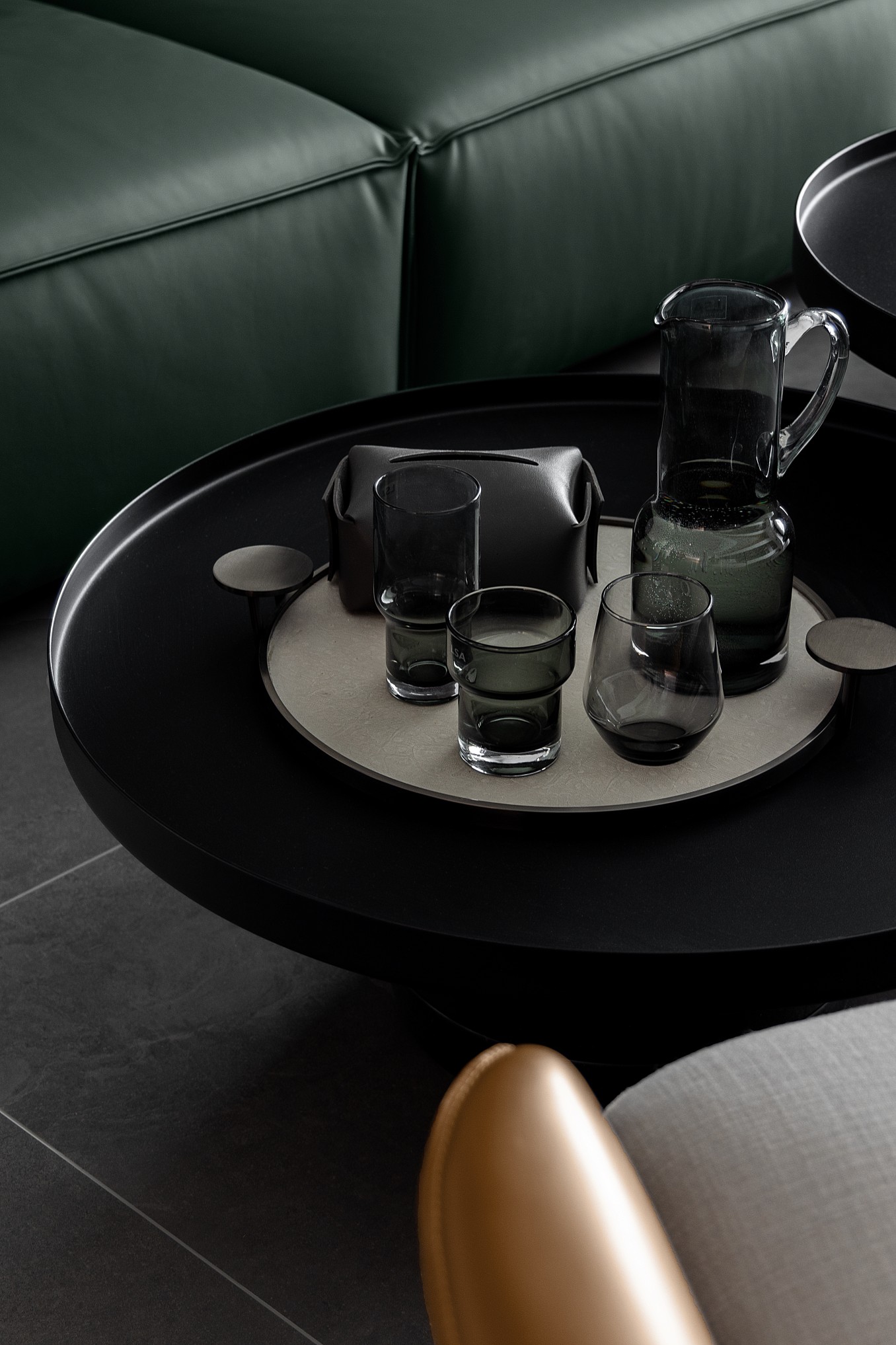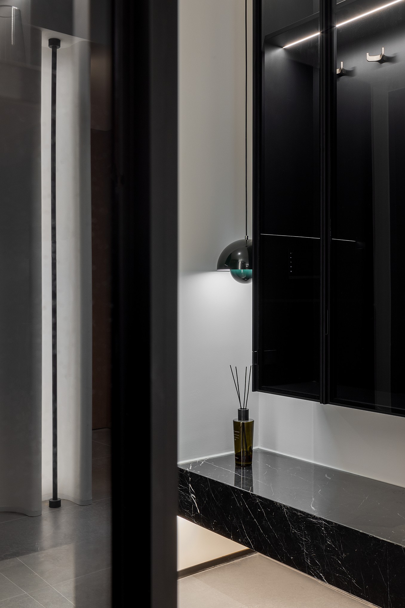 【材质与光影互动】通过大理石、木质与皮革等材质的搭配,结合灯光的细腻布置,赋予空间多层次的视觉体验,同时展现出居住者的生活品味。