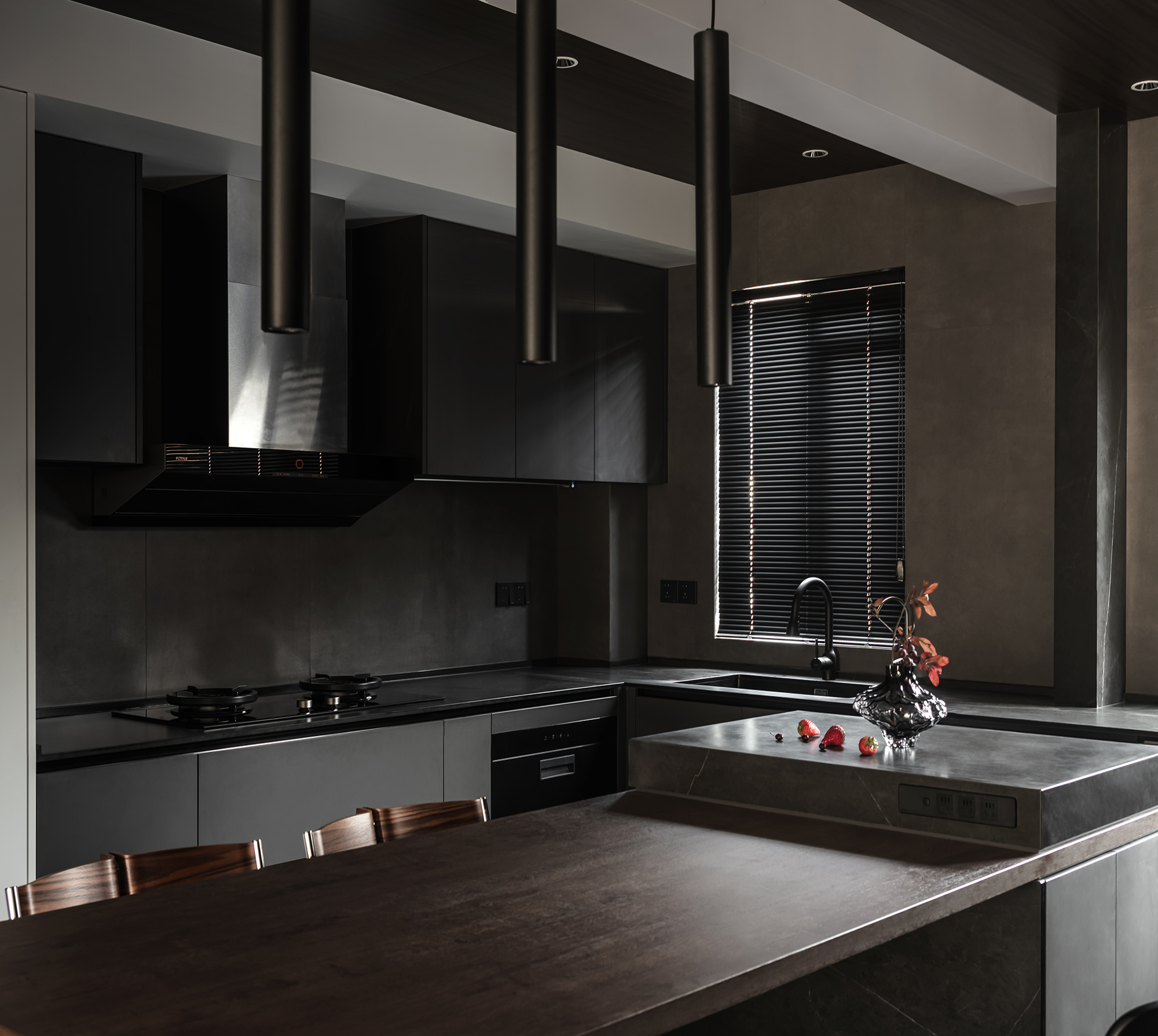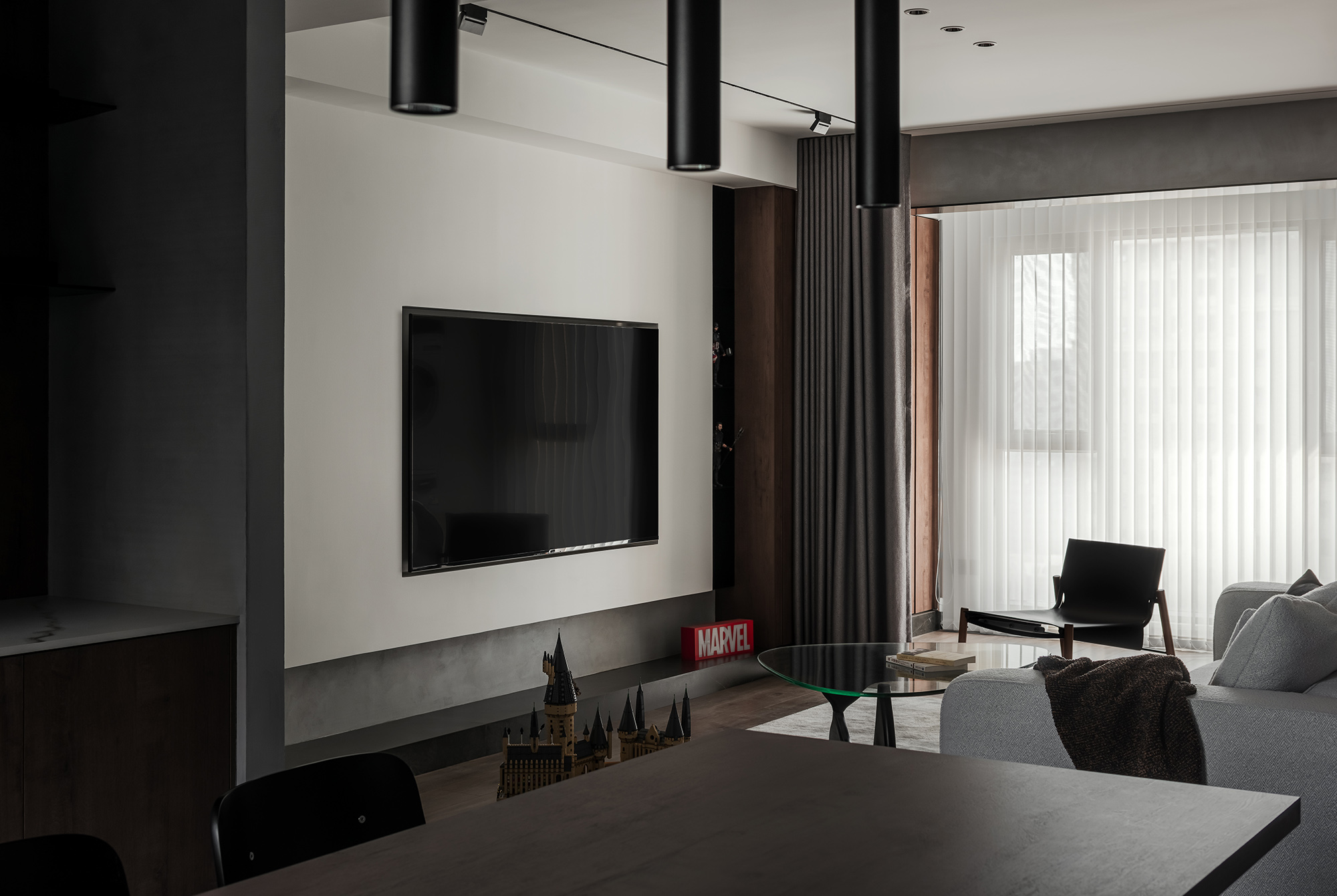 项目定位:黑色是一种有魔力的颜色,它可以神秘、可以叛逆、可以经典……我们以屋主本身的喜好进行空间布局和设计笔触,引入不同的光影,放缓内部的时间节奏,延长夜的深邃,期望将屋主带入属于她的「魔法世界」。