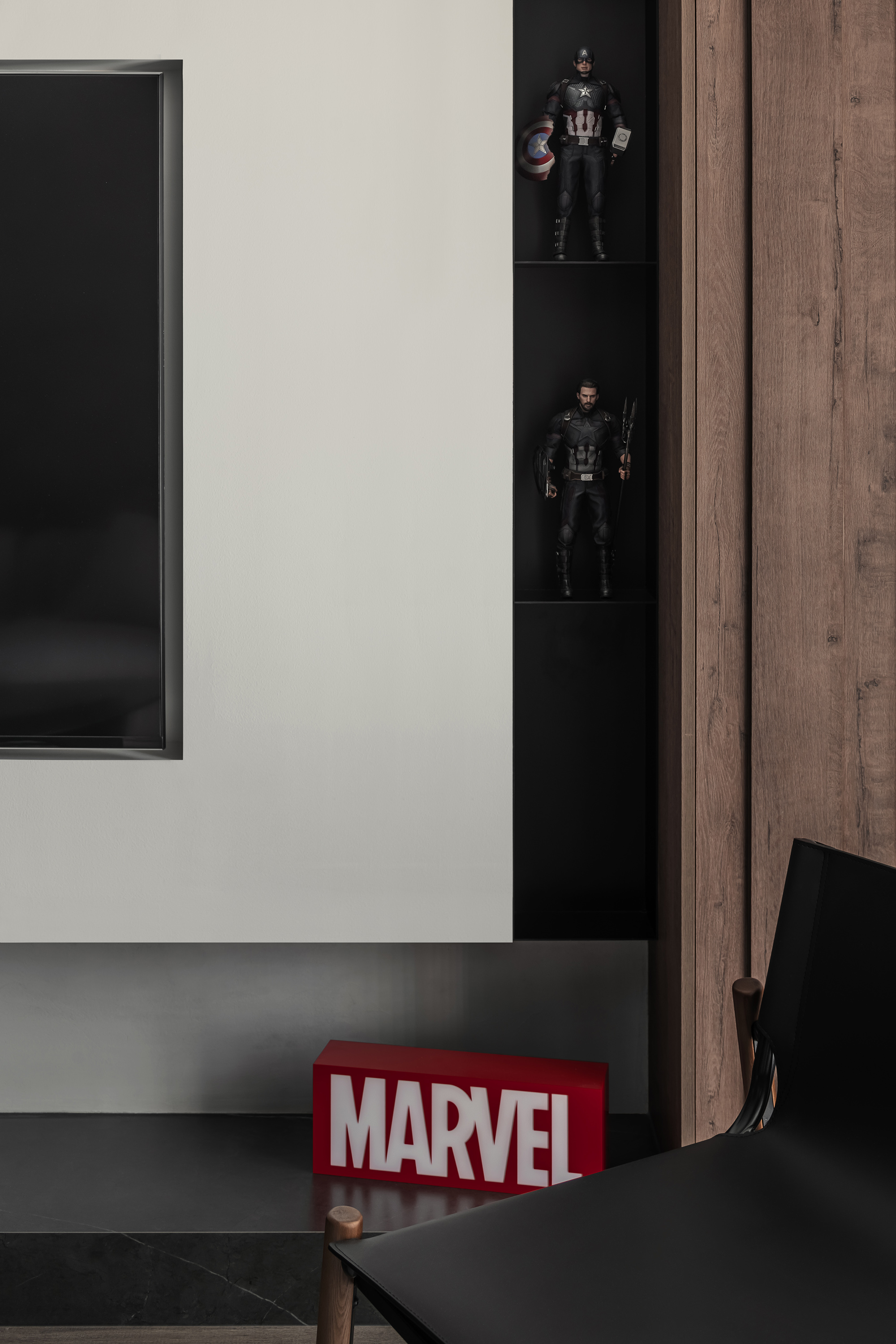 设计选材:无论是切实的体验,还是科幻的宇宙,都是生活的一部分。我们希望空间本身也拥有某种情绪,时而随着黑色石材沉思,时而随着木纹的温暖色调振奋,更多的是处于思绪的灰色地带,如灰色艺术涂料般模糊、不确定,却有着随时迸发而出的惊喜。