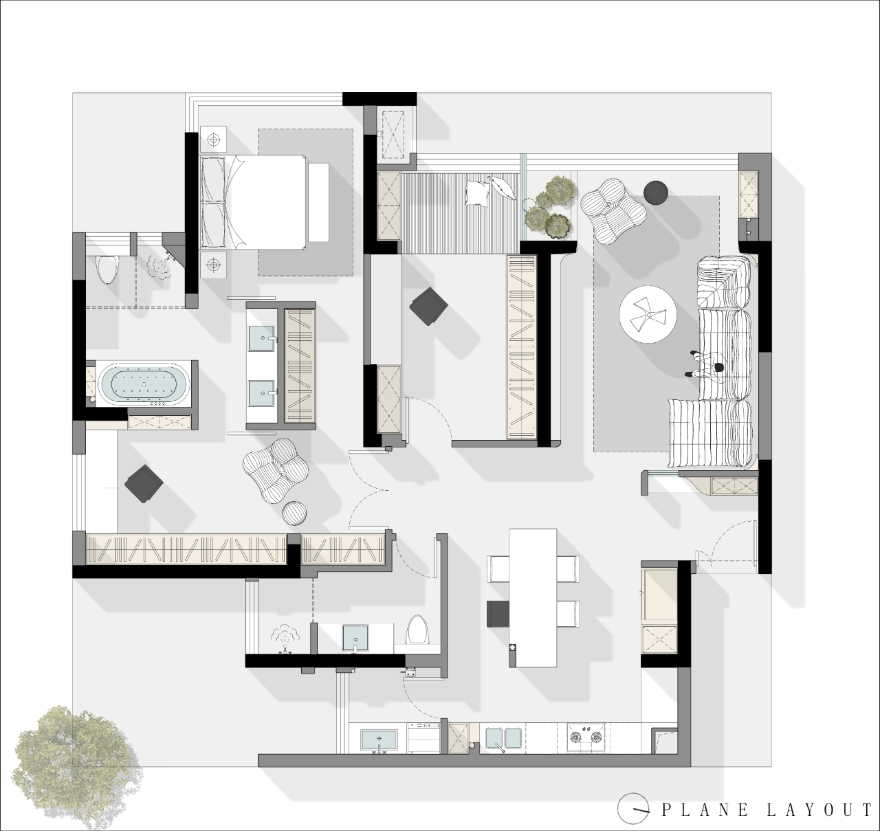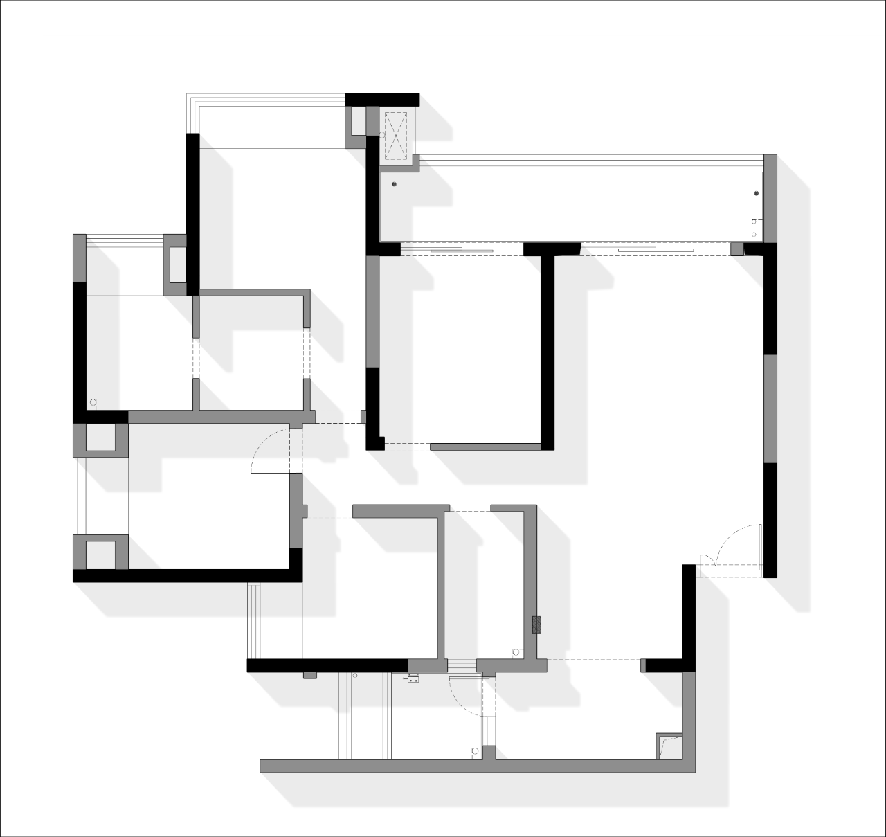 空间意境:业主钟爱简约纯粹的黑、白、灰配色,期待在家中营造低调雅致的现代气息。然而,面对原户型,业主最大的困扰在于视野受限、动线不够流畅,以及储物空间的不足,这些因素无疑削弱了居住体验。