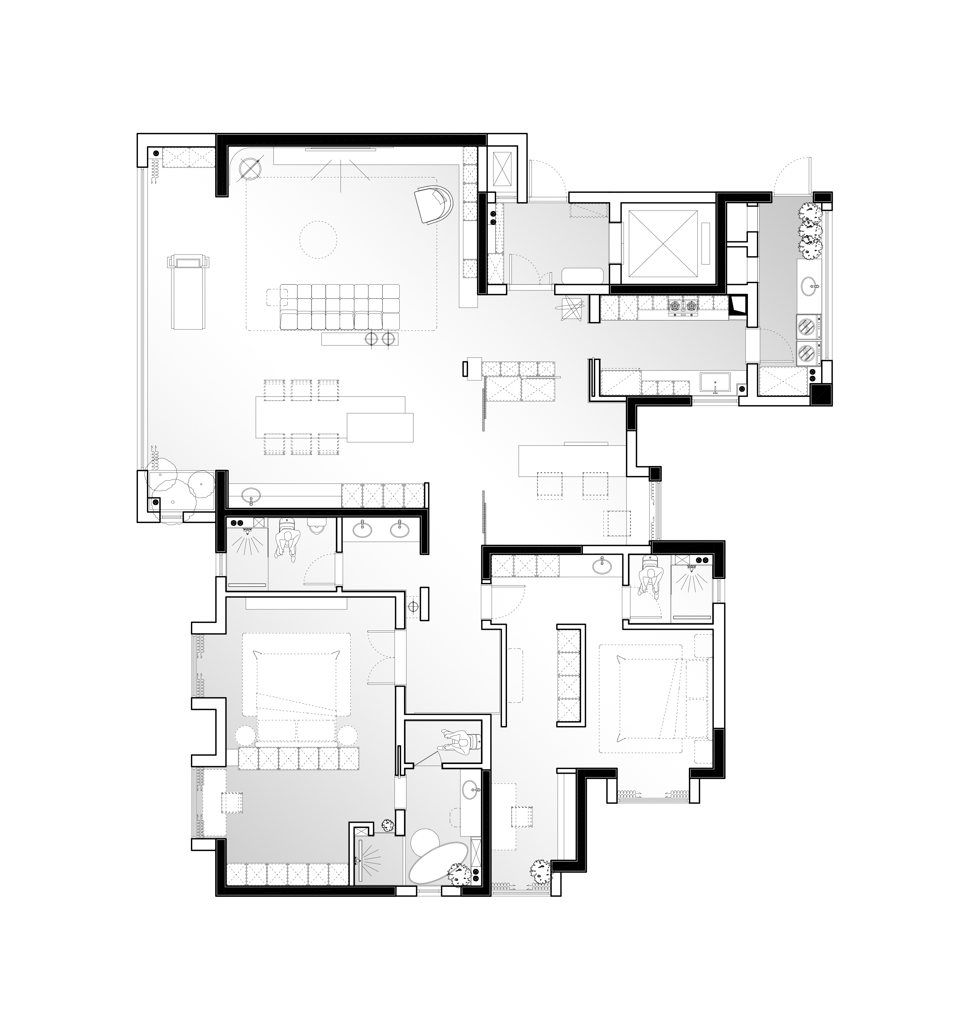 空间布局:原始户型为毛坯房,几乎不受限制,有着极大的可改动性,在众多可能性中找到最适合屋主的方案便是一大难点。