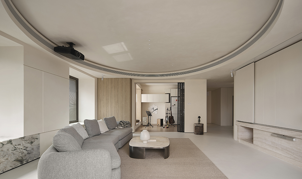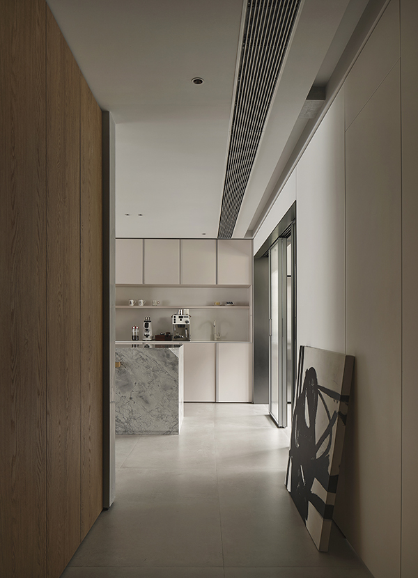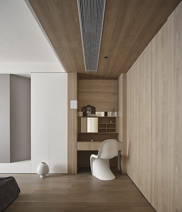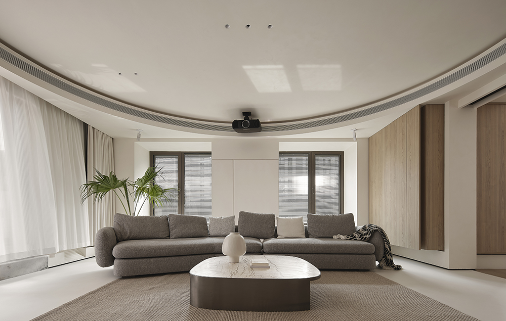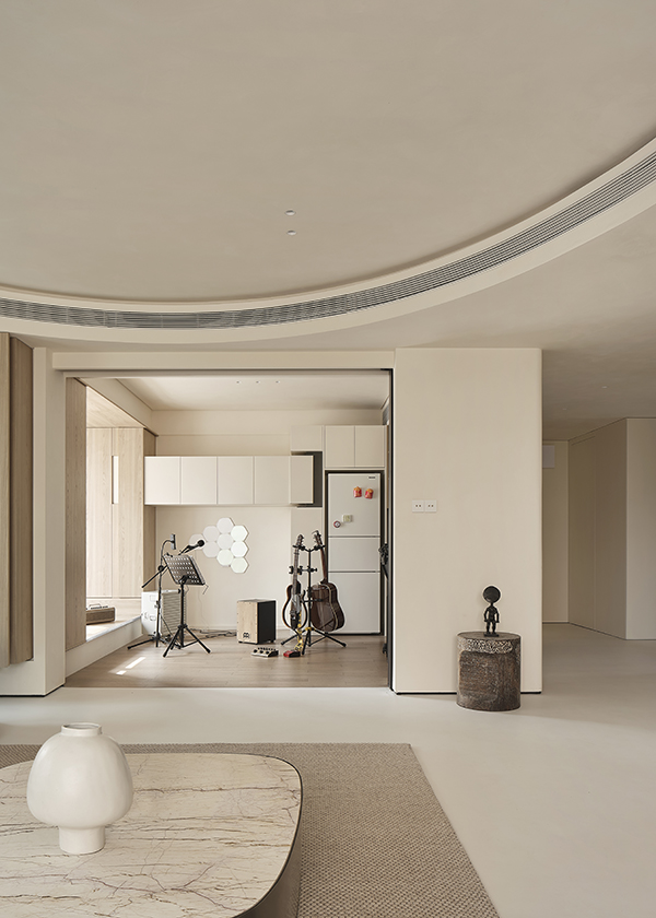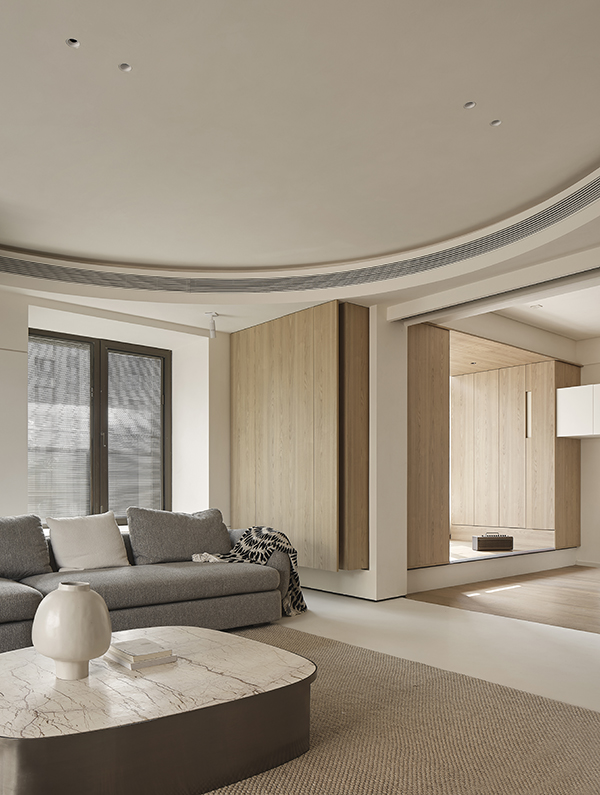 对几何线条的精密引用,围合而成家的内核,材料与色调交融的微妙变化,跟随时间的明晰光线,打造通感的视觉体验。